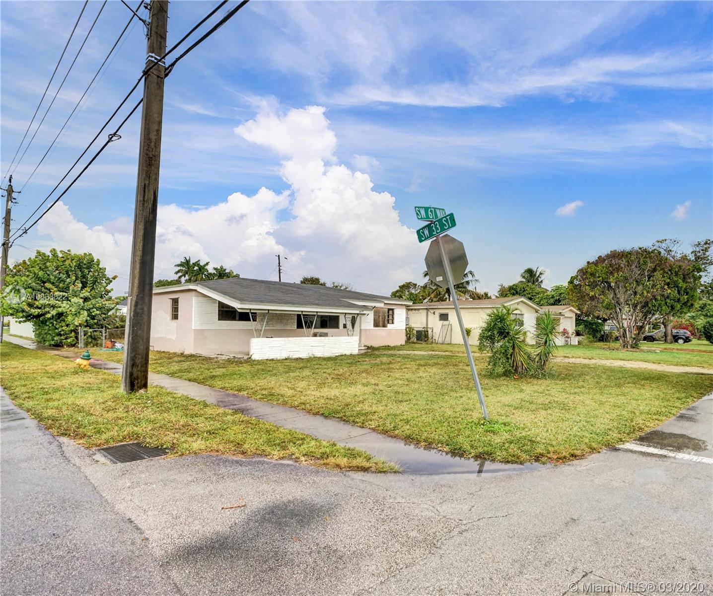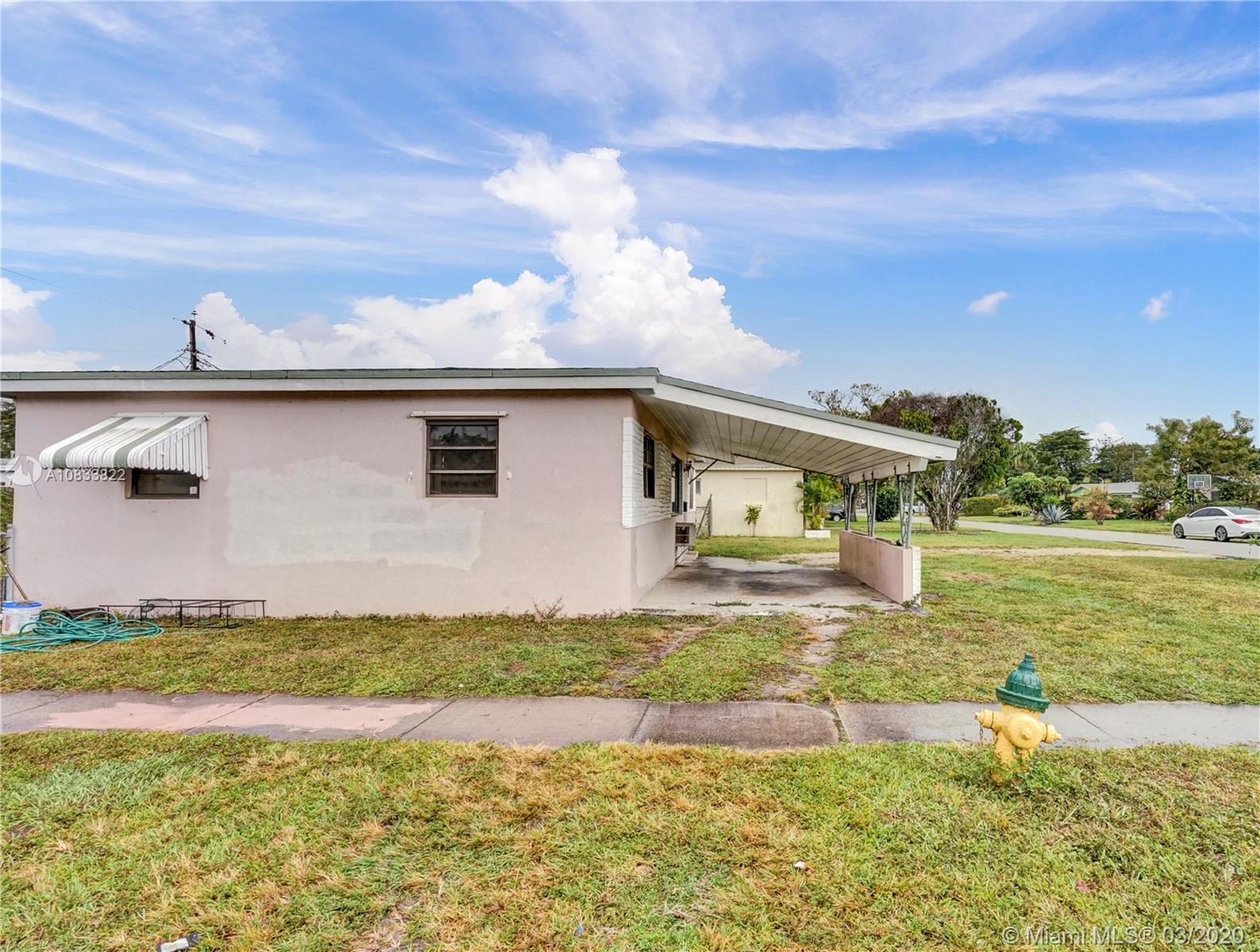 Huge corner lot with great potential. Large split floor plan. Florida room, laundry room with washer and dryer hook-up. Located within a quiet neighborhood in Miramar, close to grocery stores, parks, shops, and restaurants. Near Florida's Turnpike with easy access to I-95 and 826.