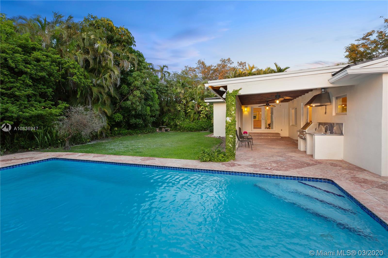 Nestled in one of the Gables beautiful tree lined streets and desired neighborhood, this 4-bedroom, 4-bath home is a beautiful South Gables sanctuary. Set on a 12,500 sq.ft. lot, it has a large kitchen with a generous work station that could be converted to a breakfast nook. It boasts a large master suite and en suite. It has impact windows and doors, beautiful wood floors complemented by Terracotta floors in the dining room... it has a large back yard with a generous, newly refinished pool and private covered patio and BBQ area, a two car garage and a beautifully landscaped entrance. 5 minutes to Downtown Coconut Grove, South Miami and Merrick Park. This is a great place to live