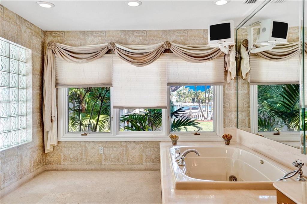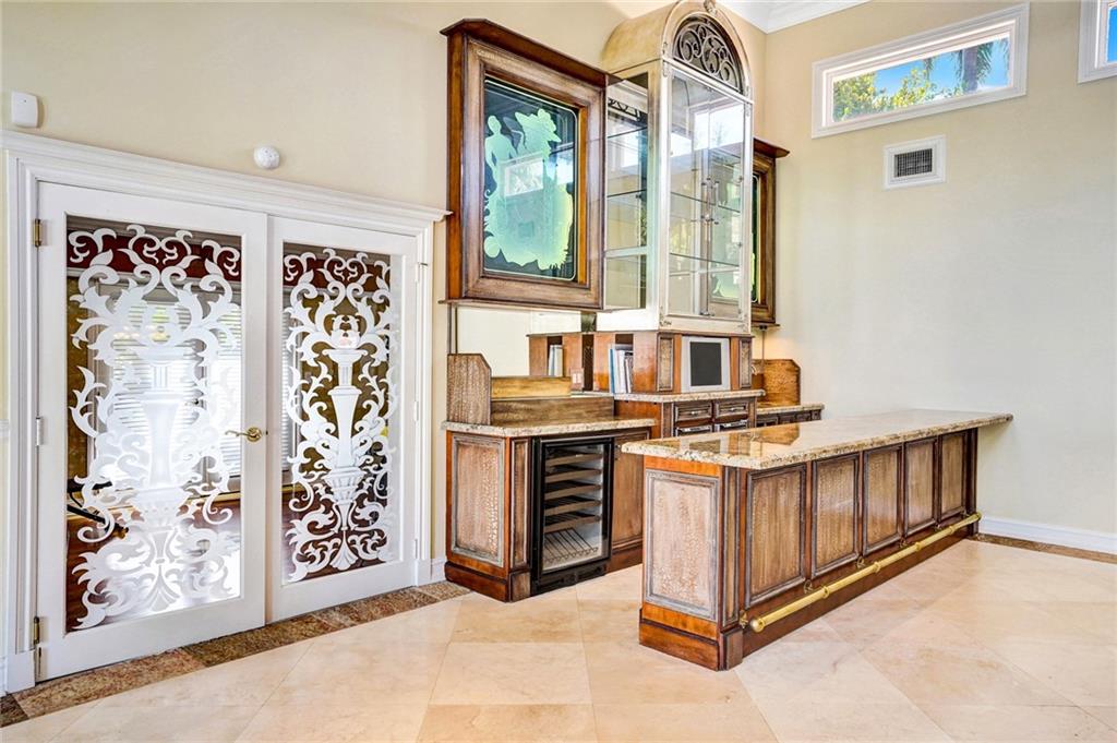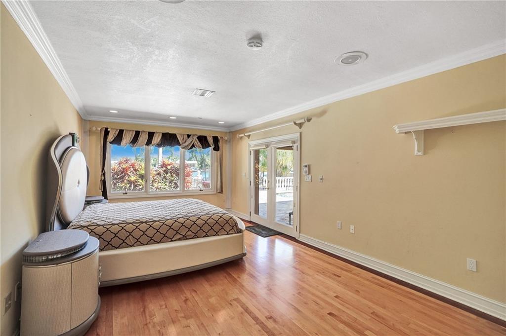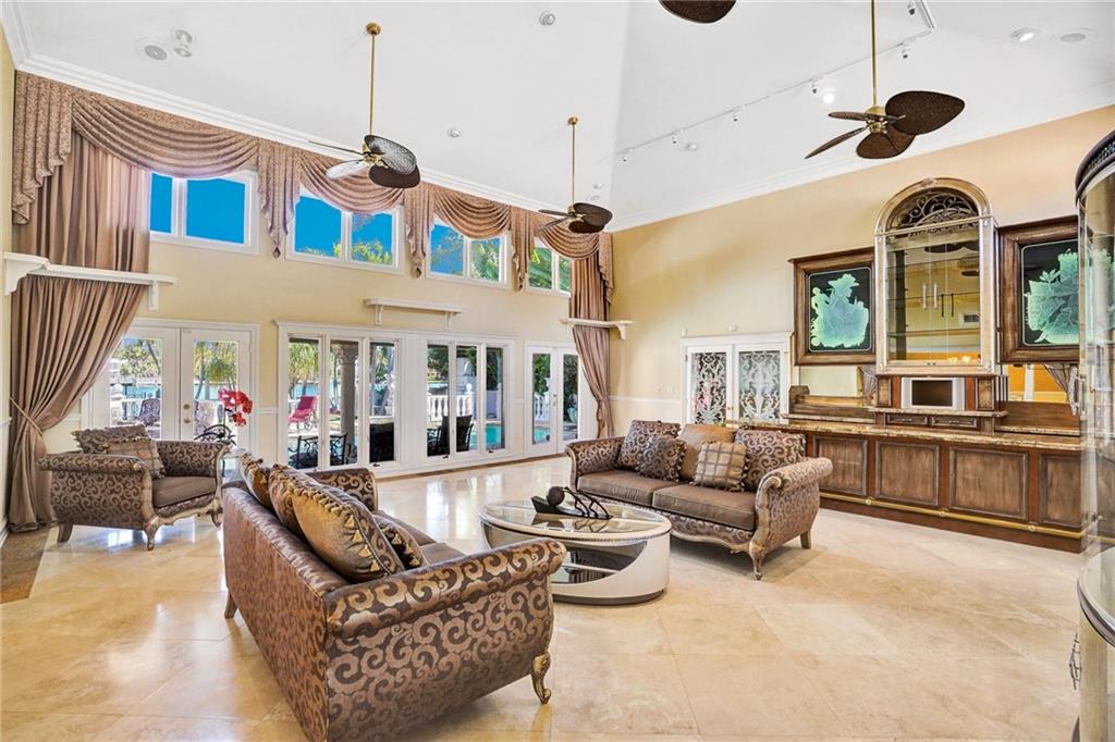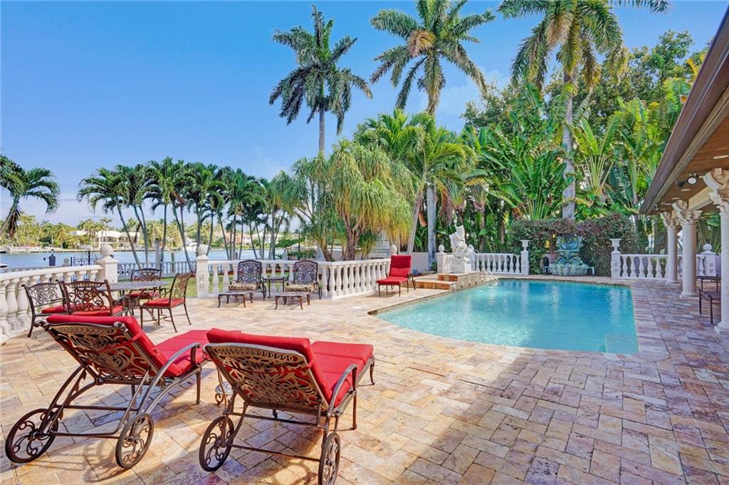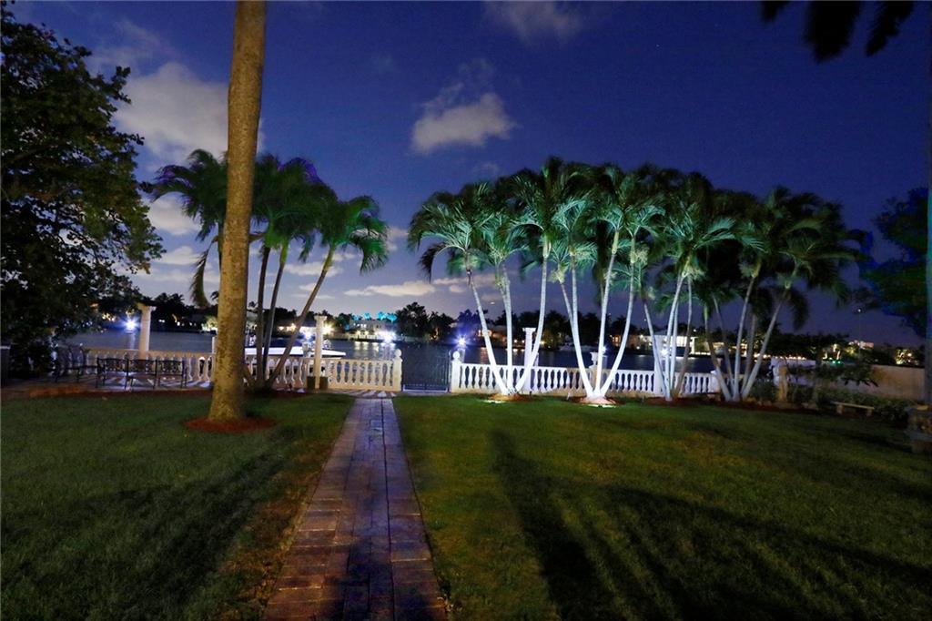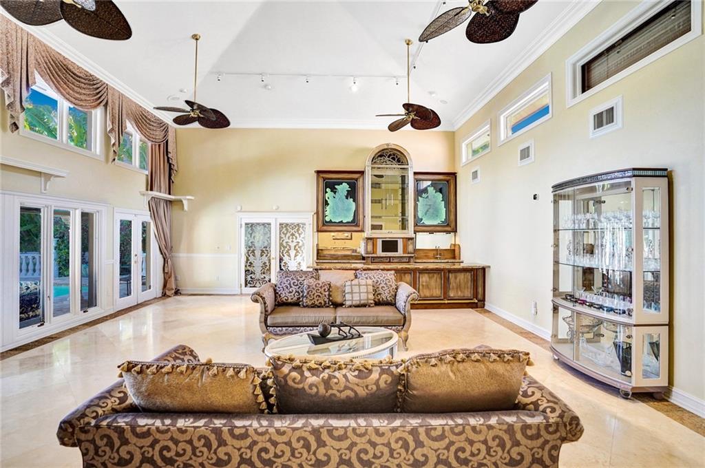 Located on a quiet tree lined street in Hollywood Lakes, elegant 1 story custom estate surrounded by tropical landscaping. Private 1/2+ acre corner property, 100’ water frontage, 75’ deep water dock, w/boat lift a boaters paradise, no fixed bridges. View 360° Virtual Home Walkthrough Tour, just copy paste: https://bit.ly/2vHSX9c or view Drone View: https://bit.ly/2xdQqUu Electric/accordion hurricane shutters, newer AC. Enjoy the magnificent water views from the Loggia surrounding the pool. Outdoor fountains, wet bar, Pizza oven, lounging areas evoke a feeling of resort style living at its best. Living room has a custom bar w/etched glass paintings, Kitchen has 6 Burner commercial grade gas stove, granite counter tops. Large master suite has hard wood floors, Master bath has steam shower