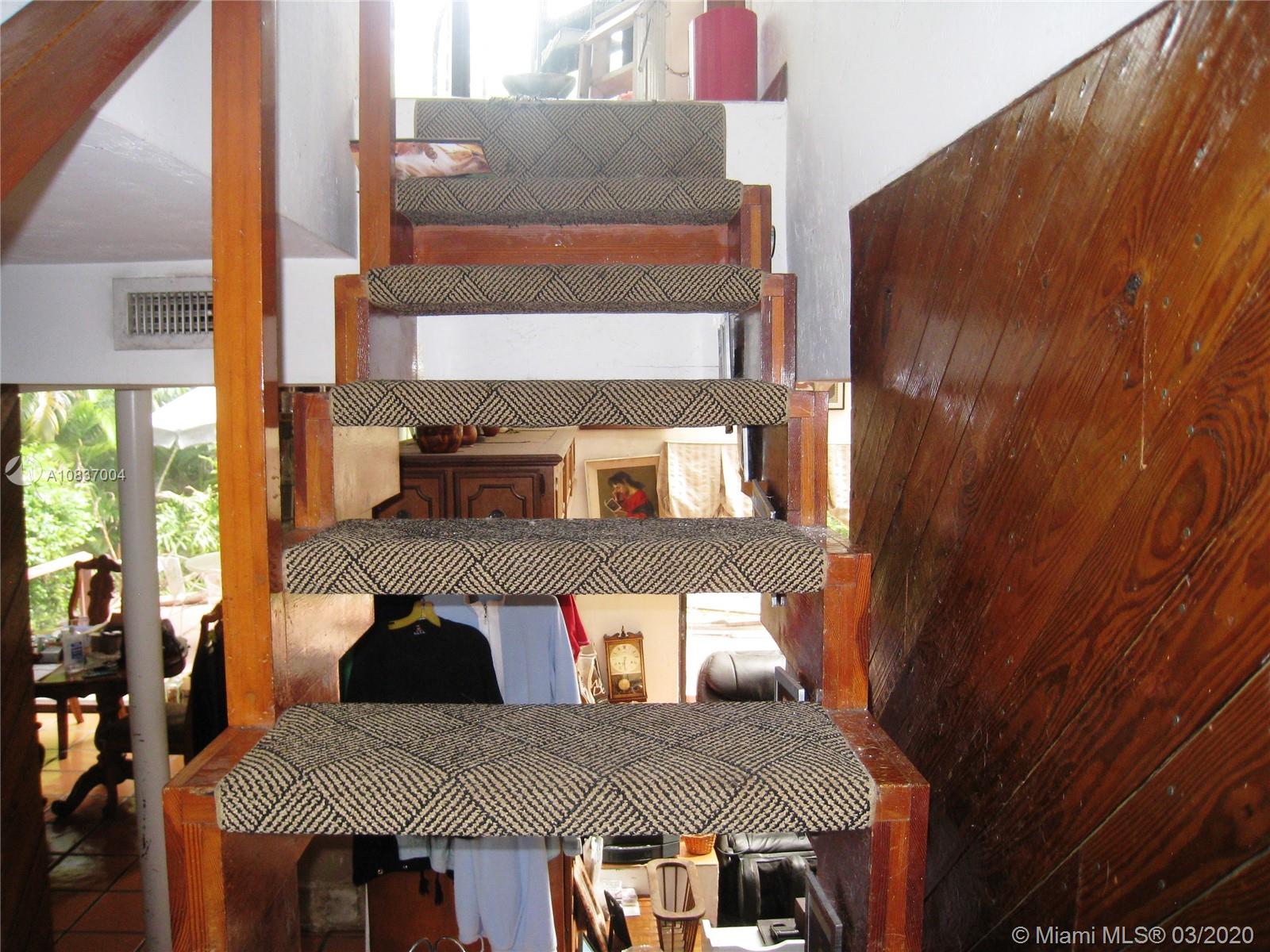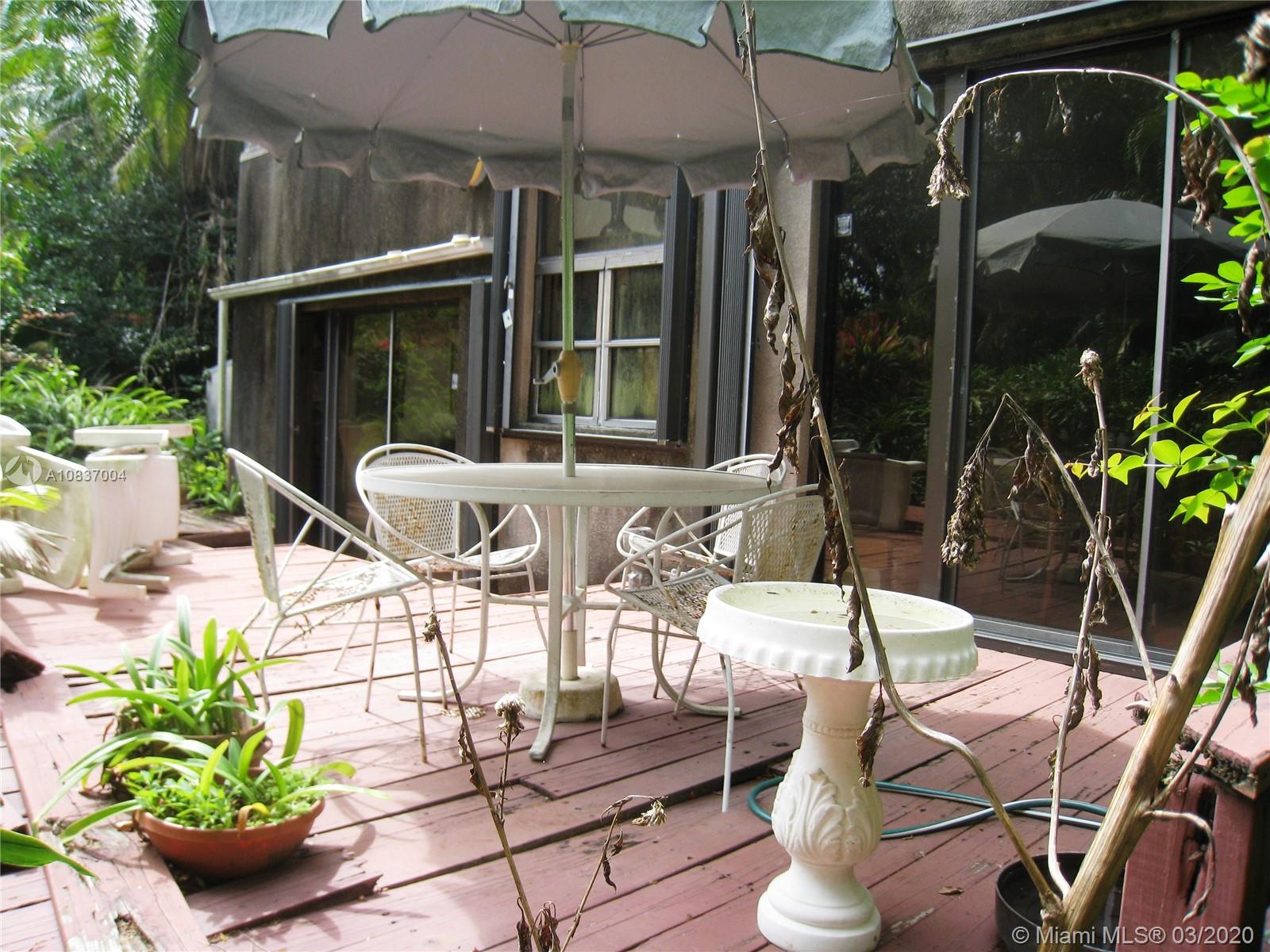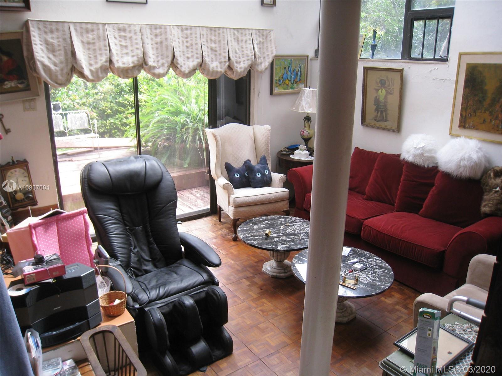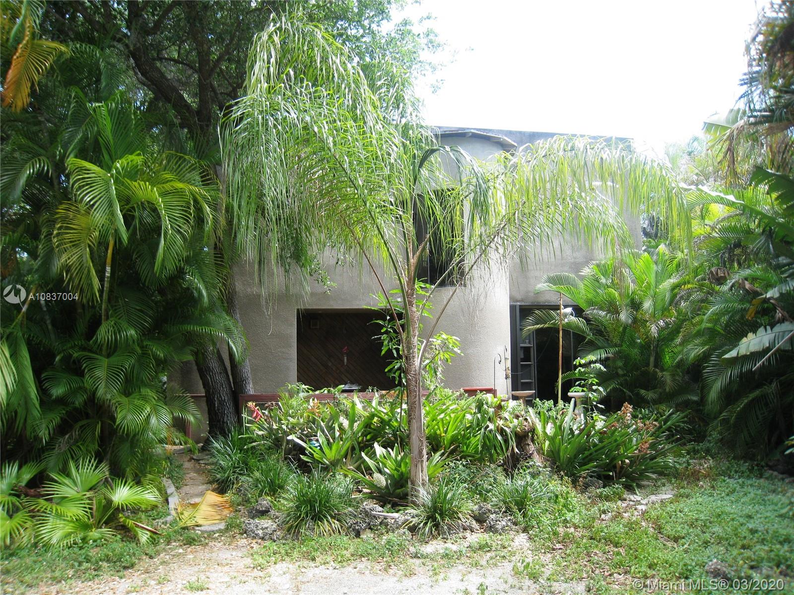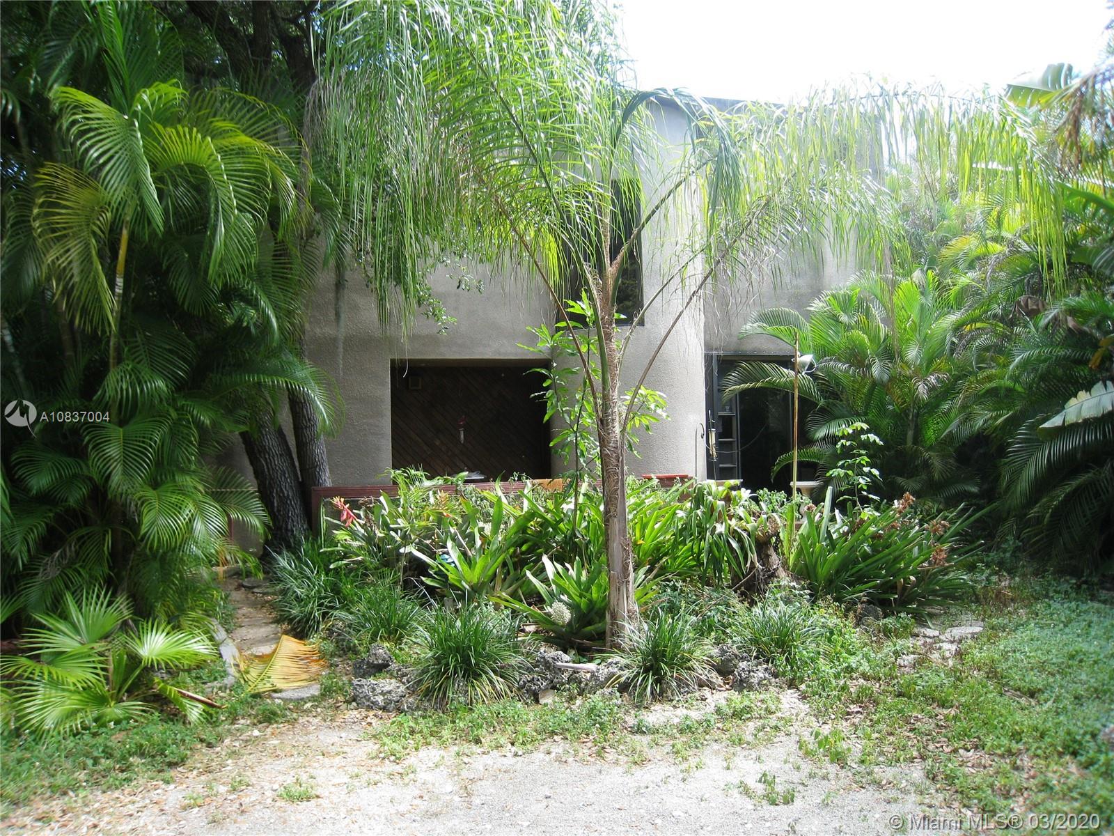 Contemporary in a grovey tropical setting * "Handyman Special" **Zoning: 5700/DUPLEXES** * Estate Sale*2 story gated home in the Village of Pinecrest * Windows & sliding glass doors everywhere allowing for natural lighting *2 full bedrooms & 2 full bathrooms upstairs * Circular stairs leading to the rooftop * Downstairs has a sunken living room with parquet wood floors separated from the dining room by a large built-in fish tank * Downstairs den, office or 3rd bedroom, whatever you like * half bath off the foyer * Kitchen has had some updates * Open wood deck off back of house and a covered patio deck off the side of the house * House is generator ready * Needs a new roof and a lot of work! NOTE: White house in photos is next door house to south: "same model home" aka: sister house.