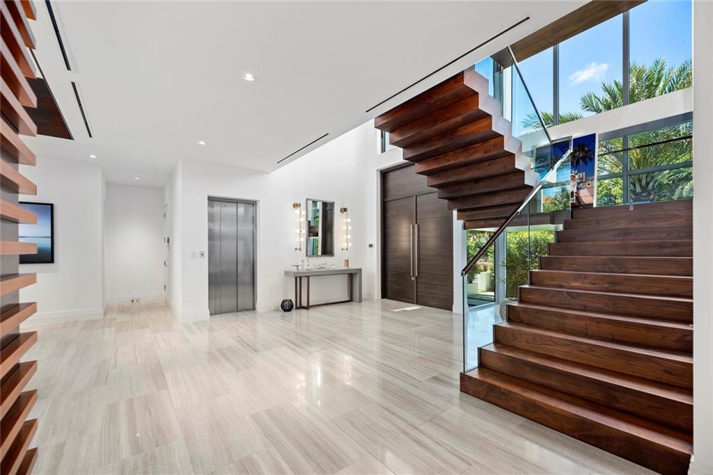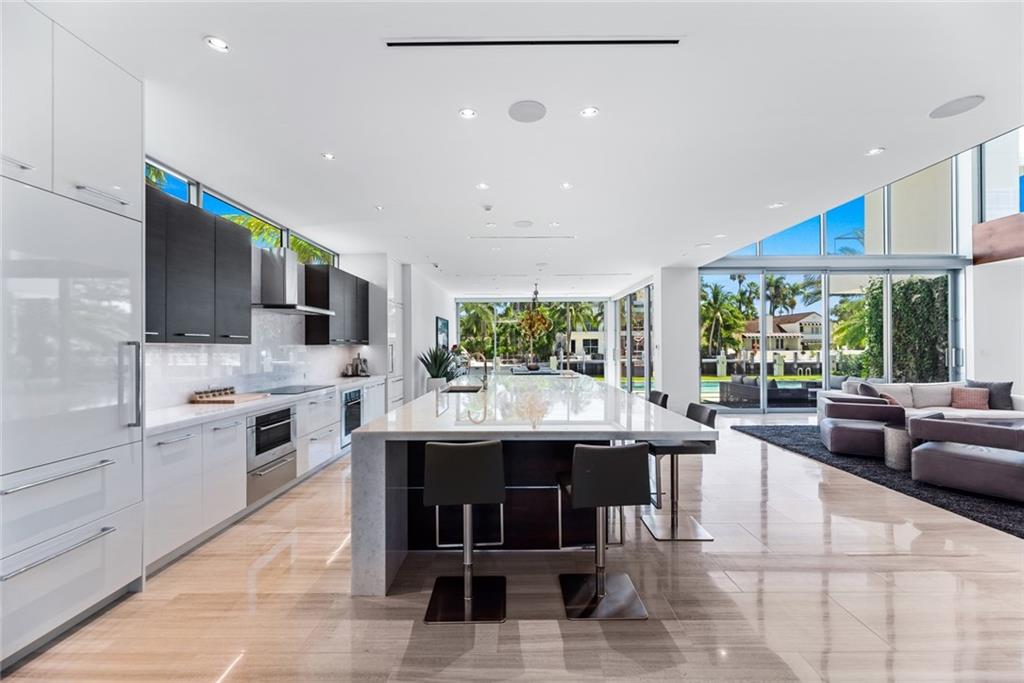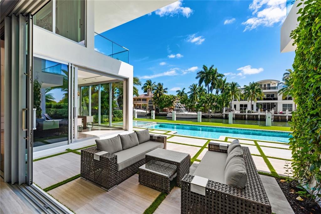 Exquisite residence nestled on the east fork of the point on Mola Ave. One of only three waterfront private properties secured by a private gate, this modern, newly constructed custom residence provides a serene, elegant oasis while being ideally located on Las Olas Blvd. Custom built by Bomar Builders, professionally decorated and furnished, this 5 bedroom, 6 1/2 bathroom residence is spectacularly designed for south Florida living with interior areas extended with outdoor spaces. Relax on your yacht, docked on your private 75ft concrete dock, or on your 3rd floor terrace with 270 degree views of Fort Lauderdale. Use the additional 42ft of waterfront to dock and launch your paddle board, wave runners and other waterfront accessories.
