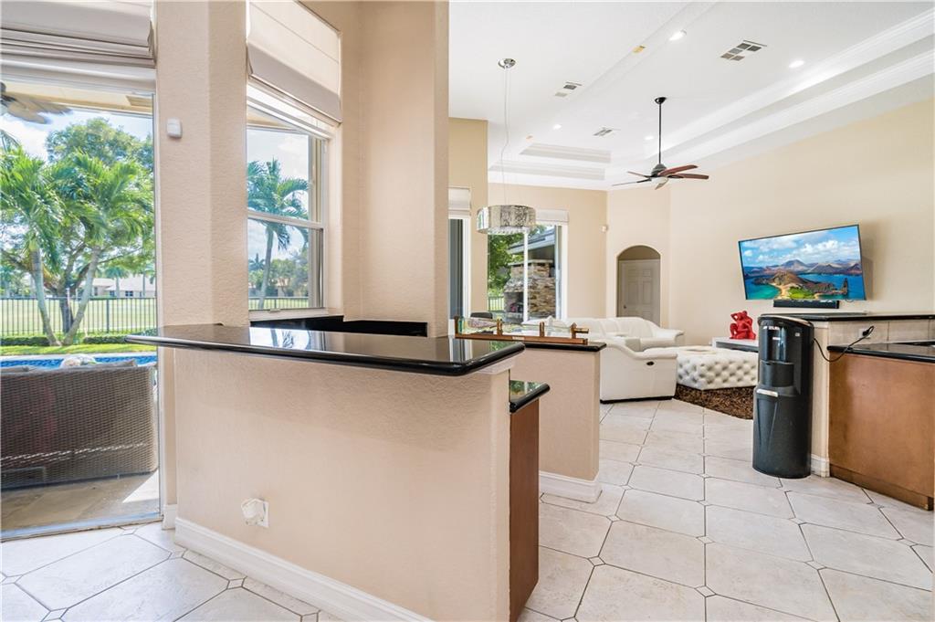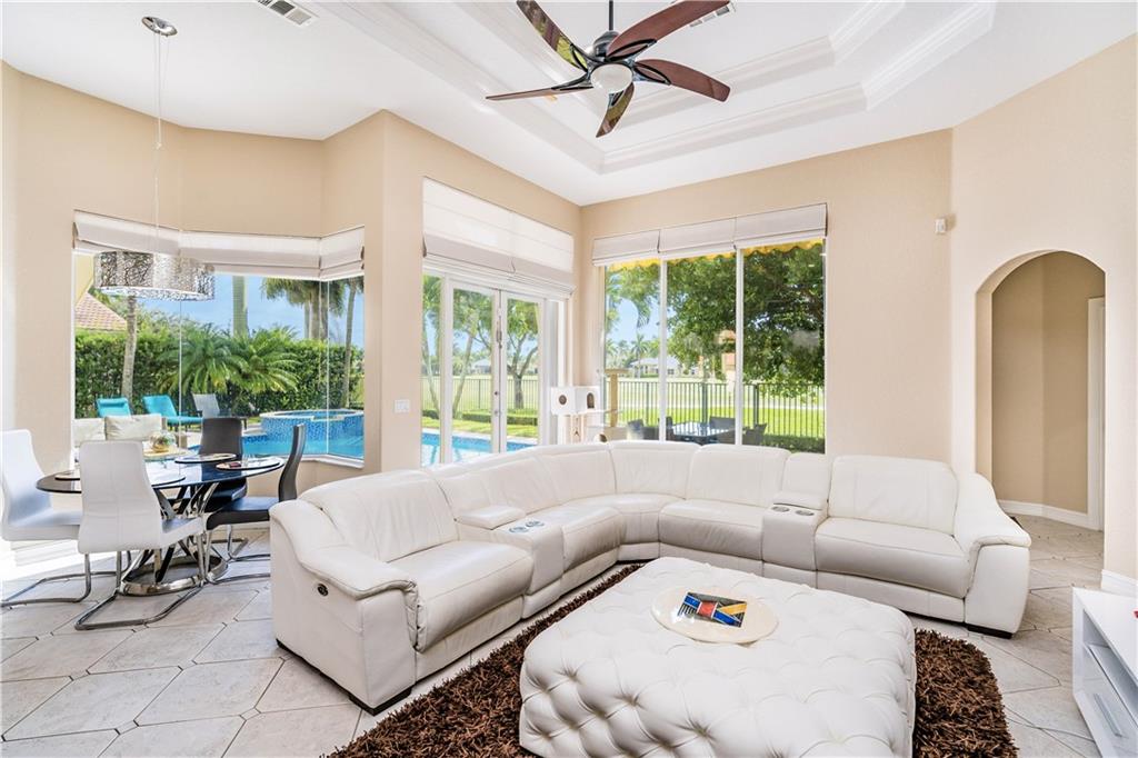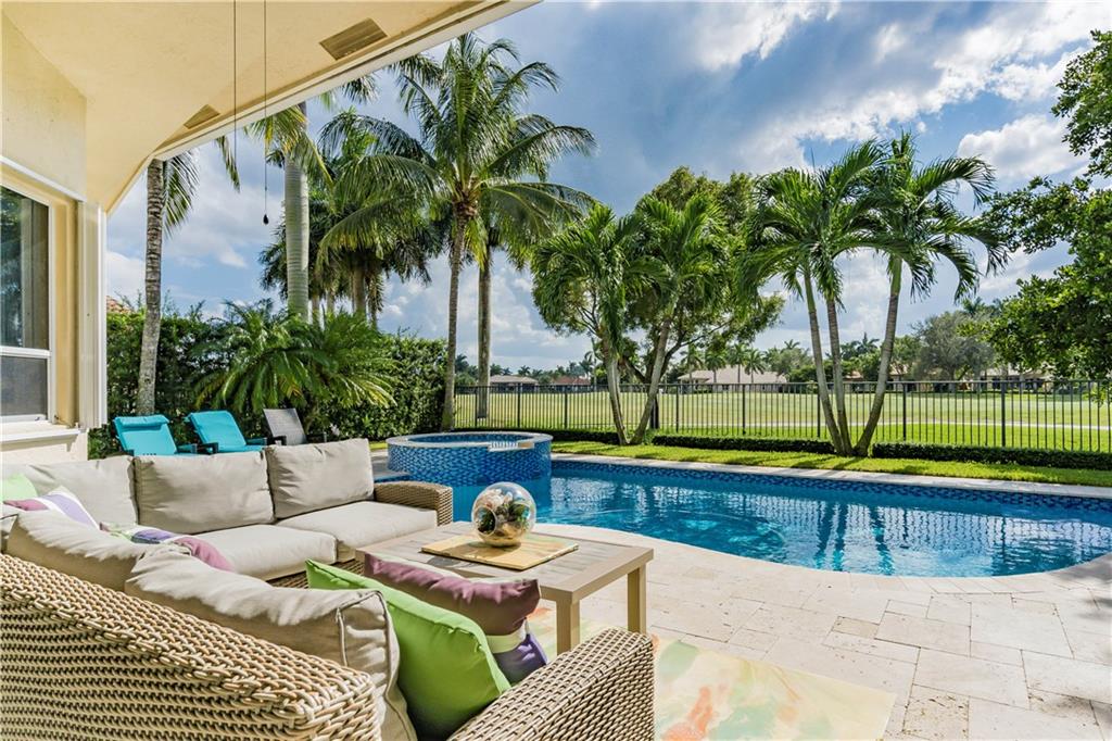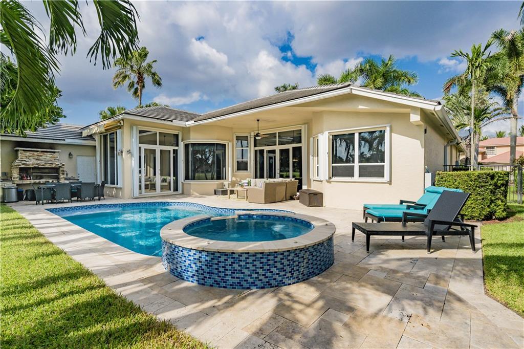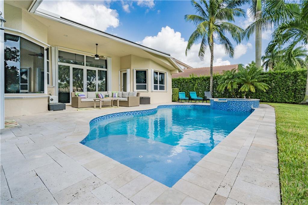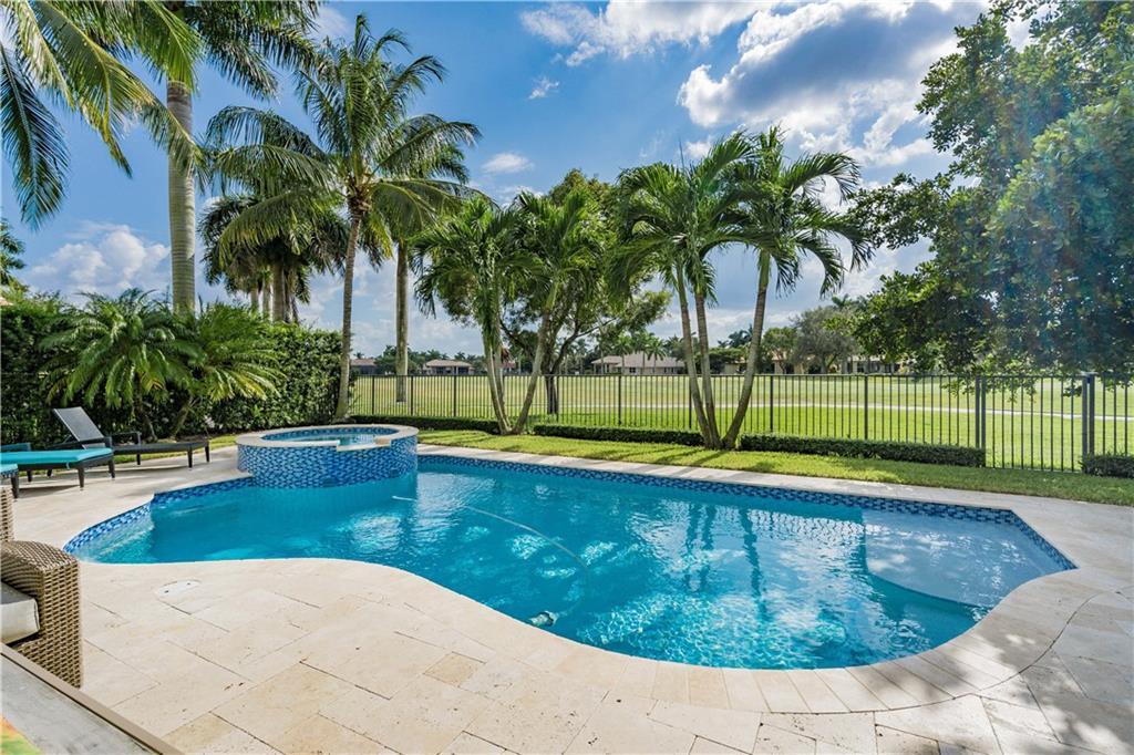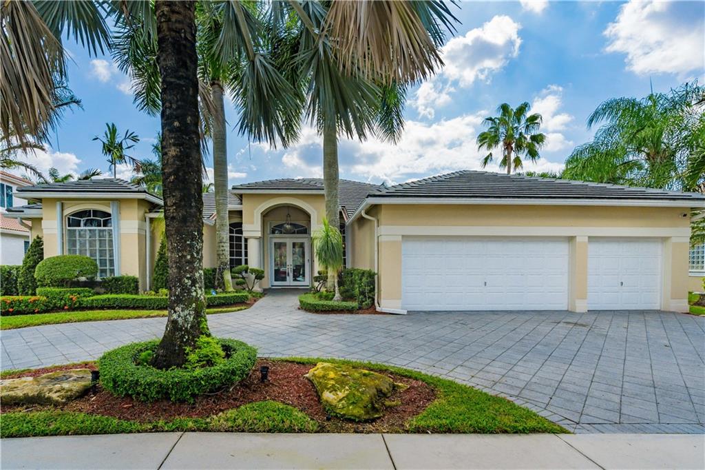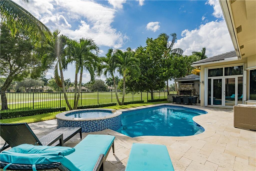 JUST REDUCED. AS IS - MOTIVATED Schedule a showing =. On the GOLF COURSE! Come take a look at this desirable Weston Hills home with striking views of the 7th Fairway. With 5 Bedrooms + Den with 3 1/2 baths (Greenwich Three Extended Model) by ISSA Homes. It has everything you need inside and out. 3 car garage! Private landscaped fenced yard, with an exquisite heated saltwater beach entry pool and jacuzzi (2014). The sun filled triple split floor plan & volume ceiling home is perfect for entertaining year-round with an indoor dry bar. Plenty of upgrades: crown molding, built in closets, newer AC's, hurricane ready electrical upgrade, side gutters, new accordion shutters, subzero fridge, granite counter tops, center island, 42" solid wood cabinets, custom drapes & More. + the A Schools.