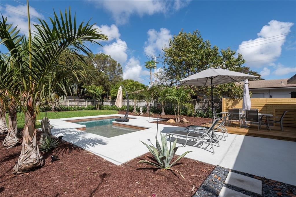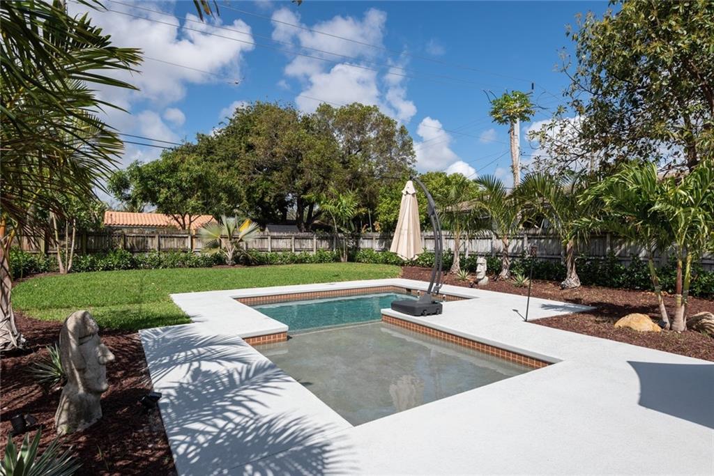This adorable 2/1 pool home has a brand new roof, beautiful back yard and is very close to the artsy NE 13th Street district. Only minutes to Wilton Manors. Available furnished with stained concrete floors and French doors which lead out to a new patio and a lovely landscaped, private pool area. Good parking with a carport and driveway.