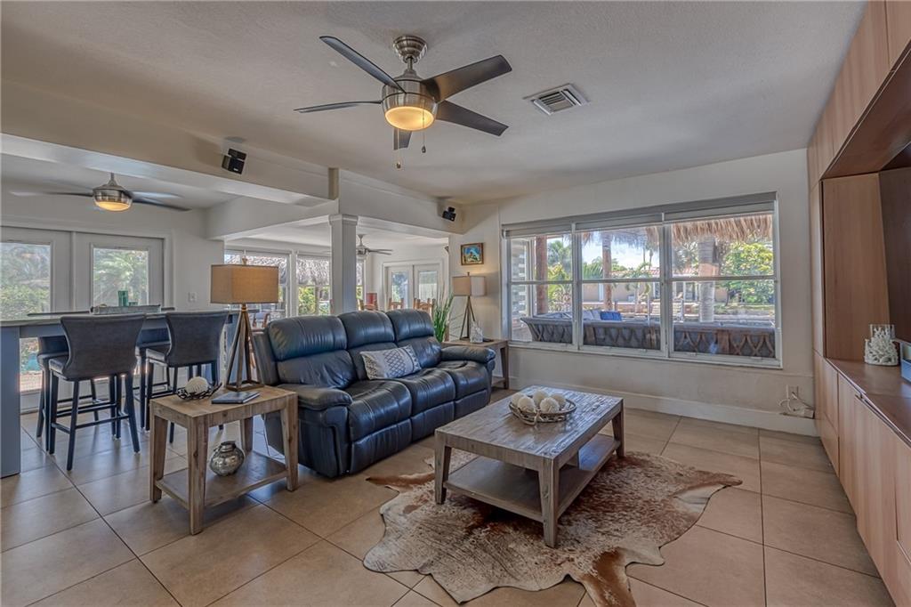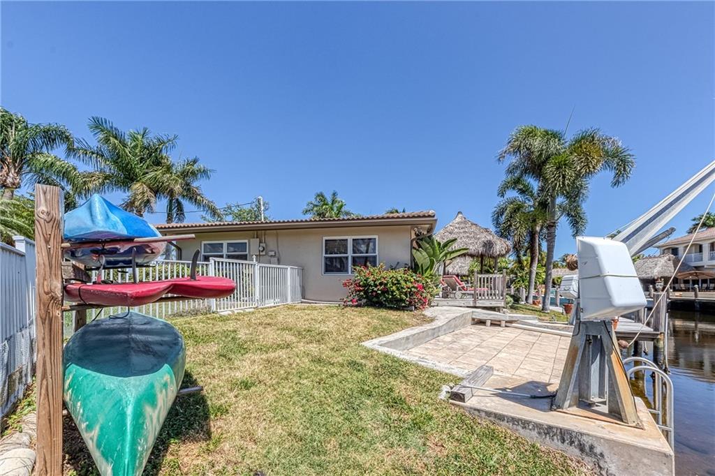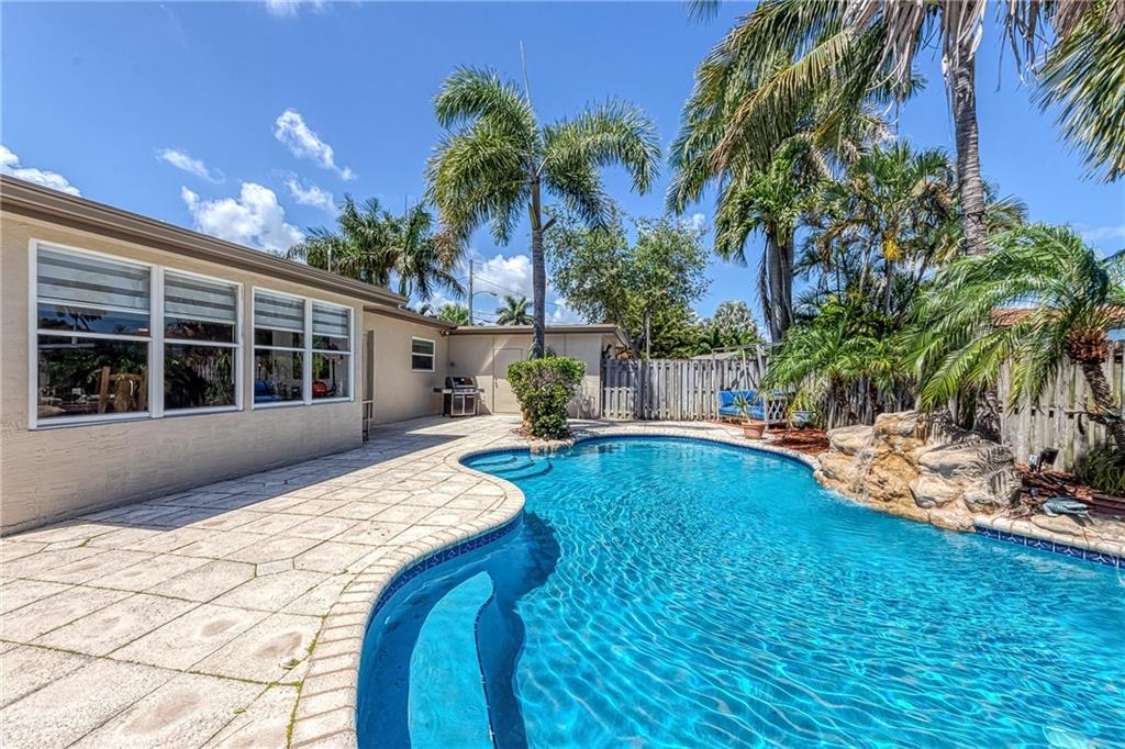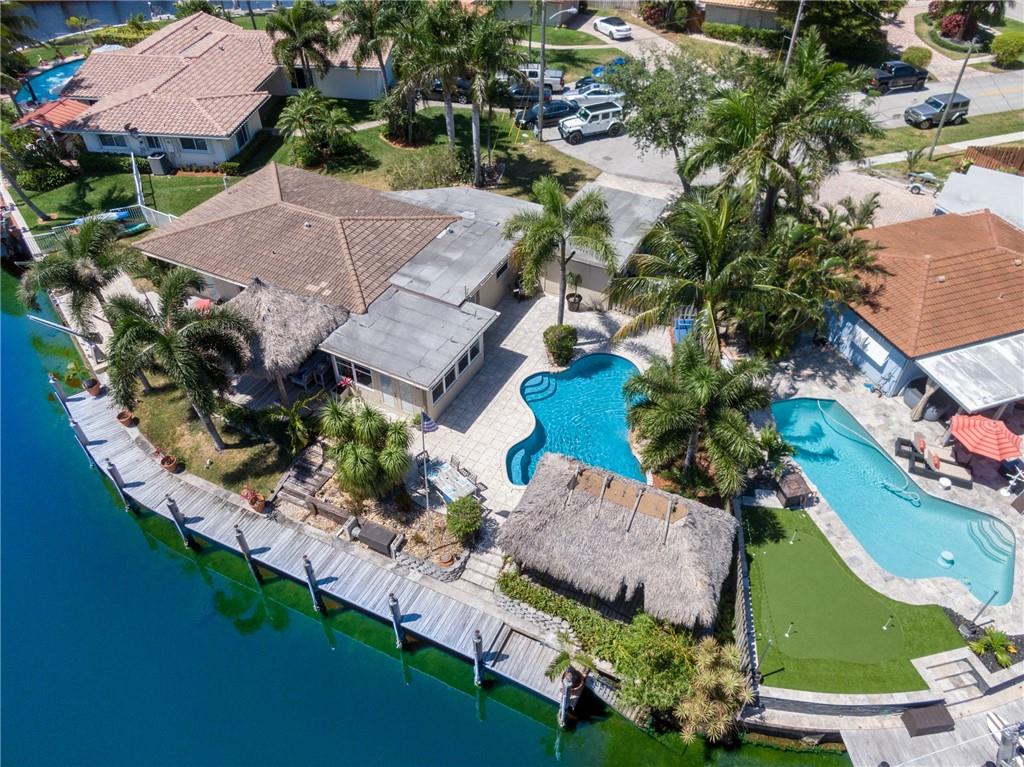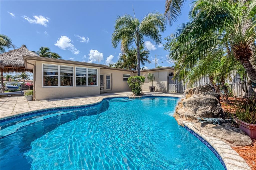 NEWLY PRICED! Here is the rare opportunity to be the proud & lucky new owner of this "priced to sell" updated waterfront 3 Bedroom/2 Bath home in Cypress Harbor. Amazing SE point lot location on quiet cul-de-sac with over 120' of water frontage & a 90' dock & davits for all of your boats, jet-skis, paddle boards & kayaks! Only one high 14' clearance fixed bridge to ocean. Light, bright & in move-in condition boasting a gourmet custom kitchen w/ quartz counter tops, stainless steel appliances, sleek modern bathrooms, newer roof & A/C. Enjoy the Gulfstream breezes while you relaxing & entertain in your truly tropical oasis of a backyard with a large free-form pool w/ waterfall feature, 2 spacious & airy Chickee Huts with water views everywhere! Corporate relocation & ready to make a deal!