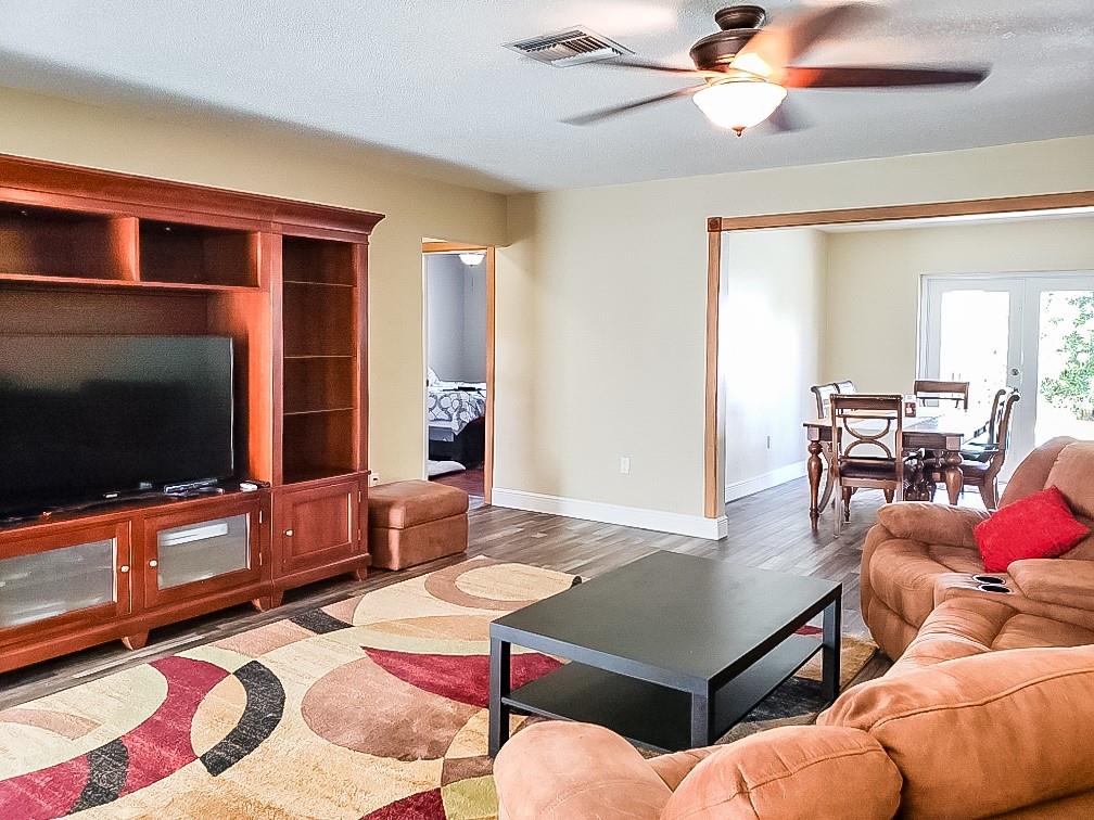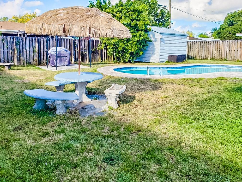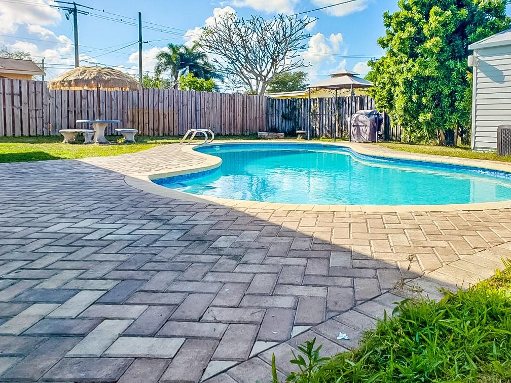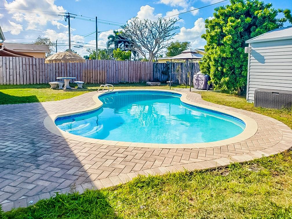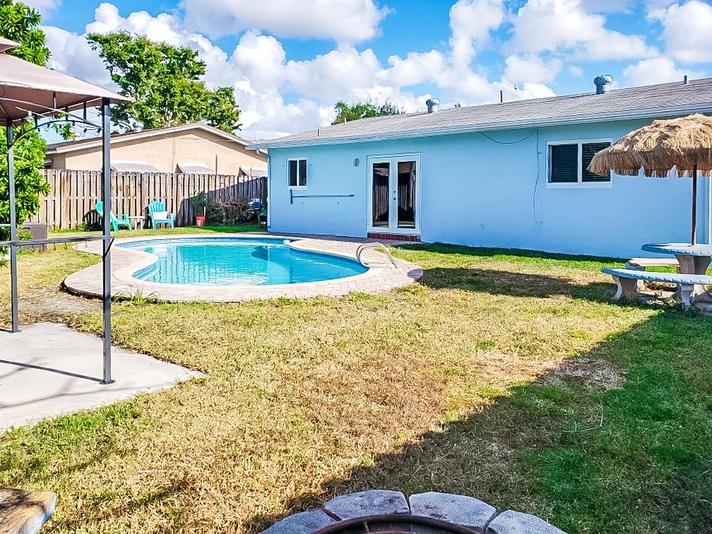 Now presenting this stunning, completely upgraded 3 bedroom/1 bathroom home in Driftwood Estates. This home is move in ready and has hurricane impact doors and windows, brand new floors, fresh exterior paint with a paved driveway, updated kitchen, bathroom, beautiful pool with an over-sized yard making this house PERFECT for living and entertainment. No HOA. Located near The new Hardrock Guitar Hotel, close to major highways, shops, and dining.