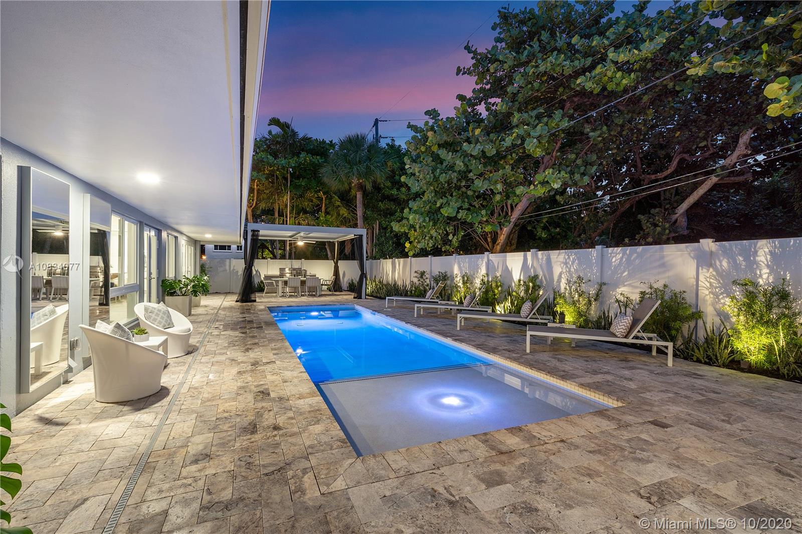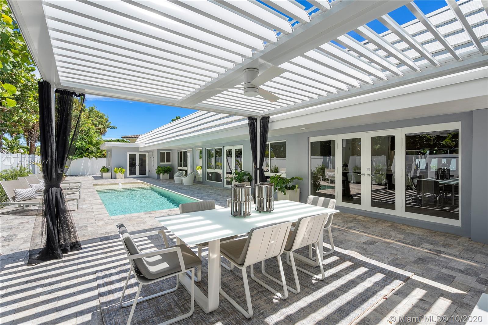 Stunning Hamptons beach contemporary in prestigious Harbor Beach – space and privacy to get away from it all. Less than 500 meters from the ocean, a short walk puts your feet in the sand at the neighborhood-only private beach club. The 4 bdrm 4.5 bath, new to-the-studs renovation, features TWO large master suites and en-suite bath and custom closets in ALL bdrms. Open-plan gourmet kitchen is adorned with appliances by Fisher&Paykel, Wolf, and Sub-Zero. Private outdoor area features heated salt-water pool, outdoor shower, electric louvered pergola, and 7+ft. grill island. 600+sqft garage w/AC for all your toys. Unique double-layered roof newly coated for energy efficiency. Upgrades also incl: new plumbing/electric, hurricane windows. Neighborhood marina slips available.