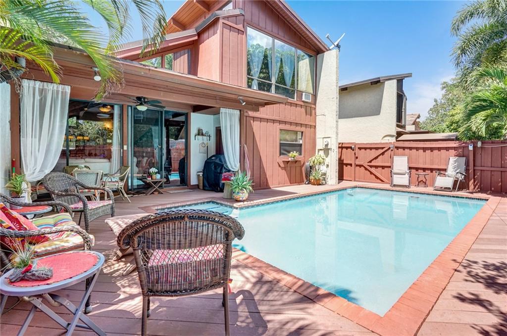 BACK ON THE MARKET... ABSOLUTELY GORGEOUS THIS BEAUTIFUL VILLA FEATURED 3 BEDROOM 2 BATHROOM + A DEN (MEZZANINE) OVERLOOKING THE LIVING ROOM AREA. THIS HOUSE IS COMPLETELY RENOVATED. SIT OUTSIDE NEXT TO THE HEATED POOL AND ENJOY THIS BEAUTIFUL FLORIDA WEATHER. WOOD CEILING WHICH BRINGS A RELAXING ATMOSPHERE. ALL FENCED BACKYARD. JUST TAKE A LOOK AND YOU WILL FALL IN LOVE WITH IT.