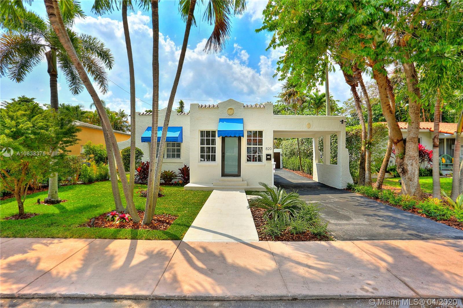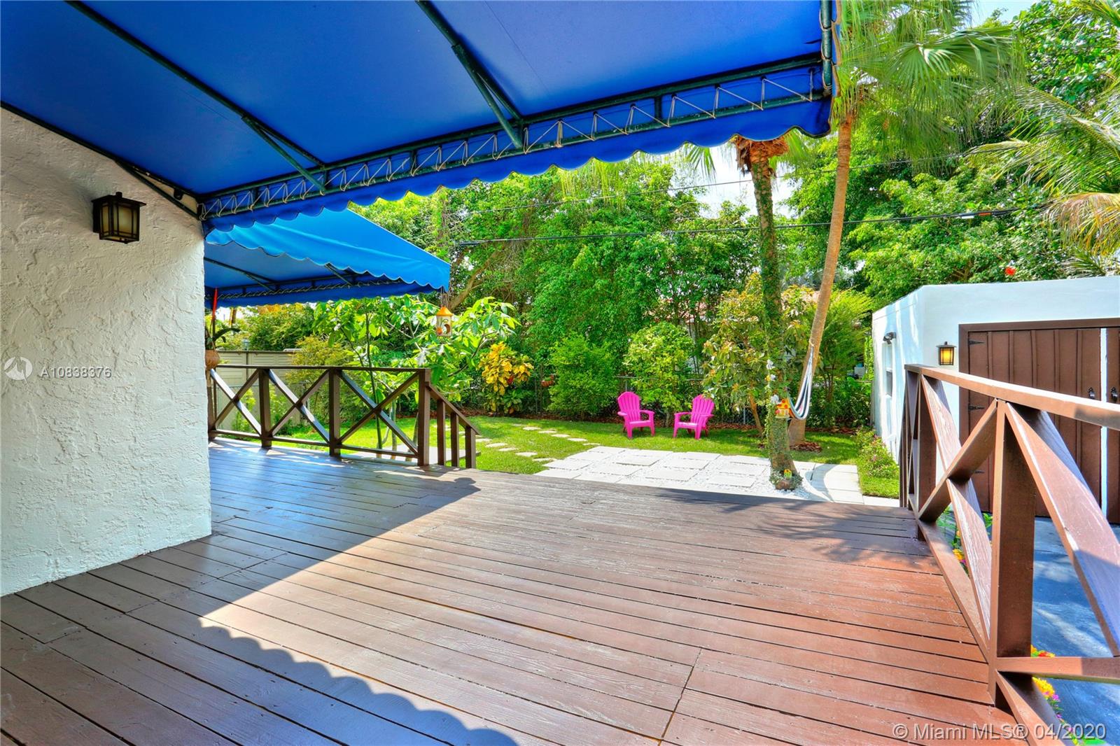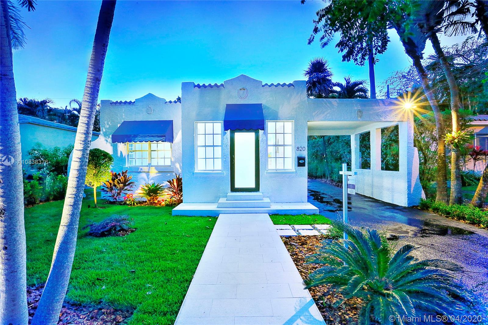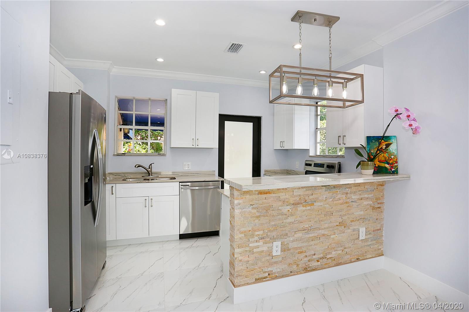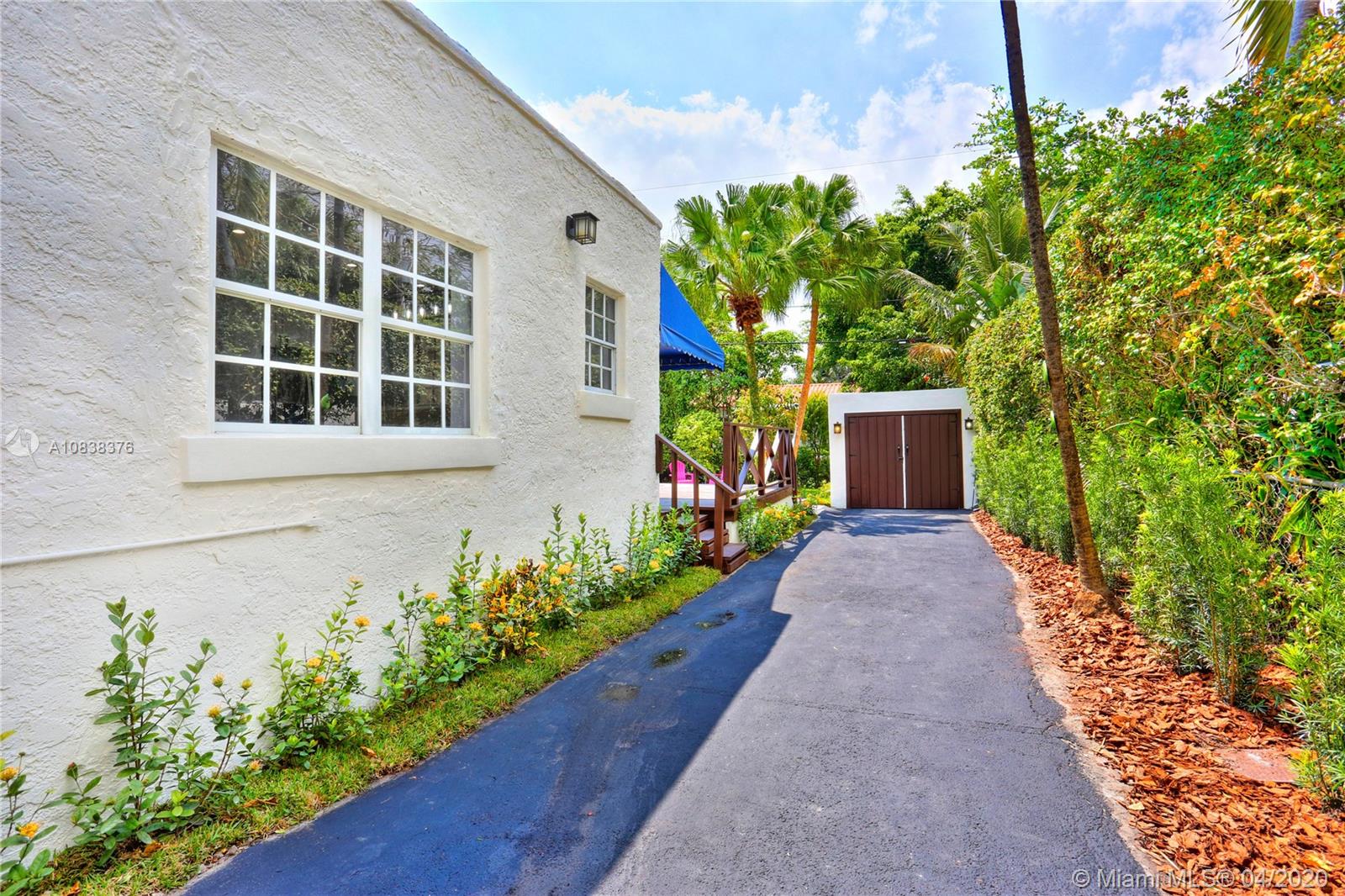 A charming 1923 Coral Gables Old-Spanish style home completely updated with 2 bed, 1 bath, a converted detached garage situated on a tropical landscape will fascinate you upon arrival. With a long driveway and carport, this home is filled with lots of windows with attractive features such as an open-concept kitchen/living area, a working original fireplace & an ample freshly painted wood deck great for relaxing and entertaining. New features: A/C, PVC plumbing, tankless water heater and washer/dryer. The eat-in kitchen has solid wood cabinetry with granite countertops and s/s appliances, updated bathroom with shower, custom built-in closets, large porcelain interior floors. Spacious master bedroom with access to the deck. Enjoy living close to lots of what Coral Gables has to offer.