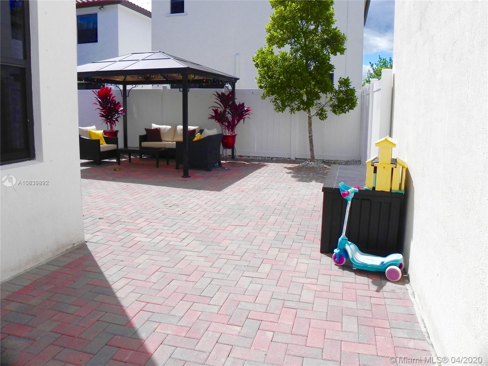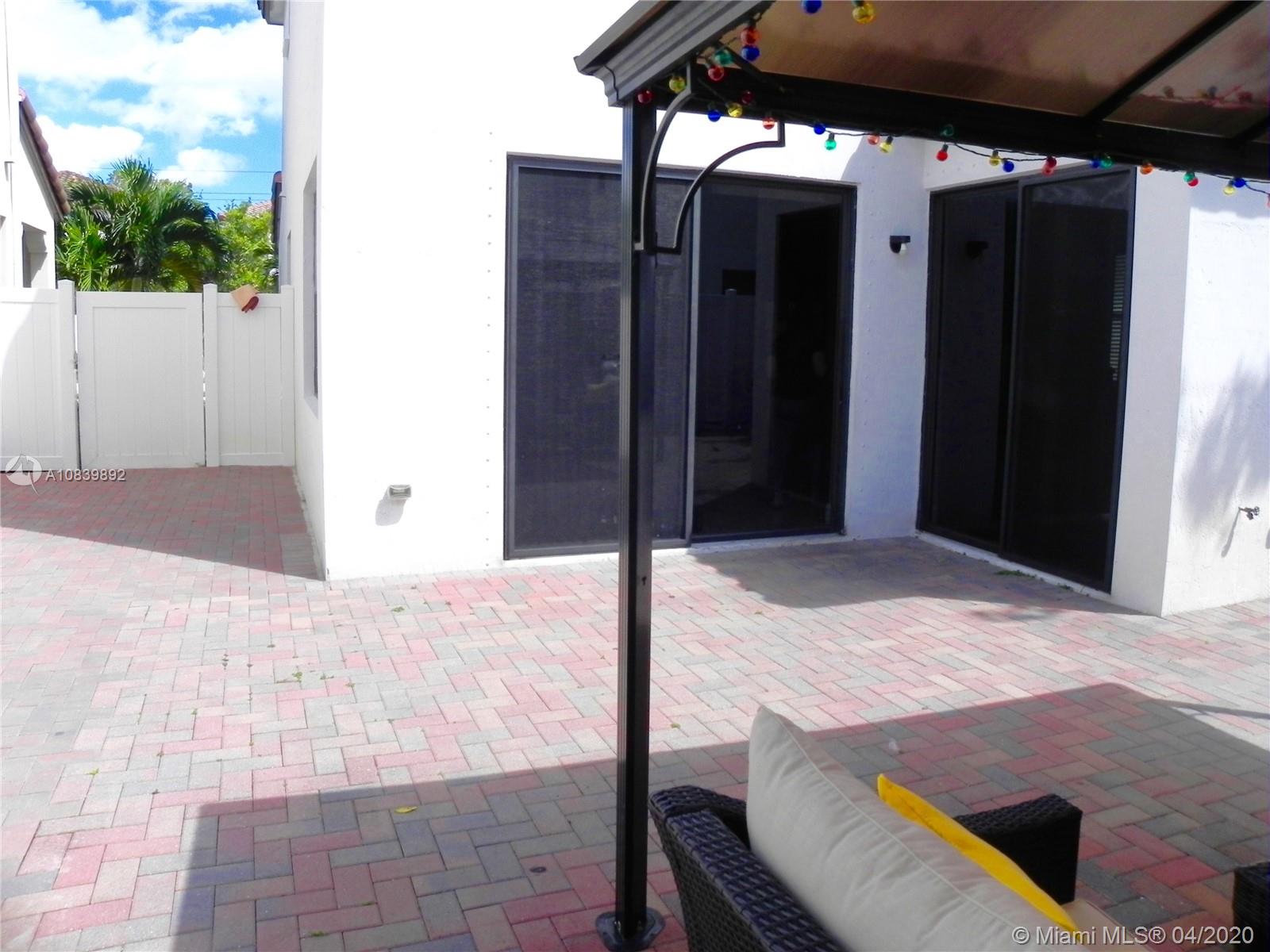 Corner home, 2 story open concept with a 1 car garage. This property features 3 bedrooms, 2 bathrooms, laminate wood flooring on the 2nd floor and 1/2 bathroom on the 1st floor. The first floor is totally open so you can entertain, gather with your family and enjoy there company. It has stainless steel appliances, tile throughout plus 5" crown moldings. The backyard is fenced and paved throughout so you can enjoy your BBQ's. Community features pool, cabana house, children play area, gated community, 24 hr. security patrol... EXTRA room (Garage converted to a bedroom) Come and call this your home!