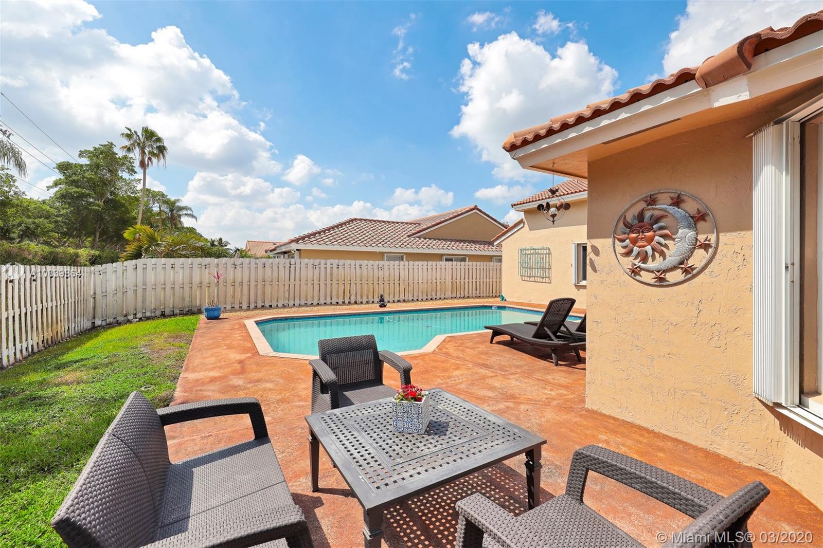 Beautiful Ascot Model 3-2 Pool Home with 2 car garage in the very desirable Bristol Bay Huntington. The Home is very spacious, high ceilings with a split floor plan, Remodeled Wood Stained Cabinets w/ Quartz Counter-tops, Subway Back-splash, Stainless Steel Appliances, Master Bathroom Remodeled w/ Frame-less Shower, Floor to Ceiling Subway Tile Shower, w/ Double Vanity Vessel Sinks, Custom Closet Organizer, Guest Bathroom Remodeled w/ New Tile Floor, Subway Tile Shower Custom Vanity w/ Vessel Sink. 6 Ft wood fence in the Backyard which is great for entertaining with a large patio around the pool and no neighbors in the back. According Shutters, Low HOA $179 a mo. Roof replaced 2006, A/C & All A/C Ducts replaced 2019.