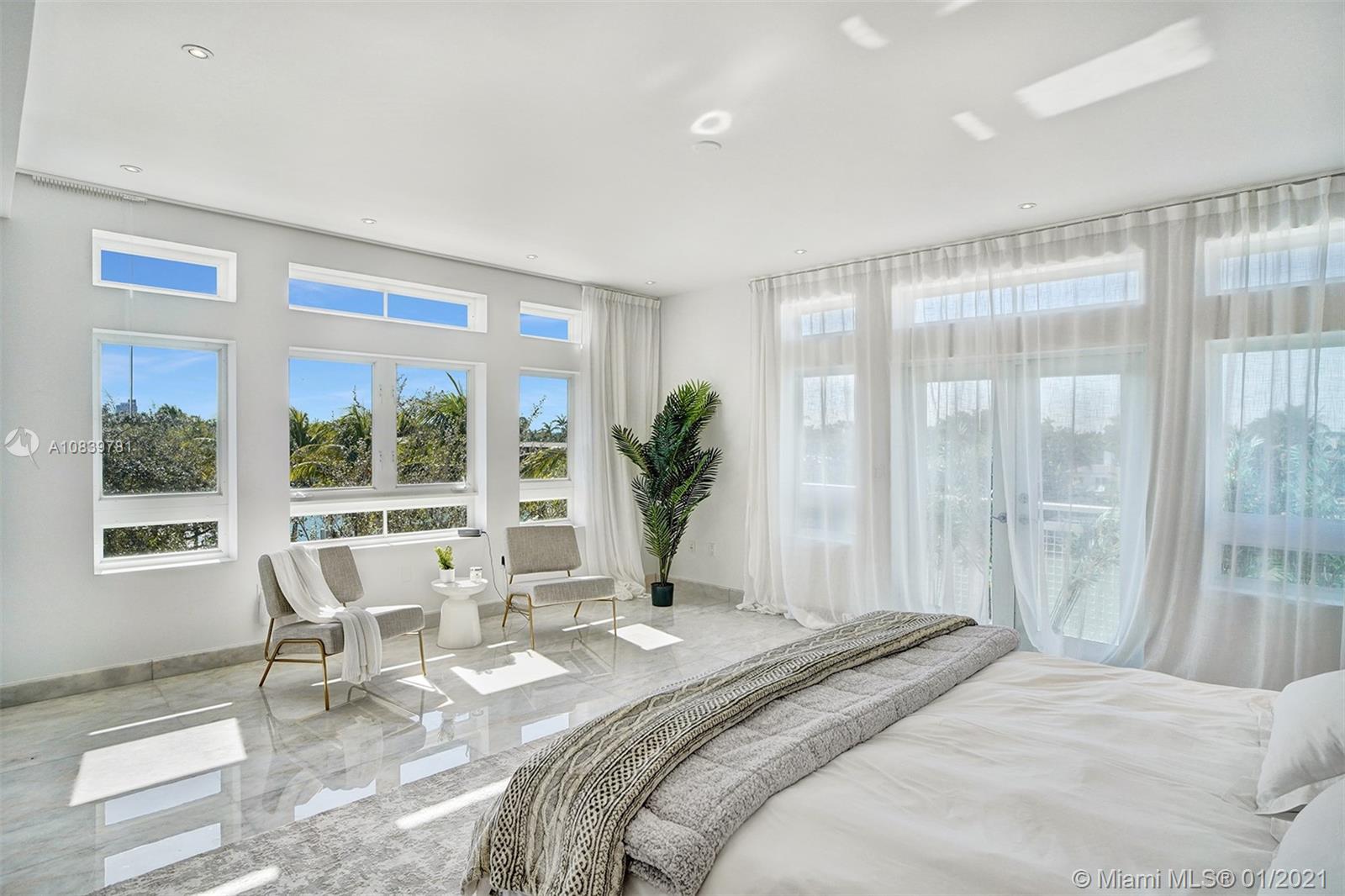 Welcome to this sun-drenched contemporary corner townhome that has unobstructed water views, 4bed + den, 4.5 baths, and a private elevator. A deeded boat dock is included. Direct western exposure allows light to stream in during the day. At night, breathtaking sunsets and the downtown city skyline are yours to enjoy. Outdoor terraces total 1,281 sqft. Modern finishes throughout including 36x36 fantasy white marble flooring. Bulthaup kitchen with Subzero, Bosch, and Thermador appliances. Stunning full-floor master suite with two built-in closets. Two car garage with power for an electric car. 22 minutes to the airport. A couple of minutes to the beach. A+ rated schools. Experience the Miami lifestyle!