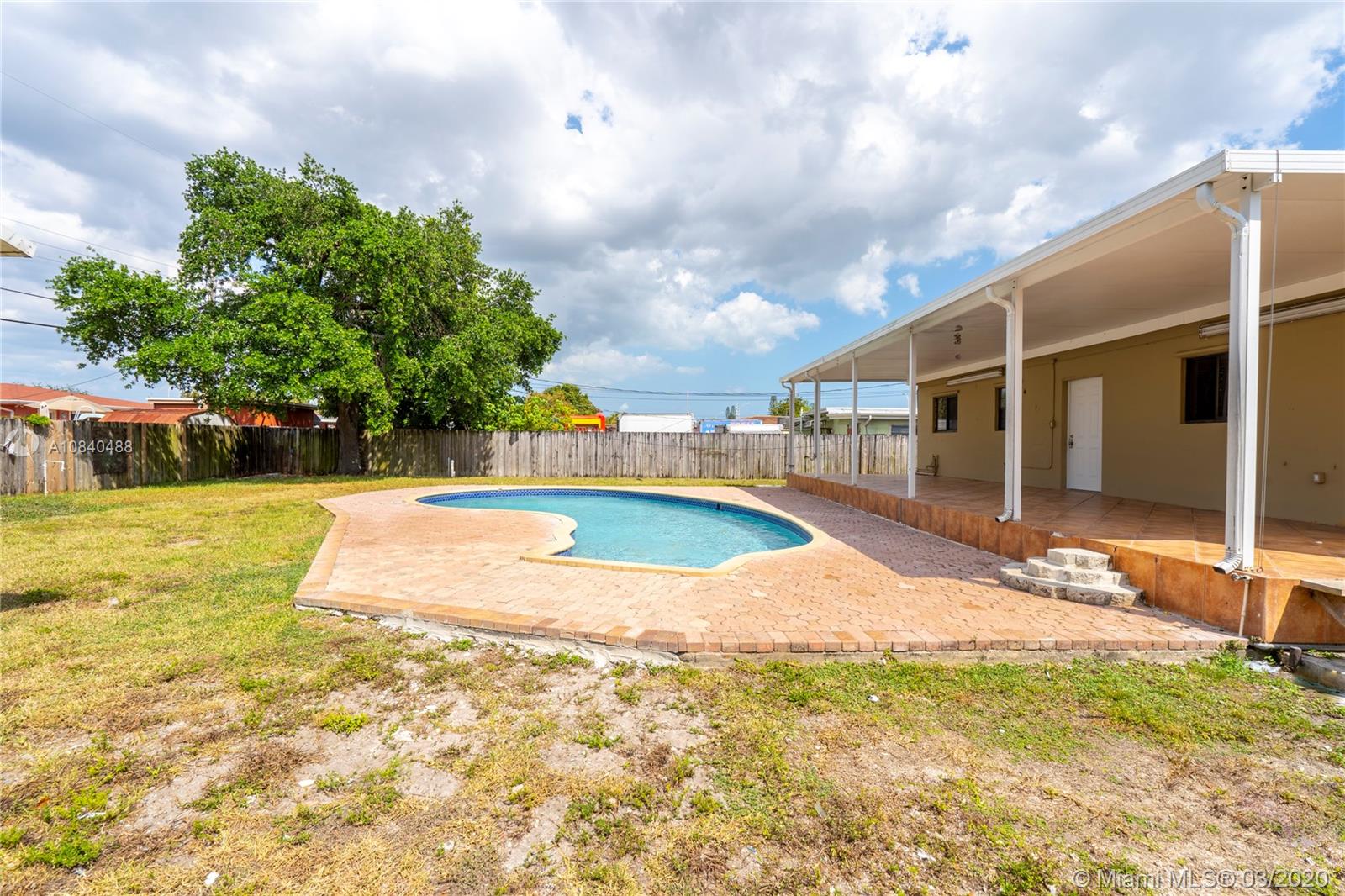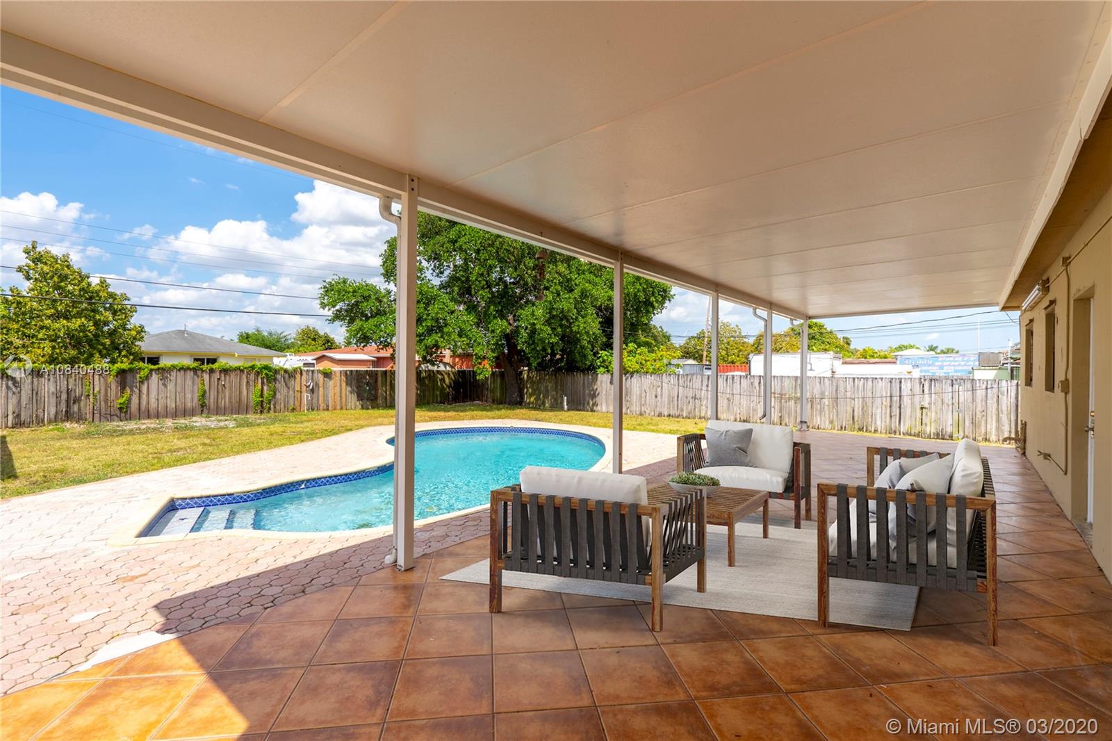 Wonderful opportunity to own this 4BR/2BA pool home situated on a fenced in lot in a quiet neighborhood of Hialeah. Recent upgrades include a brand new roof, all new interior & exterior paint, new SS appliances and a new pool pump and filter system. The home features tile flooring throughout, a spacious dining/living room combo, galley style kitchen, optional office, optional mother-in-law/guest room and a generous master bedroom. Out back you'll find a large covered patio that overlooks the beautiful in ground pool! To help visualize this home's floor plan and to highlight its potential, virtual furnishings have been added to photos found in this listing. All Information recorded in the MLS is intended to be accurate but cannot be guaranteed, buyer advised to verify. Sold As-Is.