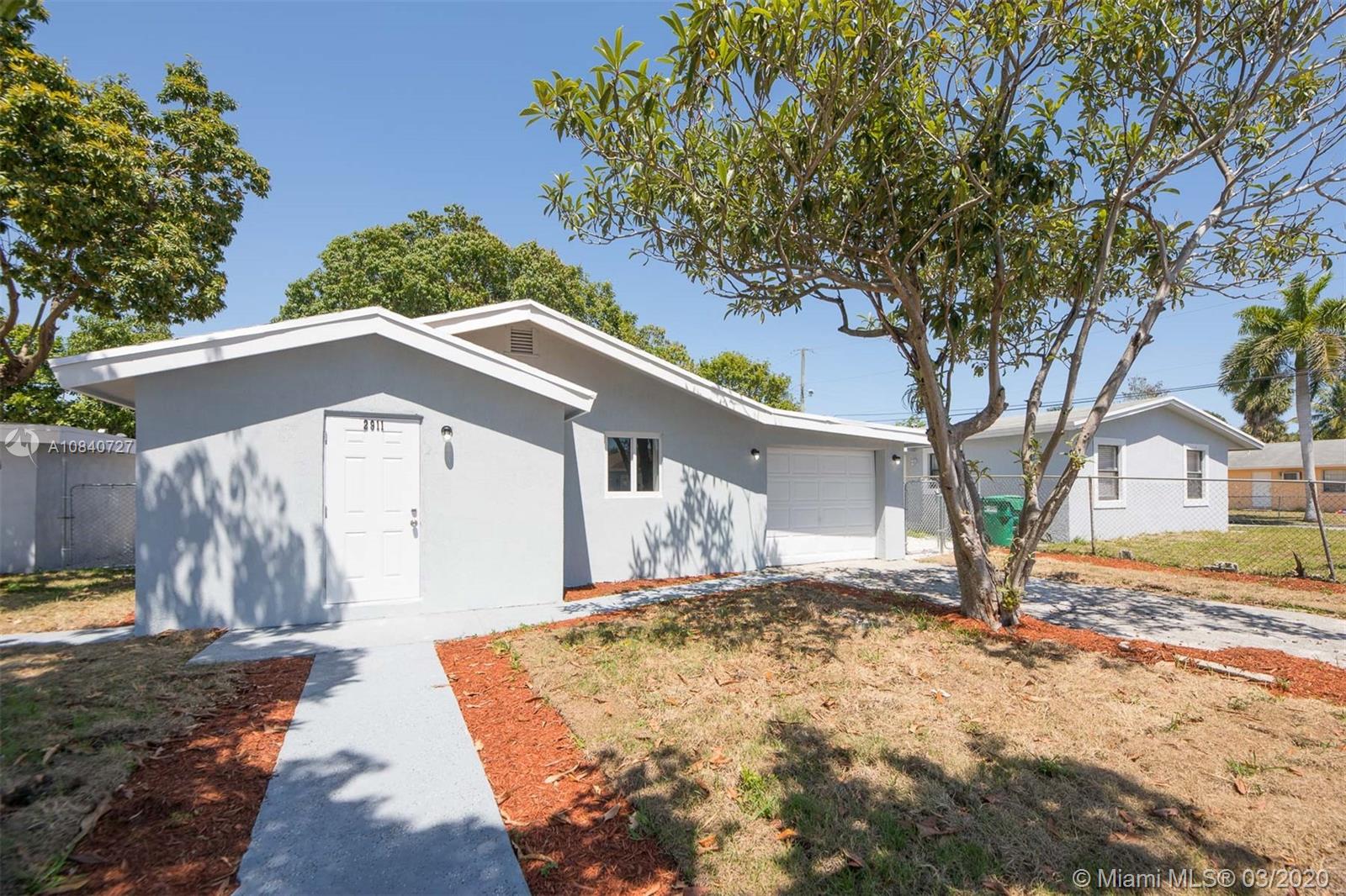 Family home or Investor dream: great for Airbnb or rental income. Fully remodeled: 3 bedrooms and 2 bathrooms, all rooms with closet. New floors, large and completely new kitchen, new appliances, new a/c unit with 10 year warranty. Completely remodeled bathrooms, new closets, new doors throughout the property, impact windows throughout the property, garage for 1 vehicle, new concrete, private backyard with great landscaping, beautiful decoration and painting. Great location between Sunrise Blvd and Broward Blvd.! near schools, the I95, the Turnpike, near Fort Lauderdale beach, Train station, hospitals and shoppings.