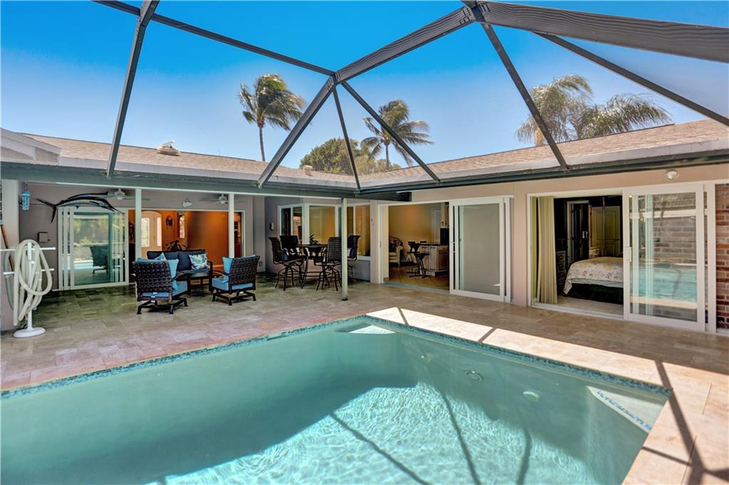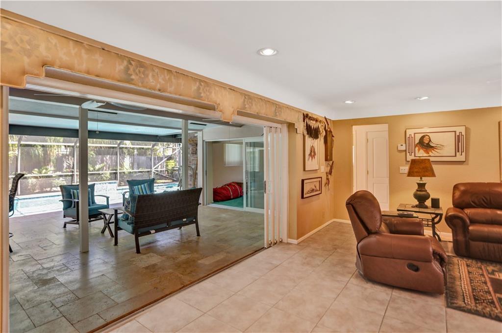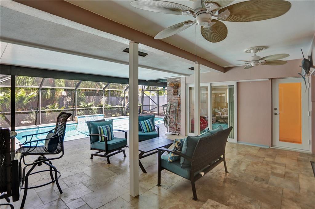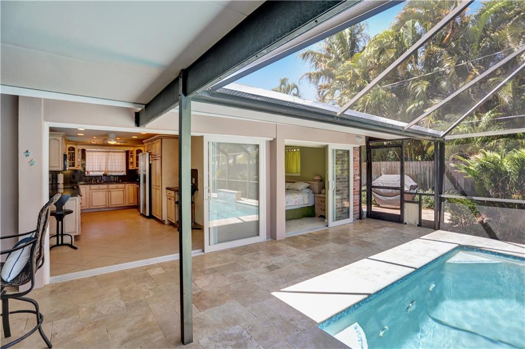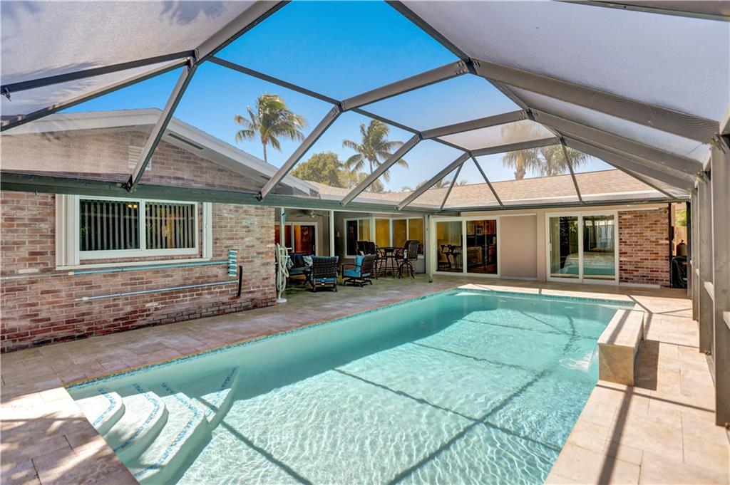 Very inviting entry to this lovely updated home with paver circular drive, enter through beautiful glass door to a breath taking view of sparkling pool with waterfall & open screened out door living. Kitchen updated with granite counter tops stainless appliances, laundry room plus an over sized garage. Master bedroom & bath off kit with pocket slider doors leading to pool, private office overlooking the circular drive,nice living room opening to patio & pool,two more bedrooms & bath all rooms have impact pocket slider doors to open into a great screened patio & a salt water pool. JVR Hurricane doors and window,New Roof,Travertine Marble Patio floor,pool refinished, Garage door opener, Dishwasher & Water heater, New pool pump & A/C, Termite warranty.