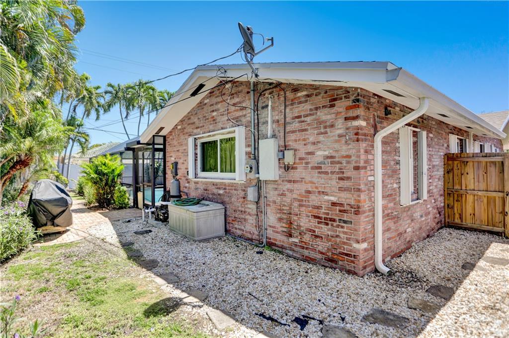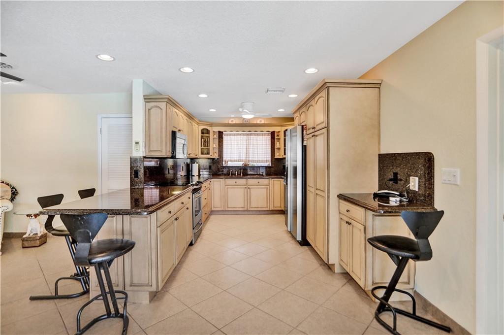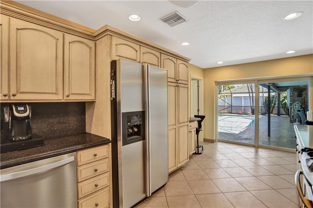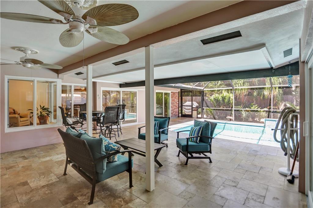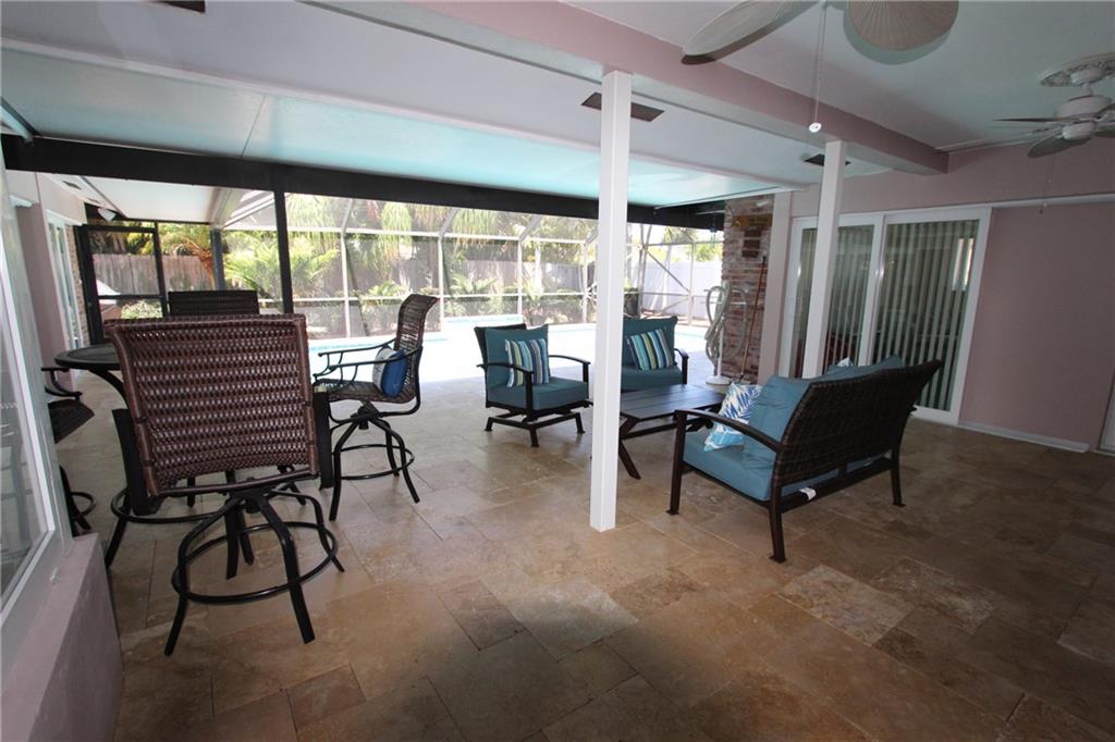 Very inviting entry to this lovely updated home with paver circular drive, enter through beautiful glass door to a breath taking view of sparkling pool with waterfall & open screened out door living. Kitchen updated with granite counter tops stainless appliances, laundry room plus an over sized garage. Master bedroom & bath off kit with pocket slider doors leading to pool, private office overlooking the circular drive,nice living room opening to patio & pool,two more bedrooms & bath all rooms have impact pocket slider doors to open into a great screened patio & a salt water pool. JVR Hurricane doors and window,New Roof,Travertine Marble Patio floor,pool refinished, Garage door opener, Dishwasher & Water heater, New pool pump & A/C, Termite warranty.