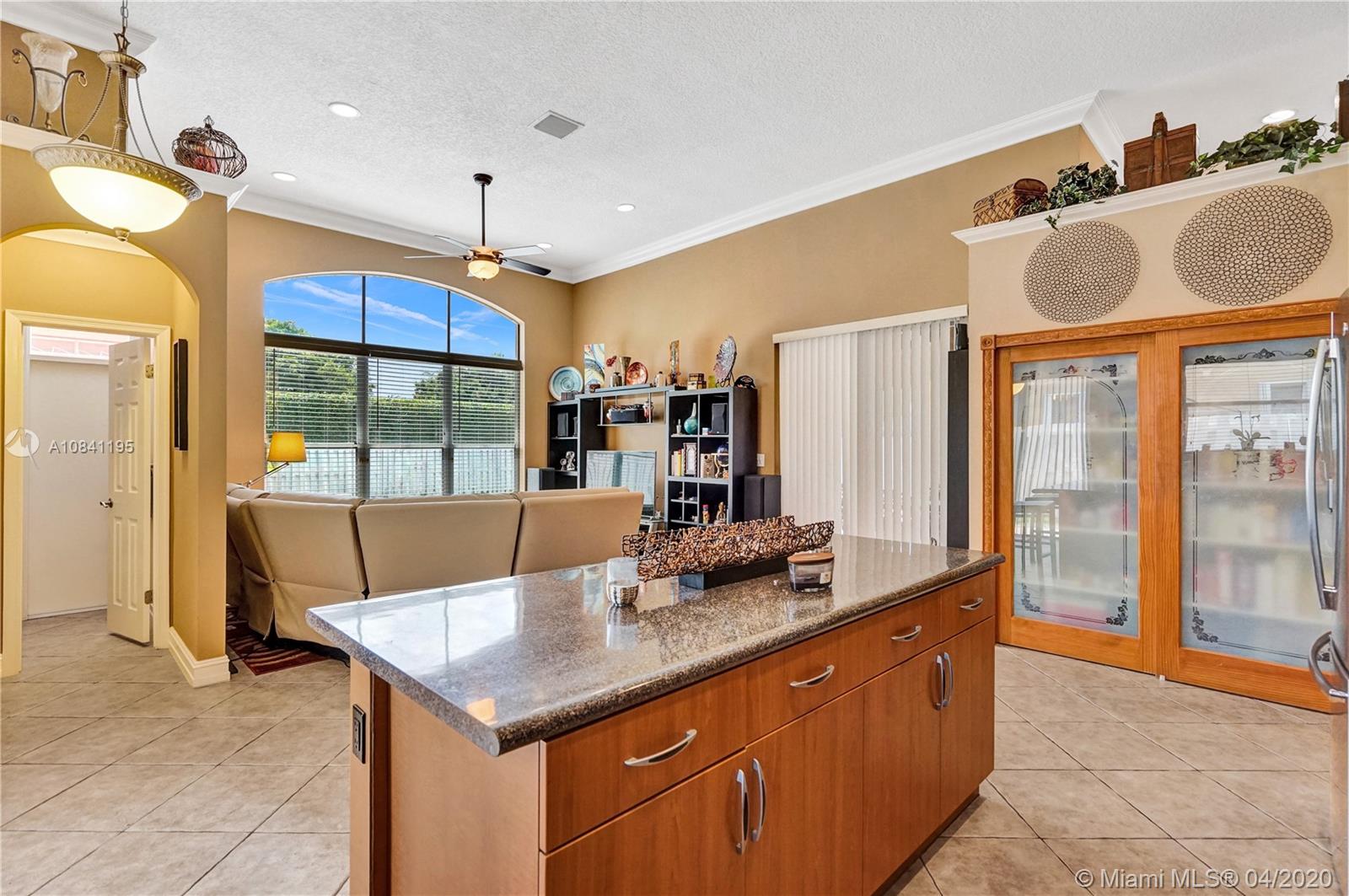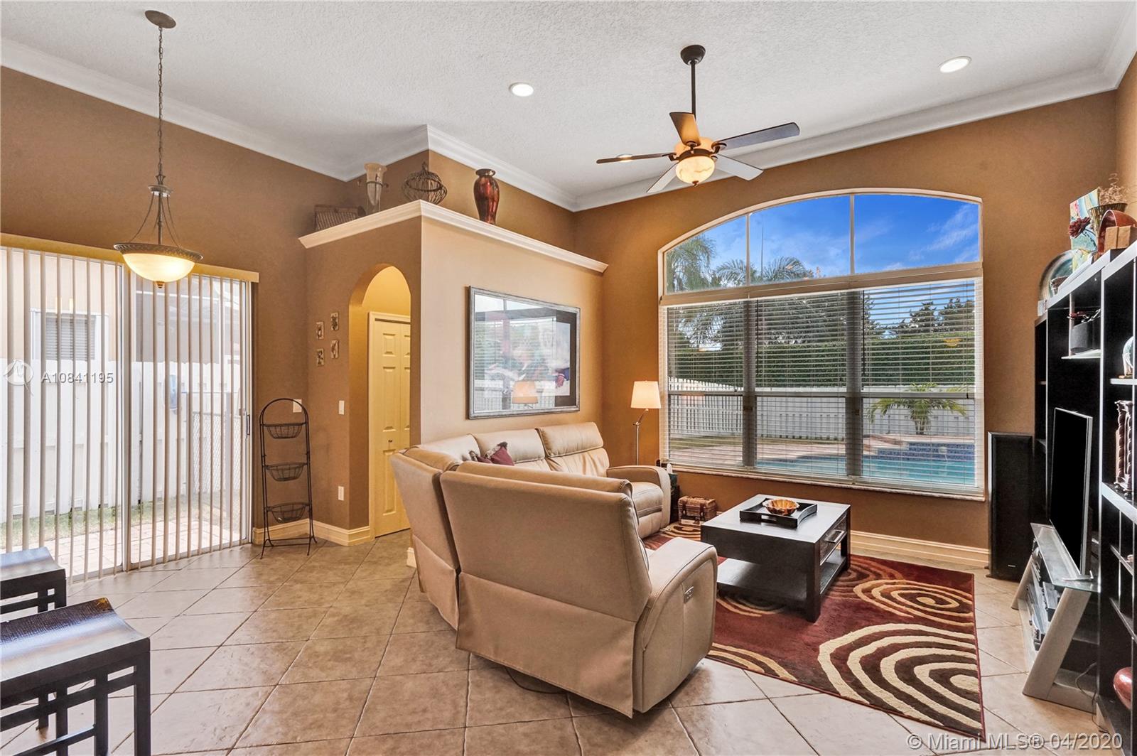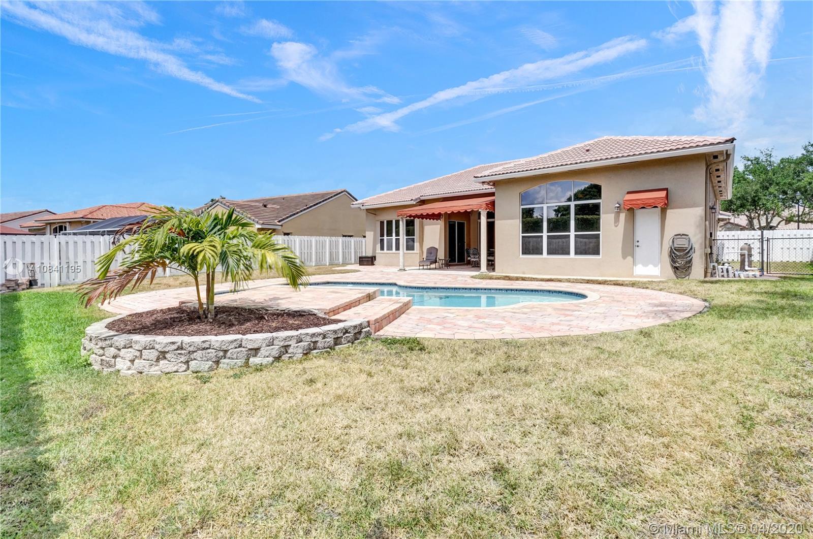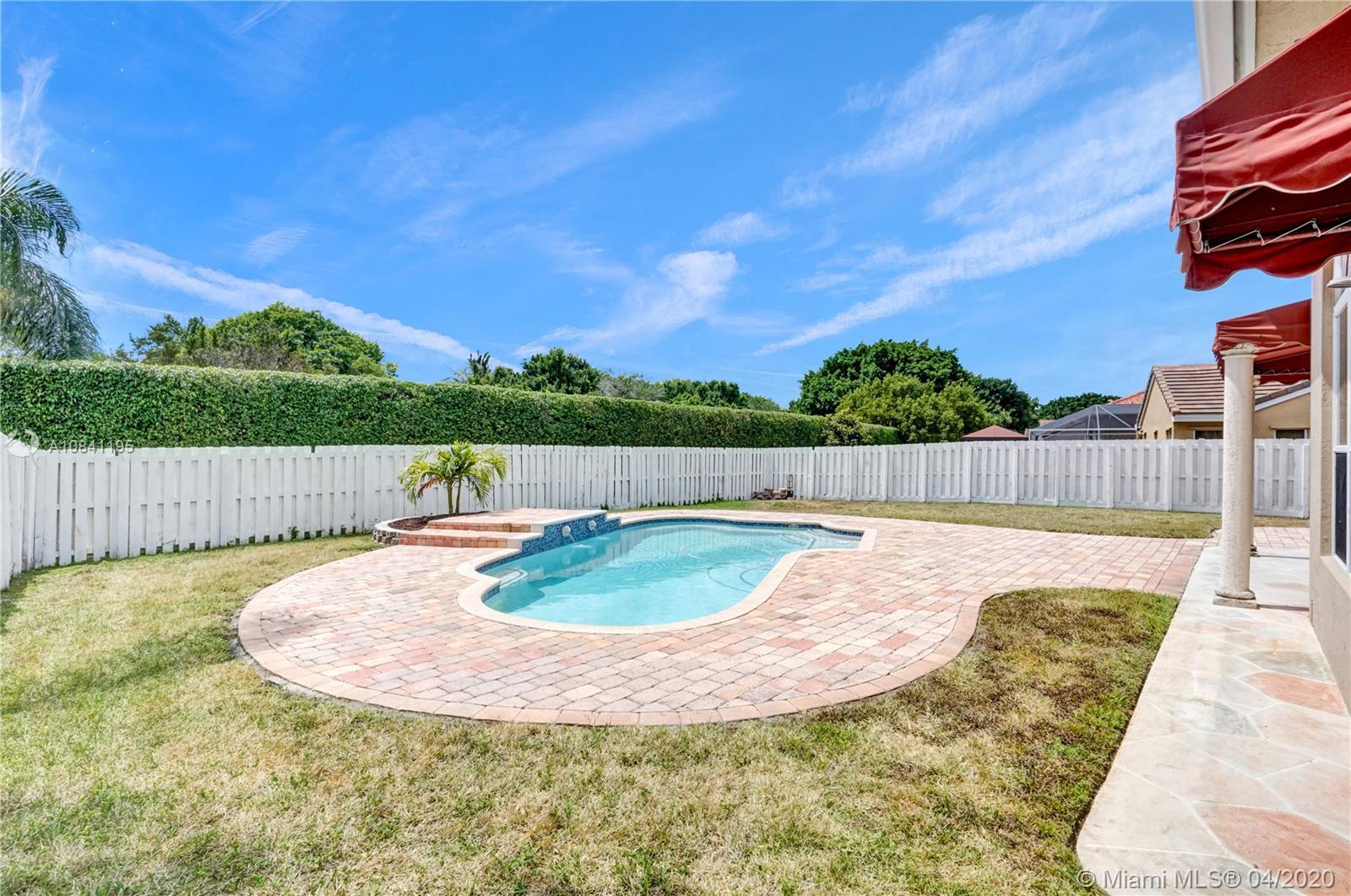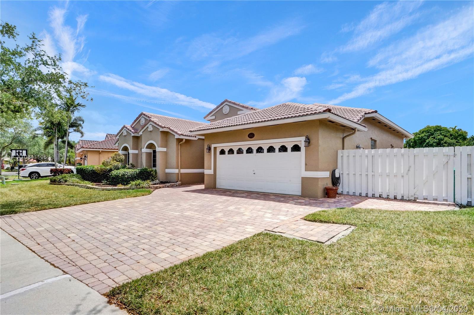 THIS IS A BEAUTIFUL AND SPACIOUS 4/2.5 LOCATED IN THE QUITE COMMUNITY OF HUNTINGTON BRISTOL ISLES, CLOSE TO HIGHWAYS AND POPULAR SHOPS. THE HOME HAS A SPLIT FLOOR PLAN WITH HIGH CEILINGS AND RECESSED LIGHT FIXTURES. THE KITCHEN FEATURES WOOD CABINETS WITH ISLAND AND STAINLESS STEEL APPLIANCES THAT OVERLOOKS THE FAMILY ROOM AND PATIO. THERE IS SEPARATE FORMAL DINING ROOM THAT ACCOMMODATES A LARGE FAMILY. SPACIOUS MASTER BATHROOM WITH ROMAN TUB. THE HOUSE SITS ON A LARGE 10,200 sq ft. LOT AND FEATURES A GORGEOUS SALT WATER TREATMENT POOL. THE PATIO HAS A CANVAS AWNING AND PAVER FLOORS. BEAUTIFUL PAVED DRIVEWAY WITH SPACIOUS 2 CAR GARAGE AND FOYER ENTRY. THE PROPERTY COMES WITH HURRICANE PANELS. THIS PROPERTY WONT LAST LONG!!!
