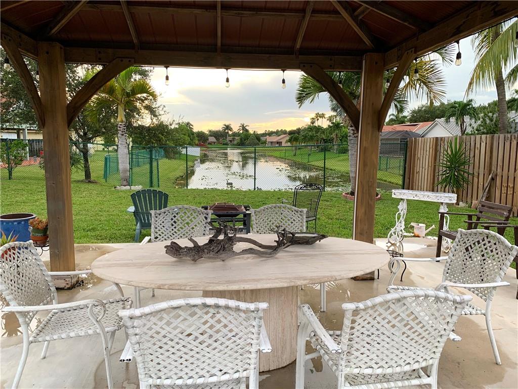 This home was made for outdoor entertaining with friends, family, or even when social distancing! This 4/2.5 home features updated kitchen, new a/c, new sprinkler pump, and updated bathrooms. The home is situated on a corner lot with a west facing waterfront view that is ideal for spectacular sunset views from the gazebo.