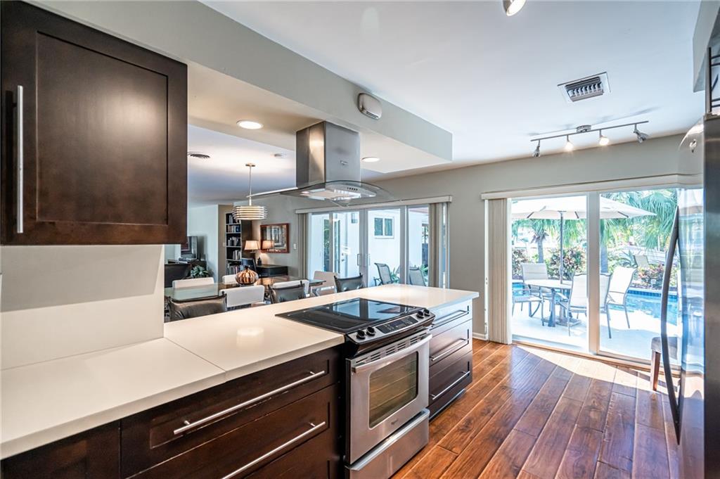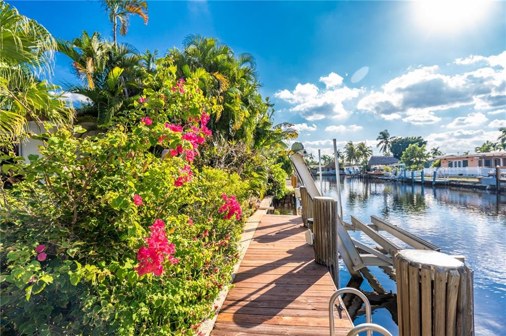 Come see this light & bright waterfront home (ocean access w/ 4 fixed bridges). Engineered Floors greet you to an open & spacious home. Impact windows & sliders open up to large pool deck & a heated swimming pool which is strategically landscaped to create privacy but still retains beautiful waterfront views The home also has a renovated kitchen w/quartz counters, SS appliances as well as renovated baths & large closets. The tile roof replaced in 2015, AC replaced in 2013, ductwork replaced & insulation added in 2019. The 45 ft dock features an 11,000 lb boat lift. The home also has a circular paved driveway & zeroscaped yard (no grass) for easy maintenance. Easy access to Pinecrest School, as well as Commercial Blvd, 62nd St & I-95. (all information believed accurate but not warranted)