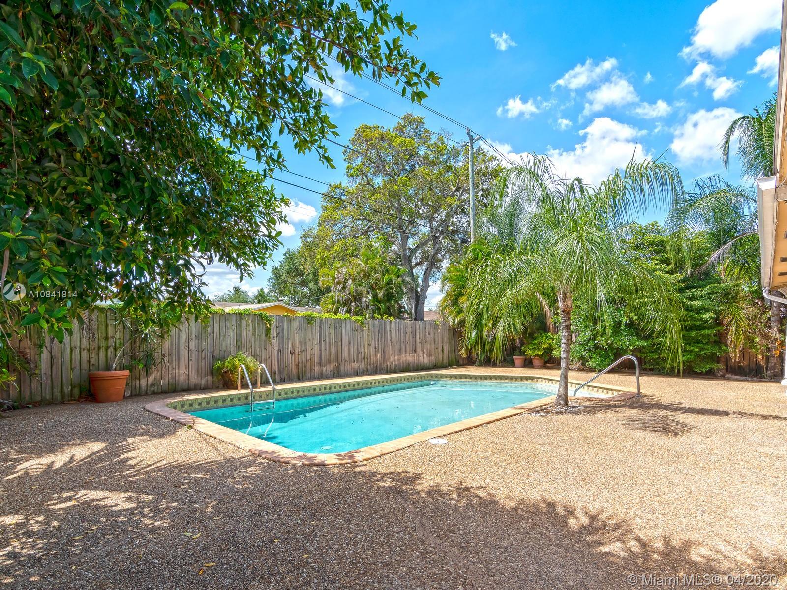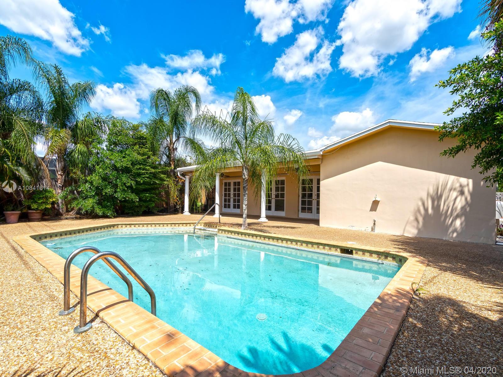Large & open floor plan with rooms so great one expects to see only in much larger homes. You will fall in love with this this charming 4 bedroom 2 bath home. Special features include hardwood floors throughout, updated kitchen with granite countertenors, stainless steel appliances & wood cabinets, newer bathrooms with modern mosaic tile patterns. Newly updated sprinkler system will ensure your lush tropical landscaping flourishes. Large pool and deck area ideal for entertaining. Stunning curb appeal by way of the charming columns & brick facade. Centrally located within the Hollywood Hills Subdivision (no HOA), walking distance to TY Park, less than a mile to I95, 7 min drive to the beach & 10 to FLL Airport. Corona ready and available for your private viewing, just call listing agent.