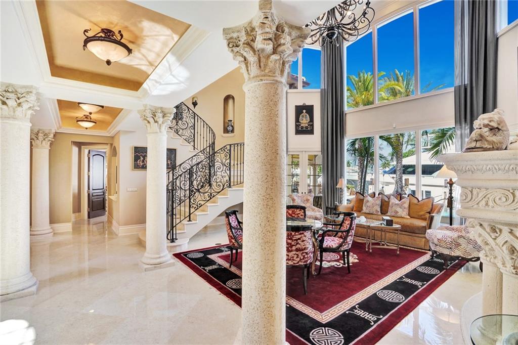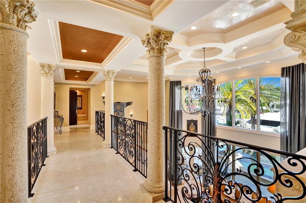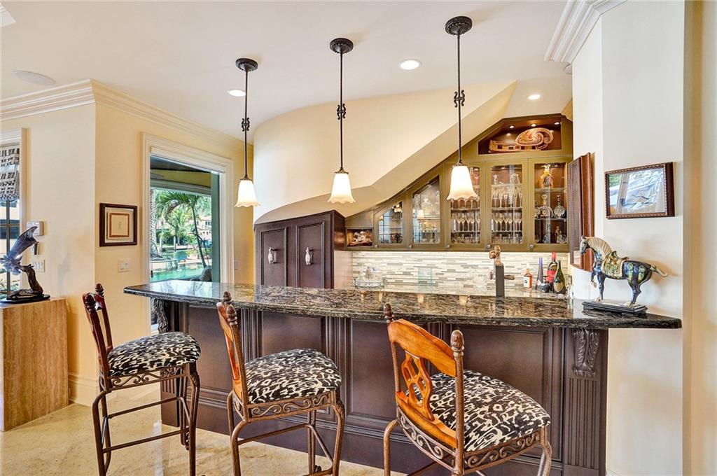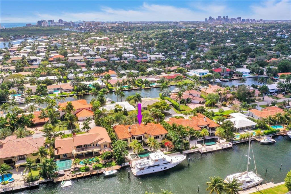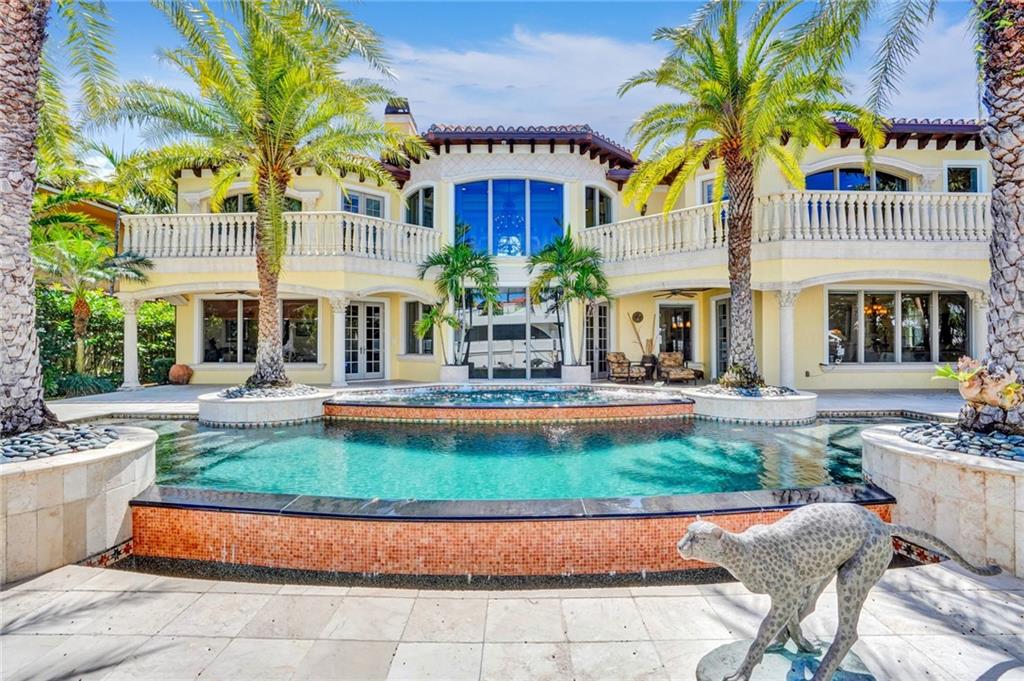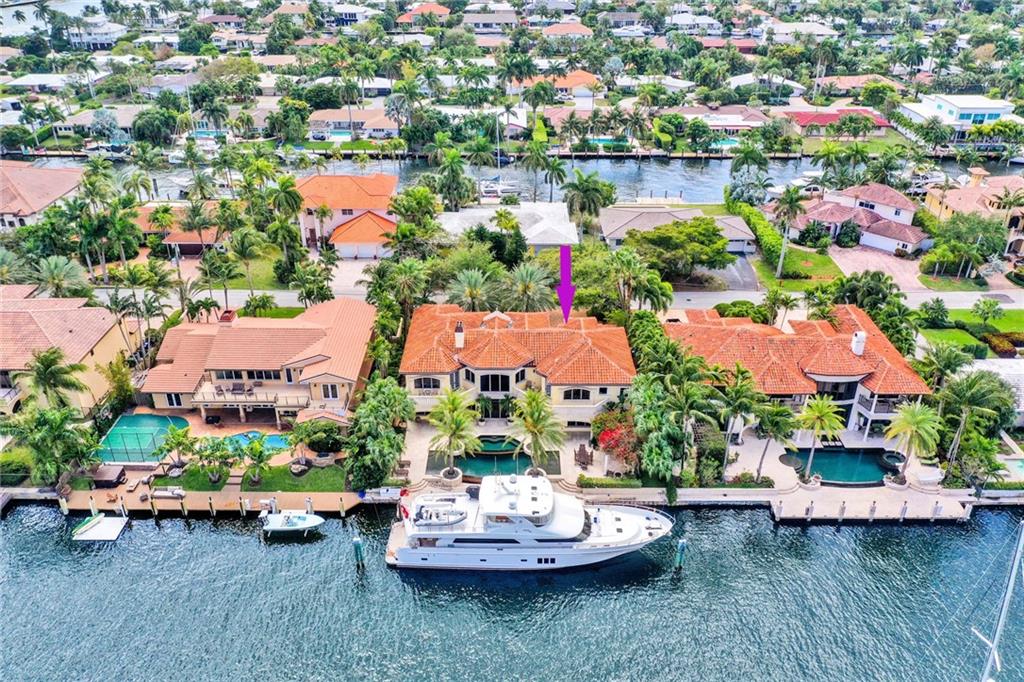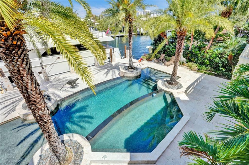 Unique custom home conveniently located on a quite street in one of Fort Lauderdale's finest waterfront communities: only minutes from beaches, Coral Ridge Country Club, Coral Ridge Yacht Club, excellent restaurants, shopping, schools, airports and Port Everglades. Craftmanship details and quality materials. 100’deep water dock, outdoor kitchen, waterfall pool, w/jacuzzi and featuring a chef’s kitchen with high end appliances, complemented by a 850 bottle wine cellar. Quiet, comfortable, perfect for entertaining, indoors and out. Elevator, large master with his and hers areas, morning bar, custom display shelving, electric shades, balcony, 2 large walk in closets, 1 w/updated dressing room. Open, airy, three car garage, and beautifully landscaped 12,004 sq.ft. lot, with circular drive.