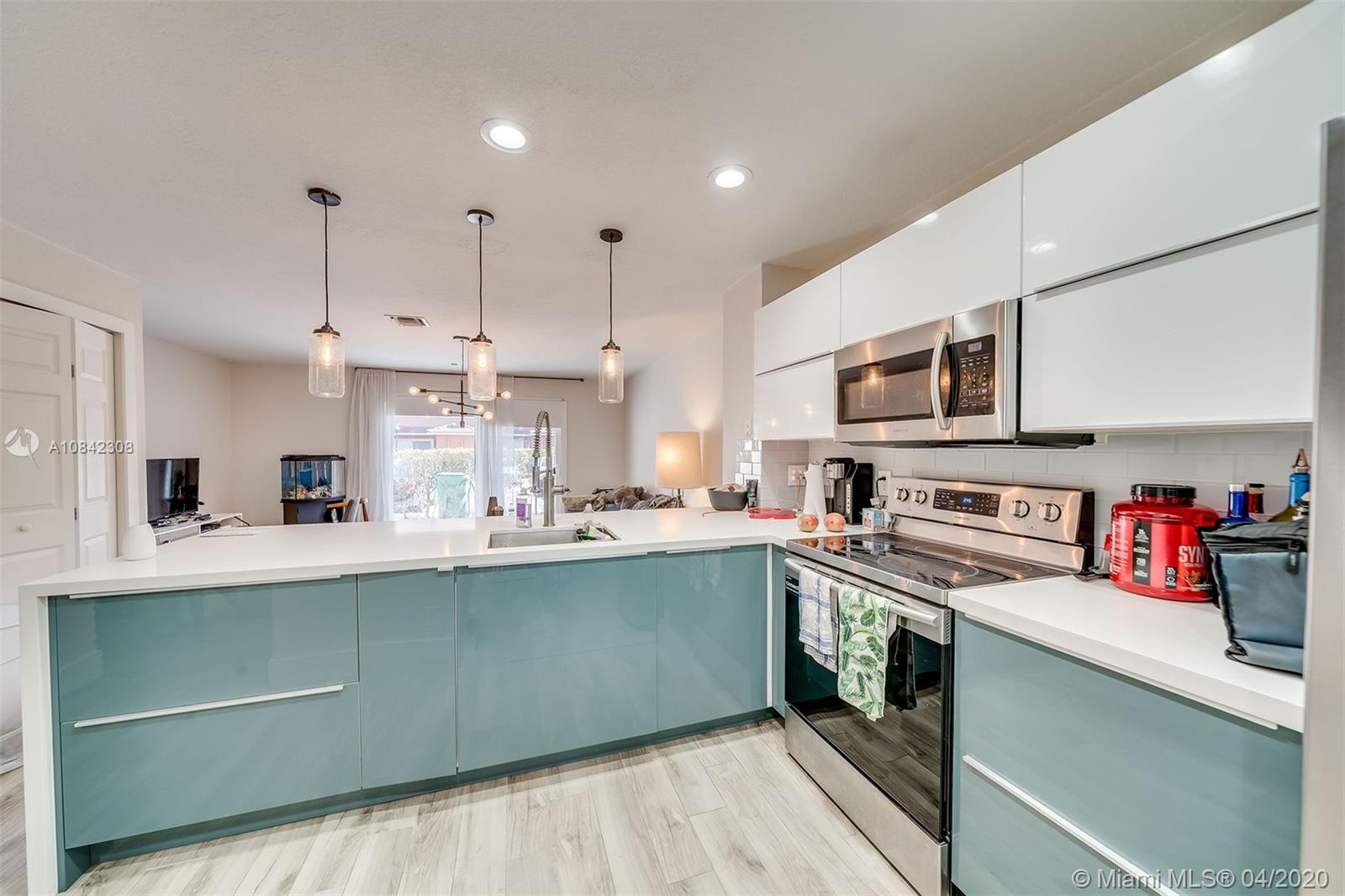 Stunning, completely remodeled 2/2.5 townhome in Mirabella! Gorgeous kitchen with quartz countertops, oversized cabinets, subway tile backsplash & stainless steel appliances. Open to the family & dining rooms great for entertaining. New plank style tile flooring. Bronze finish lighting fixtures & recessed lighting. Deep baseboards.Staircase with wood banister & wrought iron. Remodeled bathrooms feature floating vanities & frameless shower enclosure. Indoor laundry. Outdoor patio area. Community pool & playground. This property is out of a magazine. Insurance included in HOA fee. Impeccably renovated.