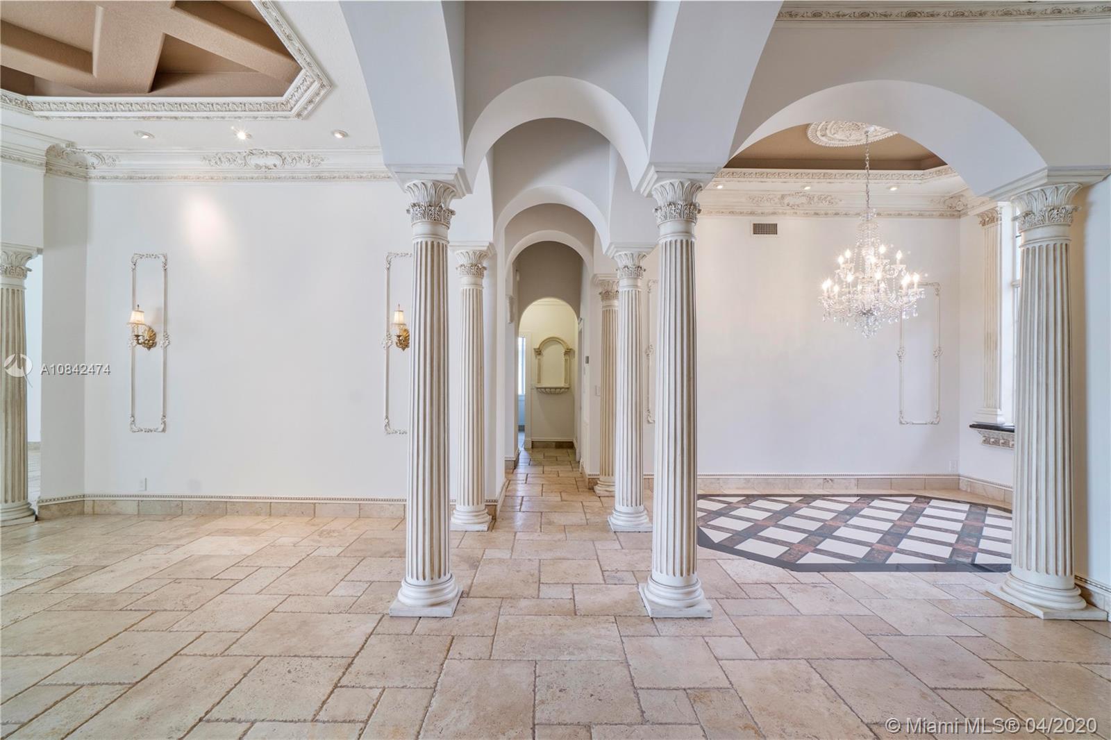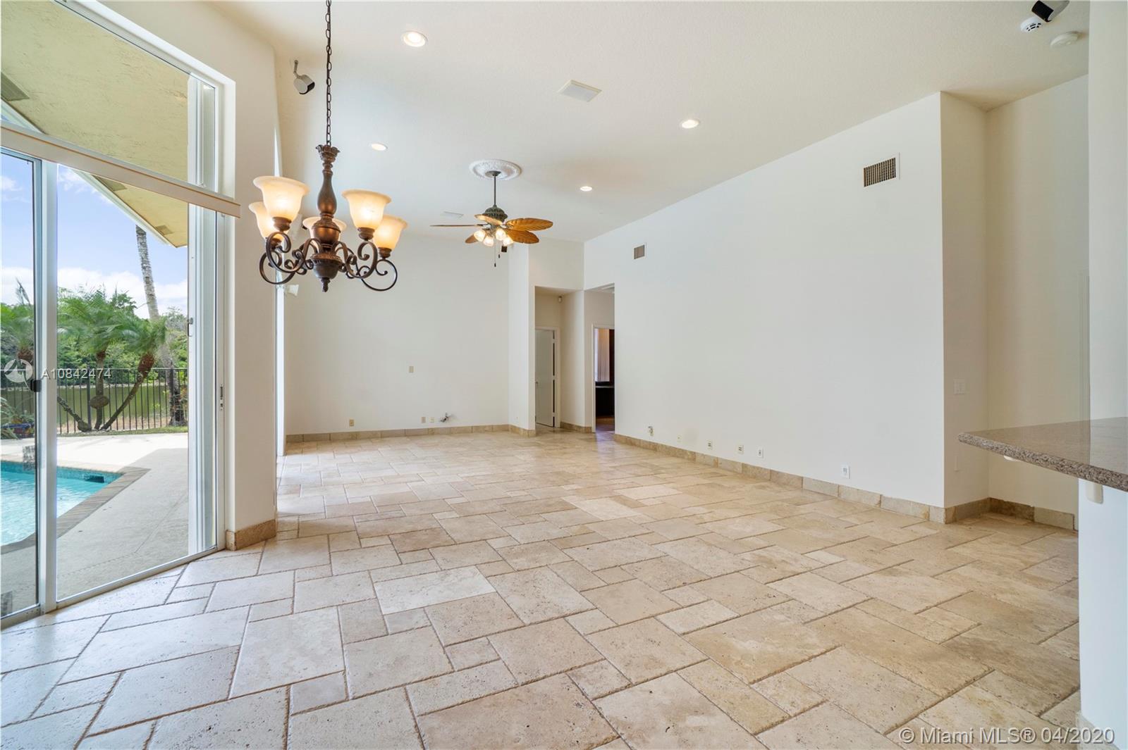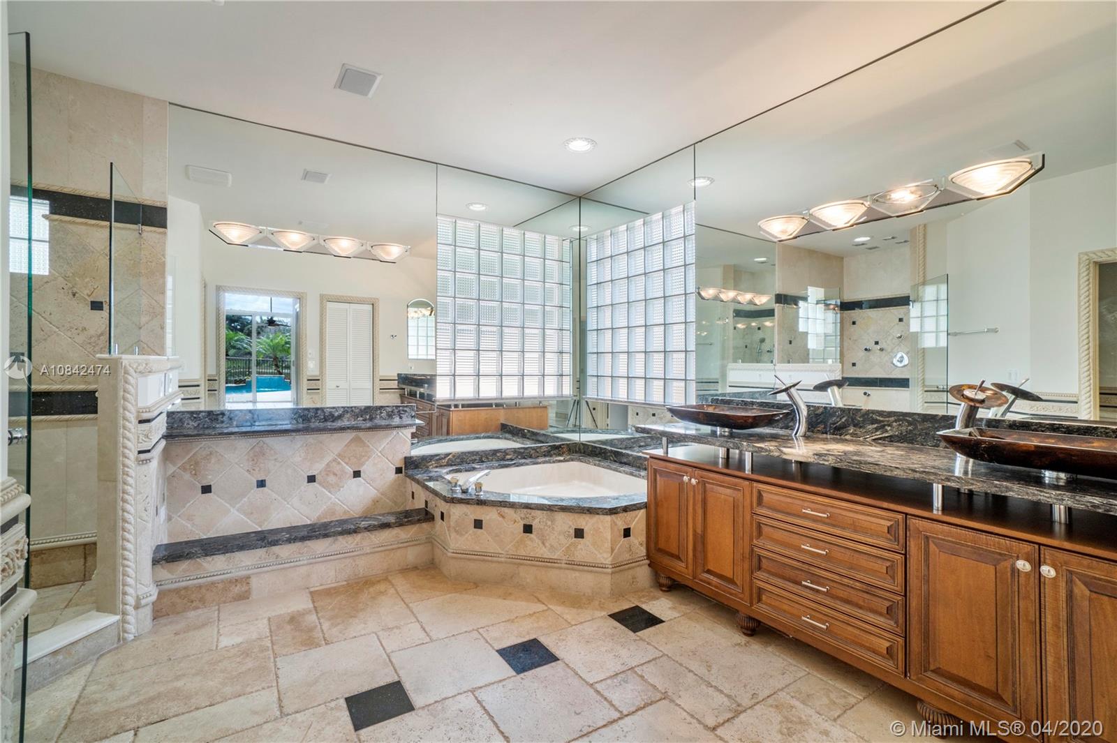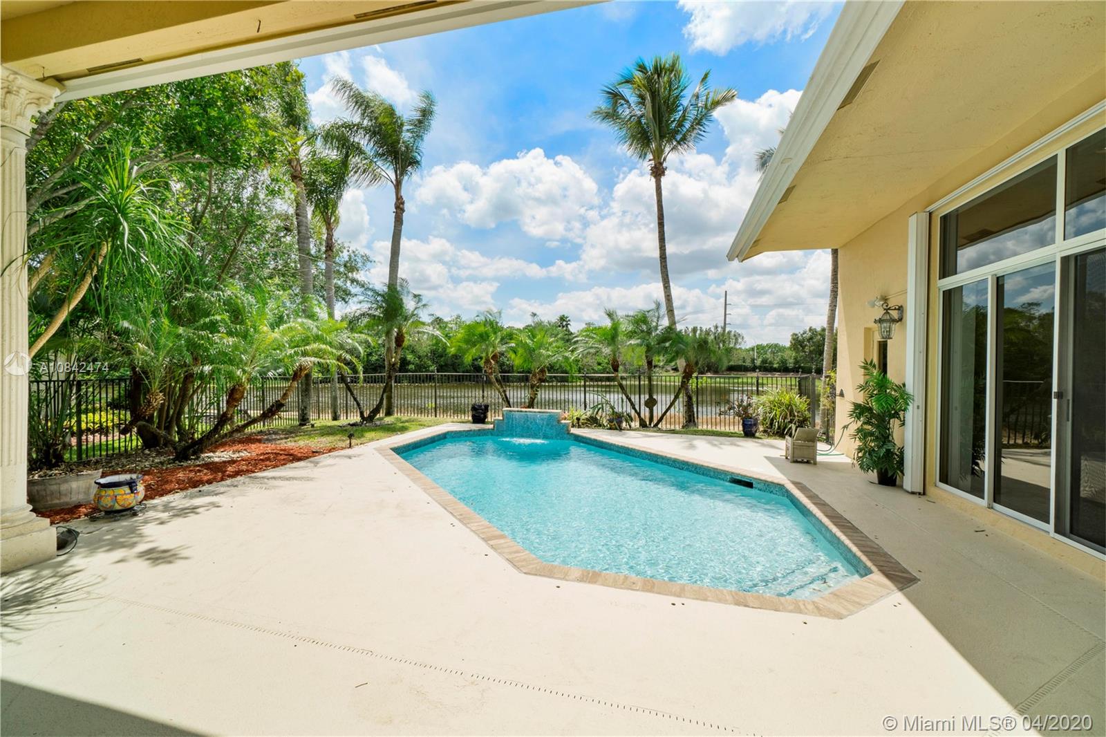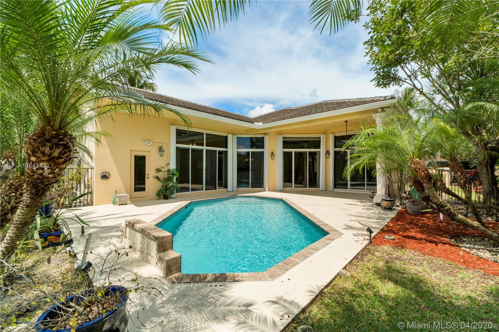 Magnificent designer's home in Weston Hills CC - featuring: dramatic foyer with beautiful marble medallion - 12 ft ceilings in living areas - travertine floors - formal columns leads down grand cathedral style hallway - breathtaking decorative crown moldi ngs - SS KitchenAid appliances - granite counter tops -Freshly Paint- Roof Replace in 2015 in master bed/bath - rainfall shower jets & duel decorator sinks in master bath - private backyard with spectacular wide water views - accordion shutters - 3D Virtual Tour Available please contact for more info