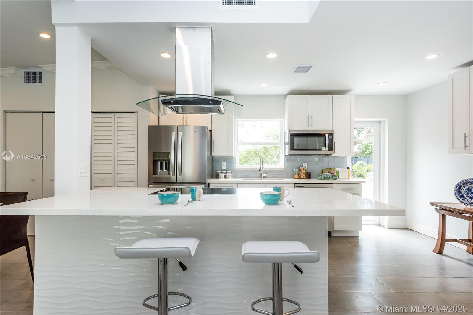 Welcome to High Pine Manor at Griffing Park Estates! One look at this 1,620 SF modern, 3 bedroom, 2 bath, renovated mid-century dream home, and you'll be ready to move in! Perfectly designed with open living, dining and 8 FT quartz countertop gourmet eat-in island kitchen, plus bonus-media room opening to large backyard with entertainment areas galore, room for a pool, plus a 350 SF paved patio! Totally updated: new roof, impact windows-doors, plumbing, electric, porcelain floors and laundry room. Escape to the spa-like master suite retreat while the other two bedrooms are privately located down a separate hall- one with French doors opening to the rear gardens! Located on a quiet tree-lined street with a spacious park in front! It's all ready for you live the high life at High Pine Manor!