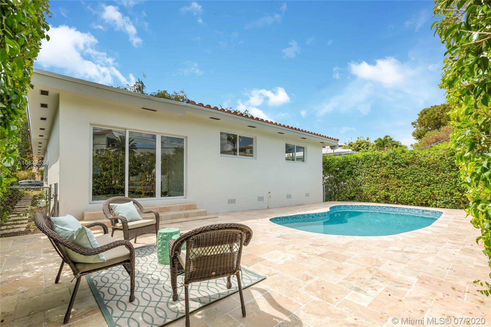 Million dollar listing in the heart of Coral Gables, minutes away from Miracle Mile. This beautiful and cozy house was meticulously re-designed by a local architect, combining sophistication and chic, and using the highest end modern finishes. With its hardwood floors, attractive open concept chef kitchen and endless dining and living areas, this home is perfect for entertaining family and friends. All new kitchen appliances and washer+dryer. Storm-ready with new impact windows and doors. Enjoy the perfect South Florida weather year-round out on your stunning pool deck, decorated with French pattern travertine pavers.