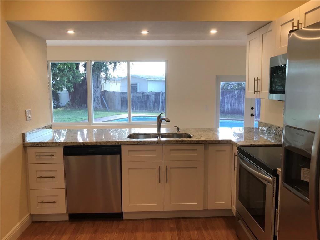 Totally Renovated and Remodeled Home in Miramar! Split plan 3 Beds - 2 Baths - 1 car garage with pool. All Renovations including addition done under Permit & up to code. Large family room, hurricane impacted new windows, doors & garage door. Updated kitchen with wood cabinets, Granite counter tops and Stainless-steel Appliances. Pool has been resurfaced with Diamond-Brite, new pool pump & equipment. Newly remodeled bathrooms, porcelain tiled throughout, wood cabinets & granite tops. Tile to ceiling in both Showers. New Ceiling Fans. New high-End waterproof laminated floors. Updated electrical system per code, new plumbing in bathroom & kitchen, freshly painted. Yard Large Enough to Park a Boat/Commercial Vehicle. CLOSING MUST BE DONE AT THE SELLER'S TITLE COMPANY (ALL PROPERTY TITLE)