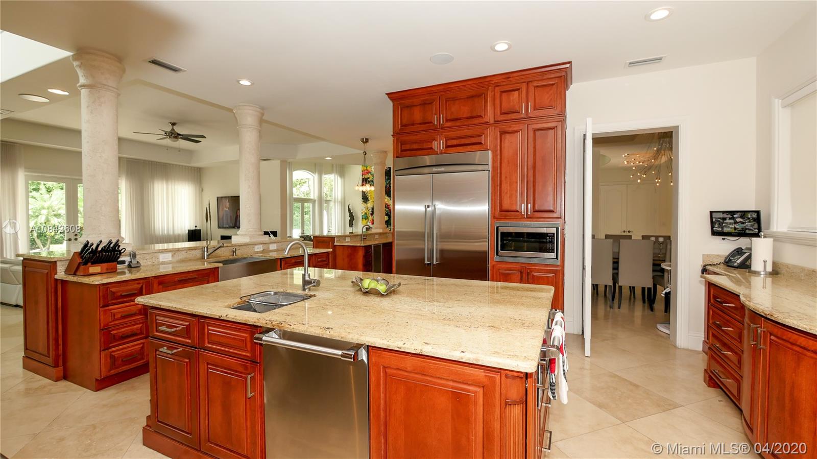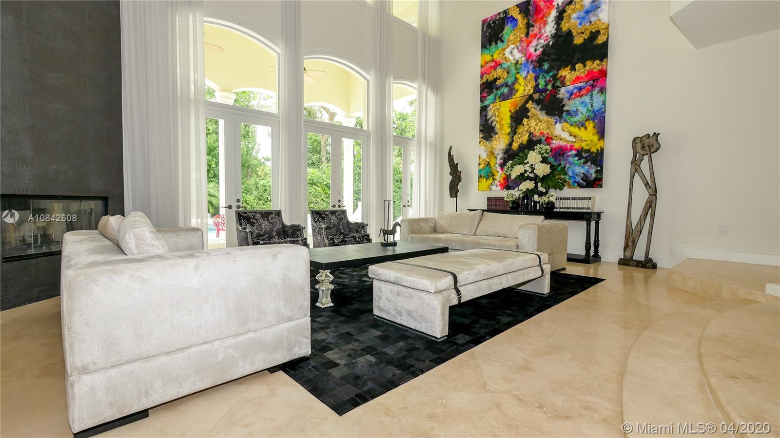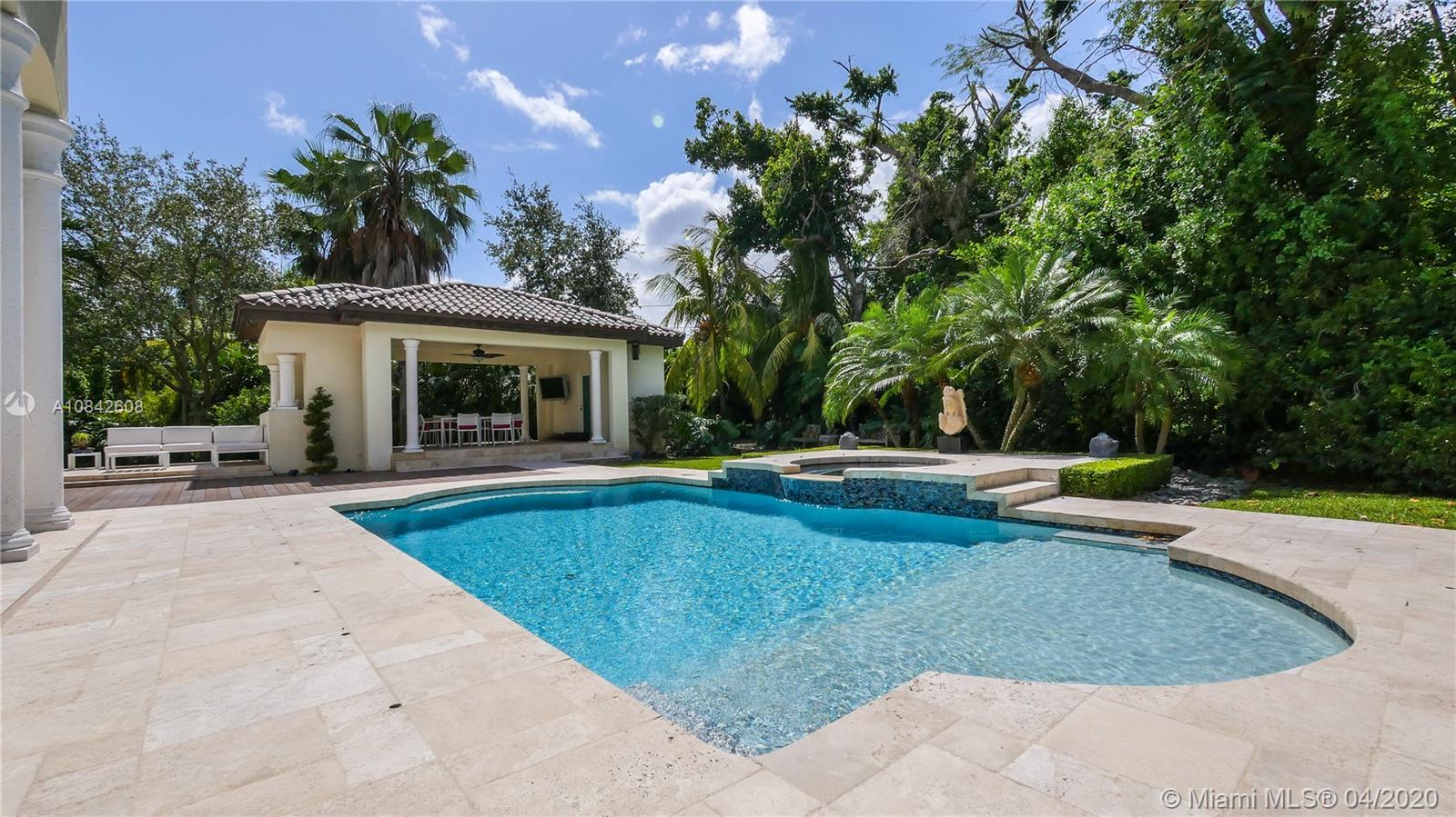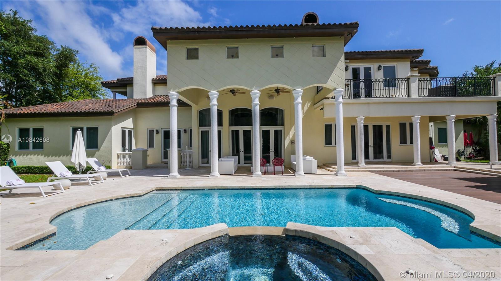 A Must See! Entertain family and friends in the spectacular corner builders acre estate residence in N. Pinecrest. Walk into stately foyer with 20ft ceilings and a half moon staircase. The 2 story Mediterranean design is accented by beautiful columns, floor to ceiling windows and travertine marble throughout. A whole house Audio and Lighting Lutron system and 16 camera security system. The first floor master bedroom with a private sitting room and wood burning chimney, an office/library/bedroom, plus a guest/maids room. The upstairs has 3 full bedrooms each with en suite bathrooms and a game/billiard room/theater room. Additional features include a private elevator, all impact windows a 70,000 kilowatts whole house generator, summer kitchen, heated spa and swimming pool.