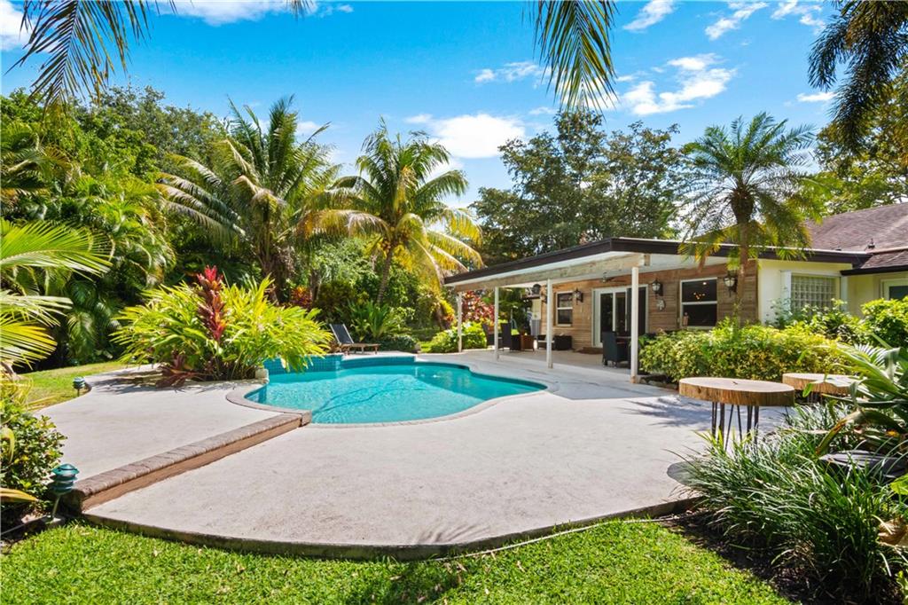 This beautifully updated 3 bedroom 2 bath home sits on almost an acre of land. Lush and mature landscaping provide uncomparable privacy and seclusion! Centrally located in the heart of Davie with excellent schools!! This home has been meticulously maintained and has a new salt water pool system, attic fan, ac fan, sprinkler system, LED lighting throughout, and new Ring system! Over 20 custom built IMPACT WINDOWS and sliding glass doors throughout provide hassle free safety during any hurricane season! No HOA means lower monthly payments and no restrictions. Bring your RV, boat, and toys! Located at the end of a quiet cul de sac, this property is what South Florida living was meant to be!! Come experience your very own Private Garden Oasis!!