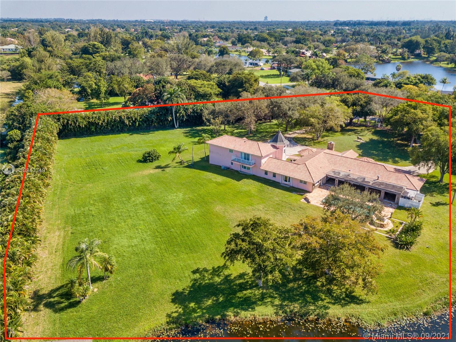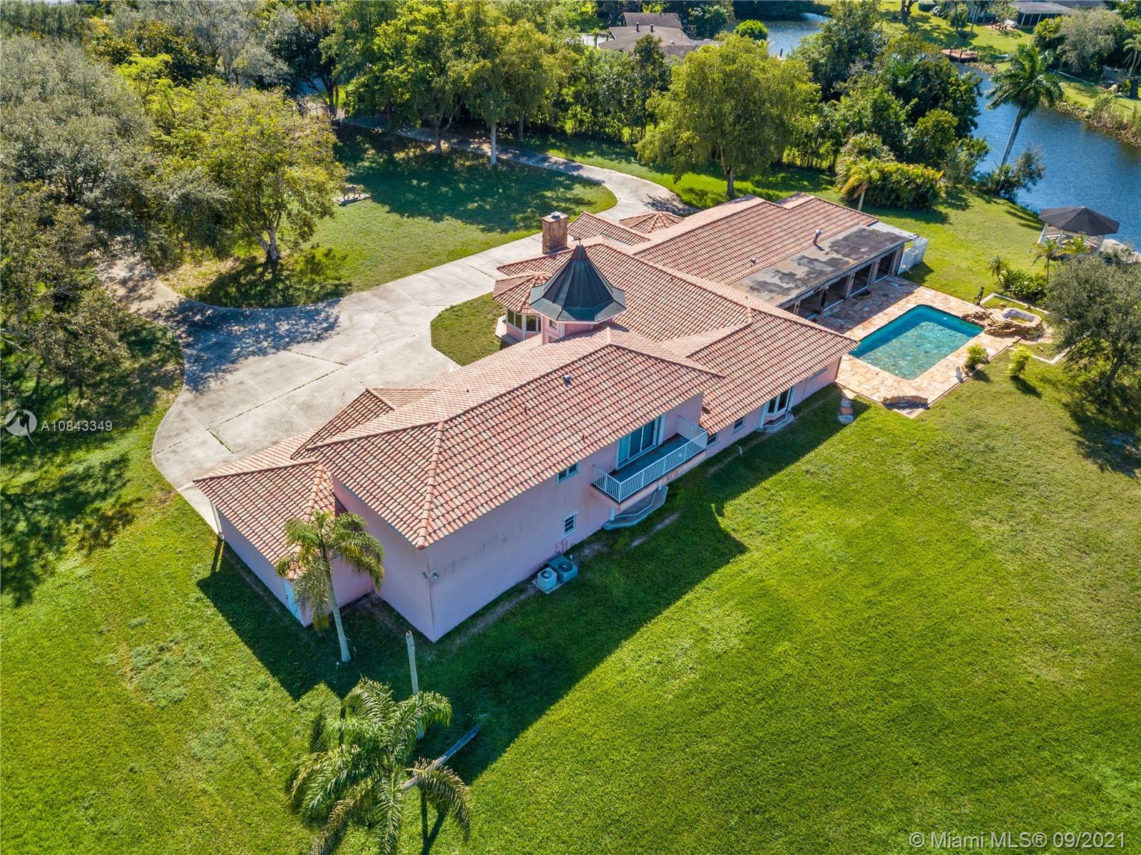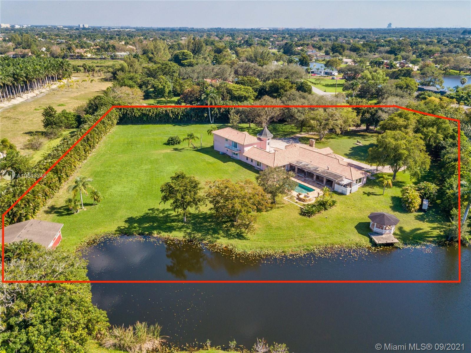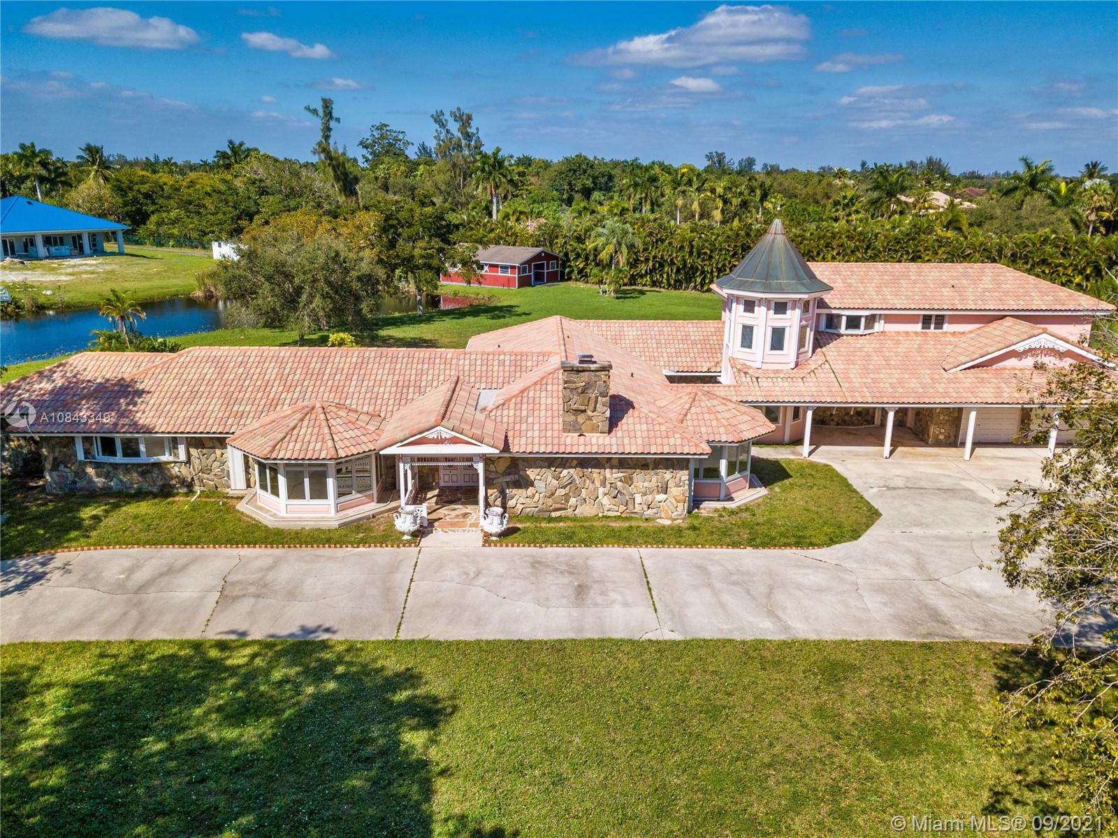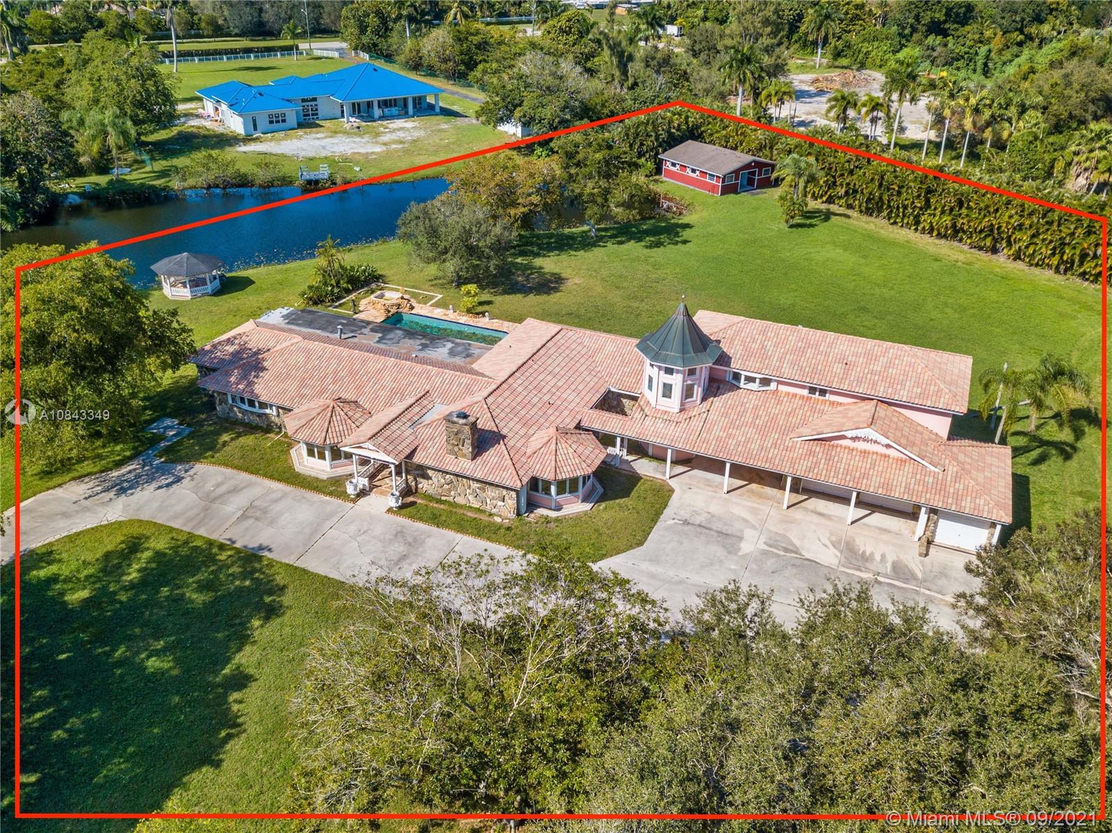 *Owner Financing w/ 30 to 50% down, call for details* Sprawling Lakefront Estate with over 3 acres, Potential for an additional building to make an extended family compound. Electric Iron Gates with 2 entrances, fully fenced lot. Main House is 1 level, 5 beds, 3.5 baths, large master suite w/sitting room/walk in closet, family, living, dining, bonus room with authentic 1900s French Bar. Guest House is 2 bedrooms /1 bath, huge upstairs open area with kitchen. It has a large A/C storage/wine room! Attached 3 car garage, one of which is extra deep and oversized, plus two covered carports, and 4 stall barn. Great View of the Lake with a dock and Gazebo. 60 KW Diesel Generator. Estate Sale! Home is vacant and easy to show.