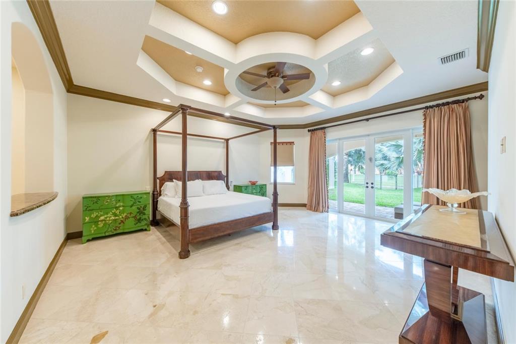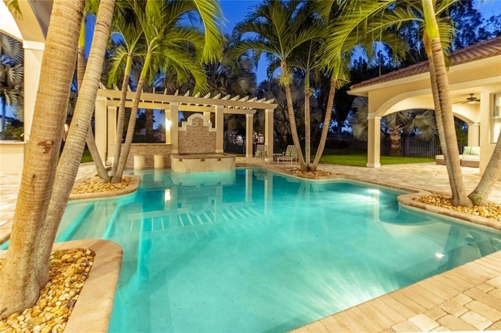 An exceptional, one of a kind CUSTOM home is offered in Northstar Estates, a PRIVATE and GATED boutique community. This home sits on a BUILDER'S ACRE, and boasts a magnificent, peaceful FENCED backyard with LAKE VIEWS, summer kitchen, pool with waterfalls/hot tub, and lush landscaping. Interior features include, marble throughout main living area, guest suite, game room, office, theater room, large master bedroom, en-suite secondary bedrooms, bar with wine cellar, 20' ceiling in family room, private gated motor court and so much more. The open kitchen will surely please any discerning chef, with its top of the line appliances, custom cabinetry, gas stove, and large island. Conveniently located near major highways for an easy commute to Miami, Ft-Lauderdale airport and sport arenas.