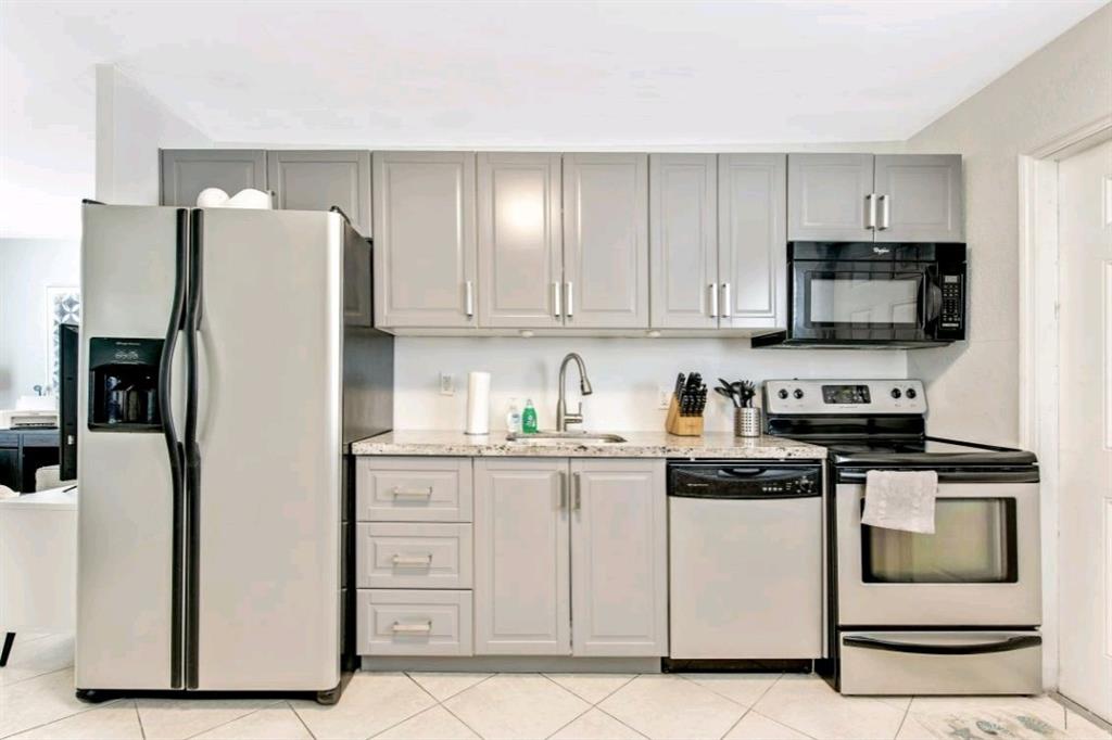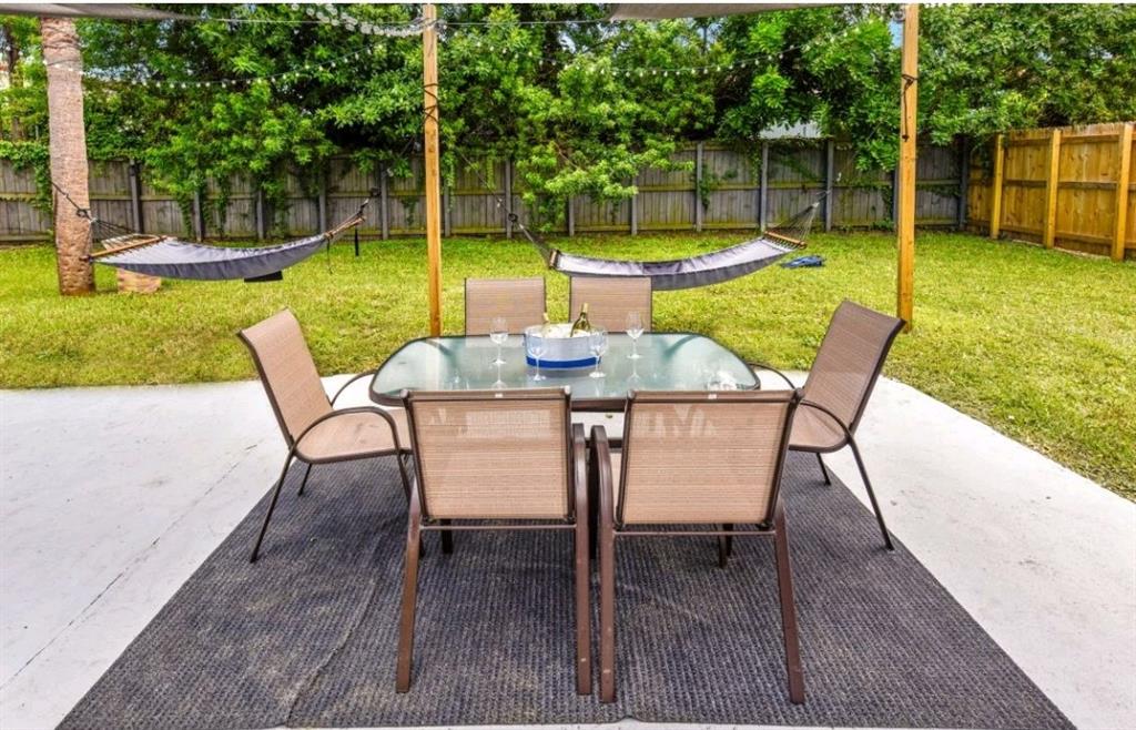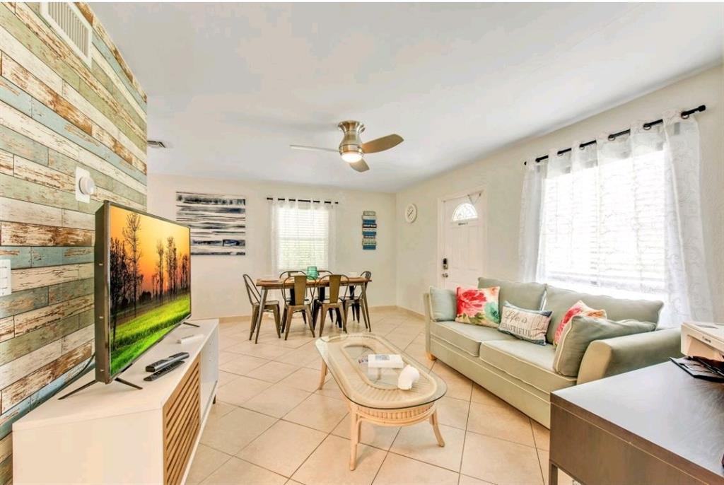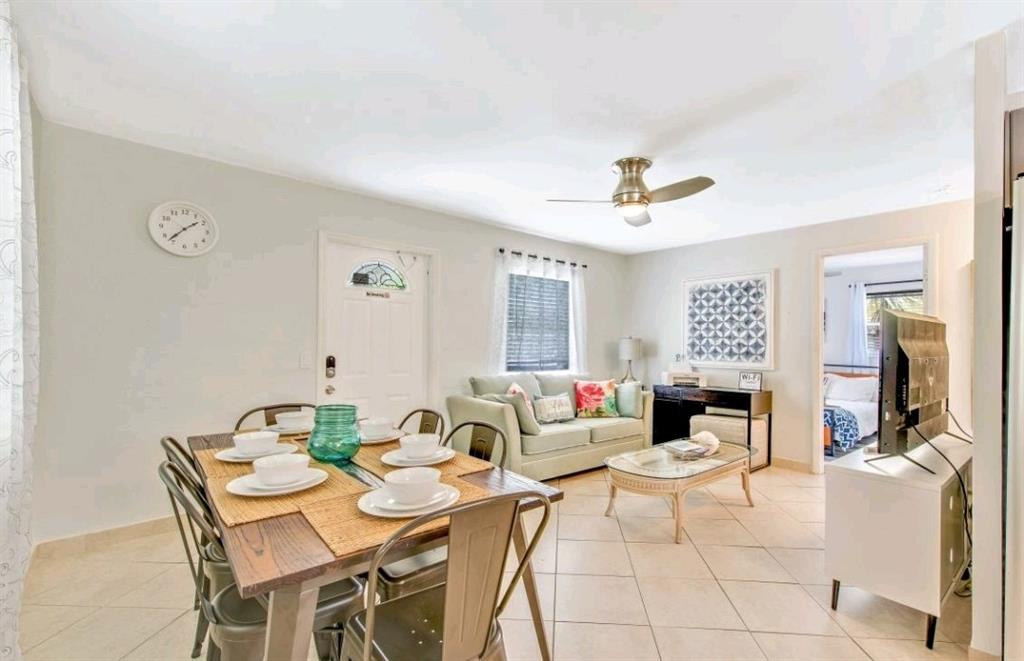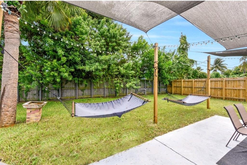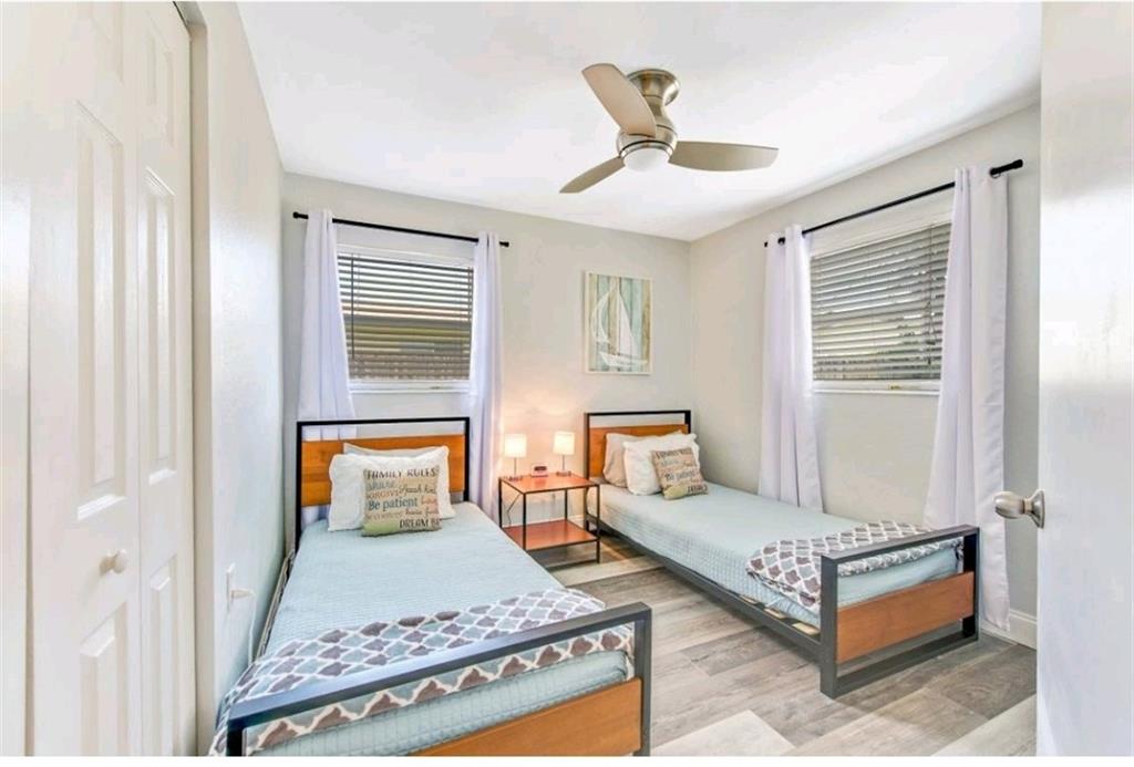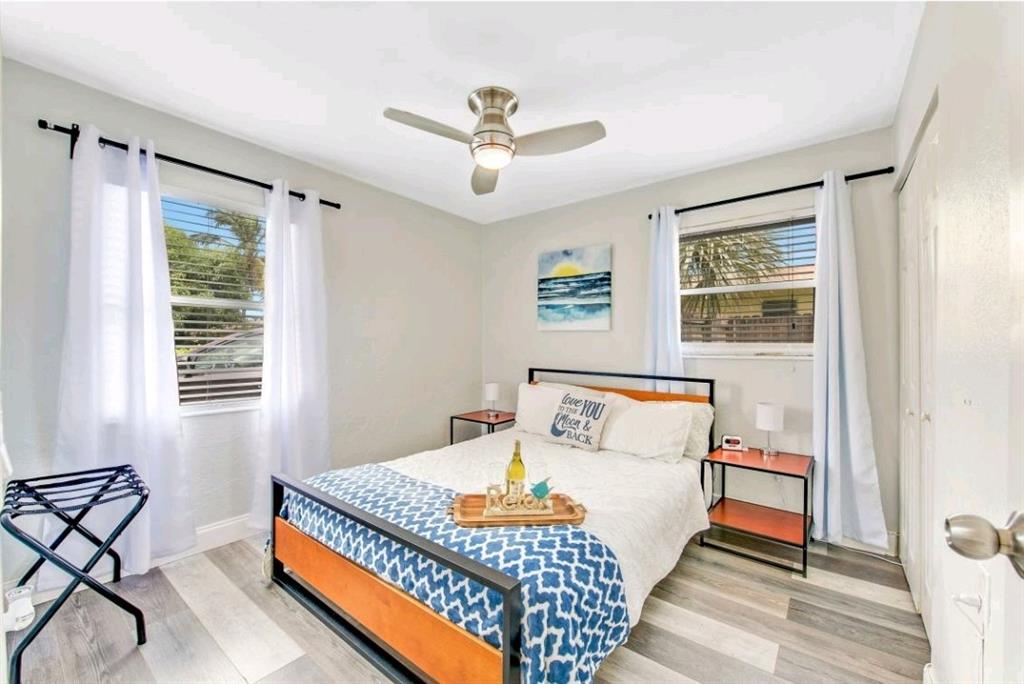 This is a very FLEXIBLE home with an open concept floor plan. In addition to the 2 bedrooms, there is a separate room with its own private entrance that can be used as a 3rd bedroom or an office. The home was updated in 2018 with a new roof (2017), a new modern and open kitchen and new laminated flooring in the bedrooms. The back yard is fully fenced and private, providing a great space for families, pets, and entertainment; even room for a pool if desired. The lot is a double lot and it has been separated and it is currently being rented for boat storage (extra $$$).