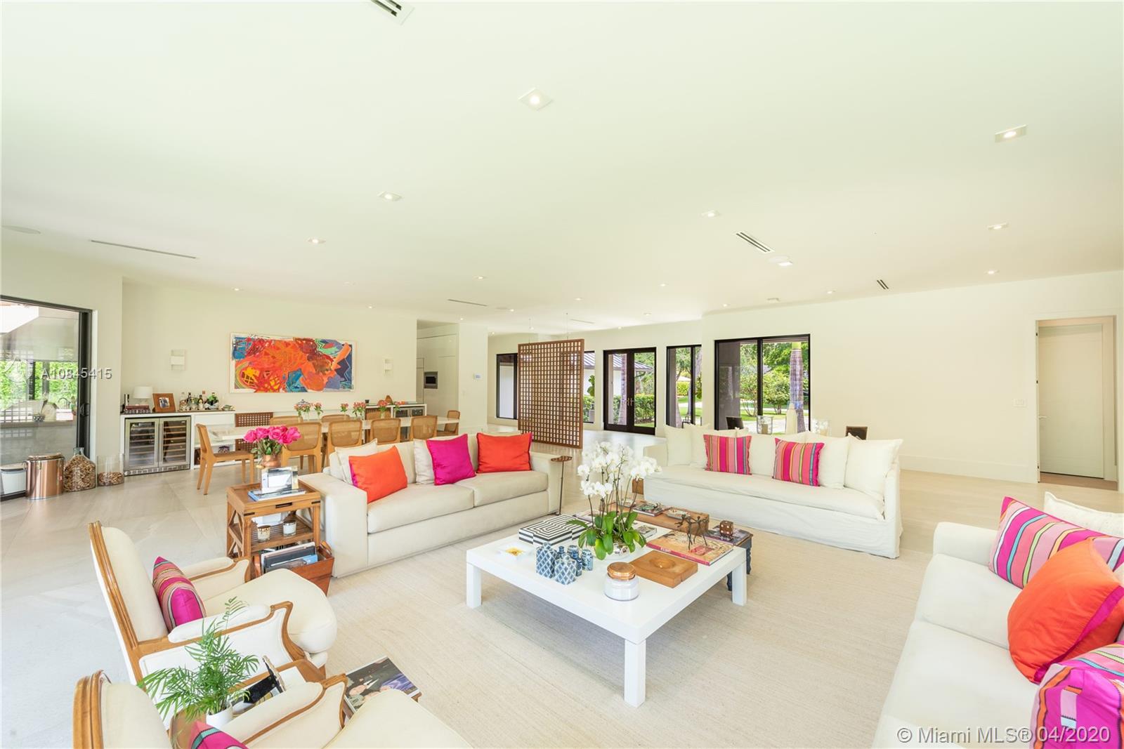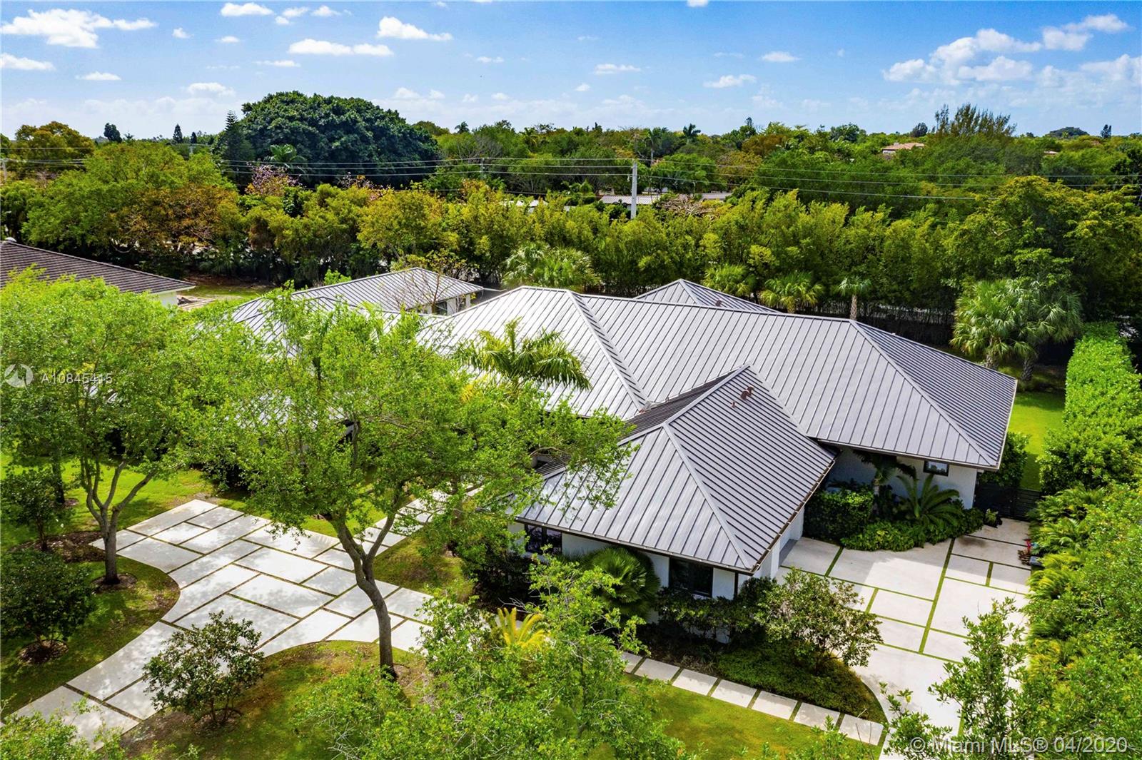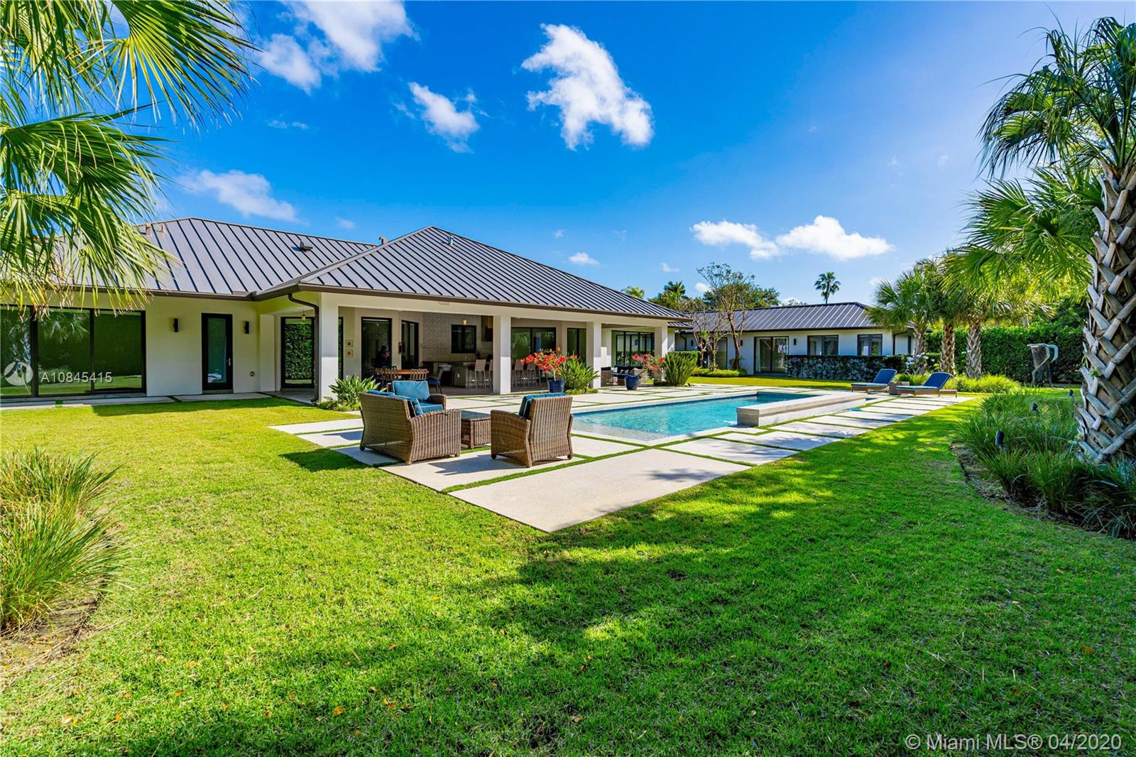 Impeccable 1-story modern redeveloped home with 7,736 total sf on 33,380 sf lot at Gables cluster in Pinecrest area. Close to best schools, parks, amenities, & shops. Beautifully appointed and designed, with open layout filled with natural light, that will last & stand time gracefully. Imp windows/drs, custom built-in closets and storage, LED, Sonos, 2 car garage & outside pking, new metal roof & more. Open galleries bring you to 6 BR & 6+1BA, overlooking the gorgeous & spacious outdr gourmet kit and pool; an oversized island, grill, cooktop, icemaker, fridges & dishwasher. F&F can enjoy Miami’s outdr living, while benefiting from this home's privacys design. For now, perfect for home staying and social distancing, while working & studying from home office. Security patrol.