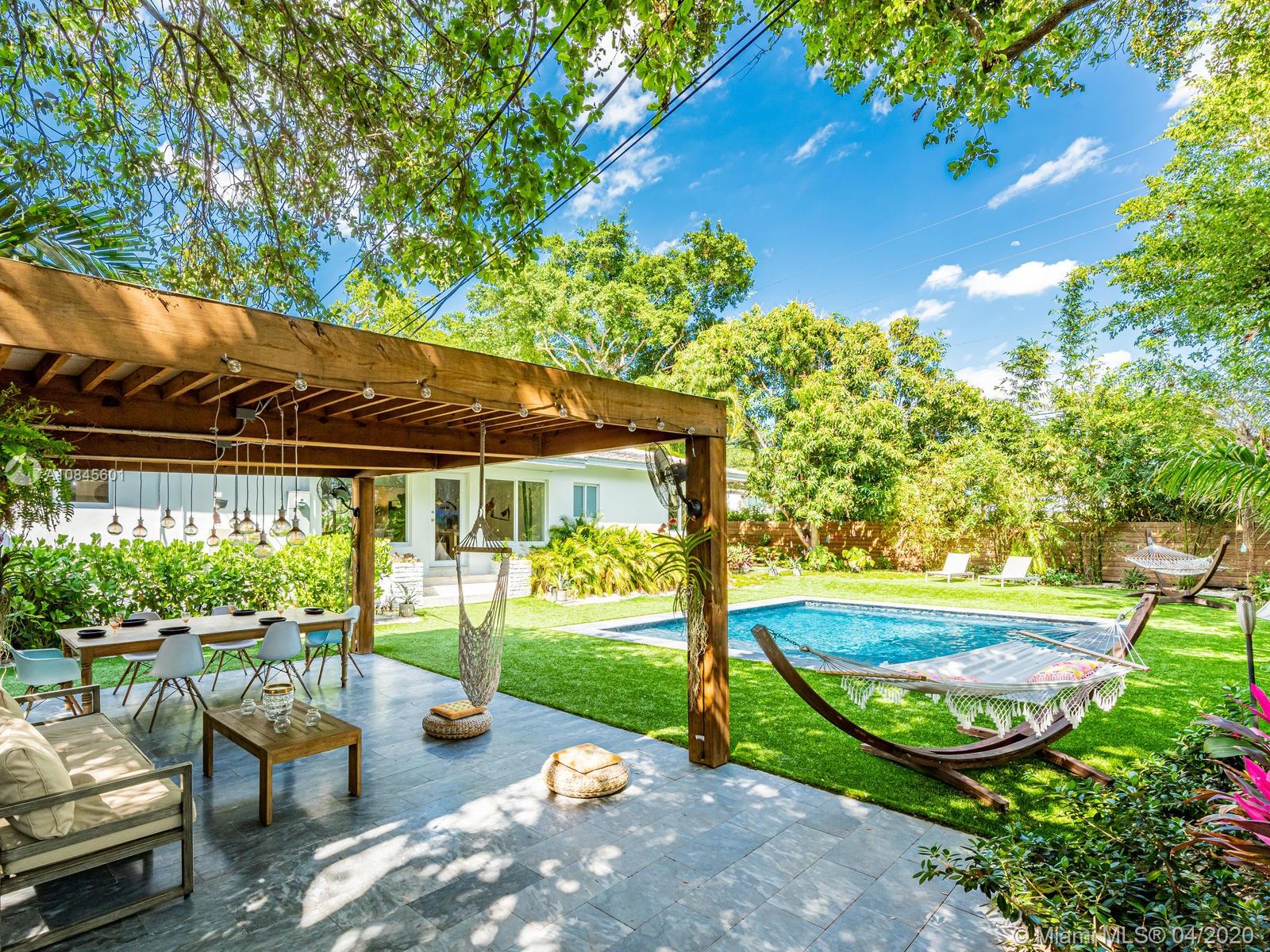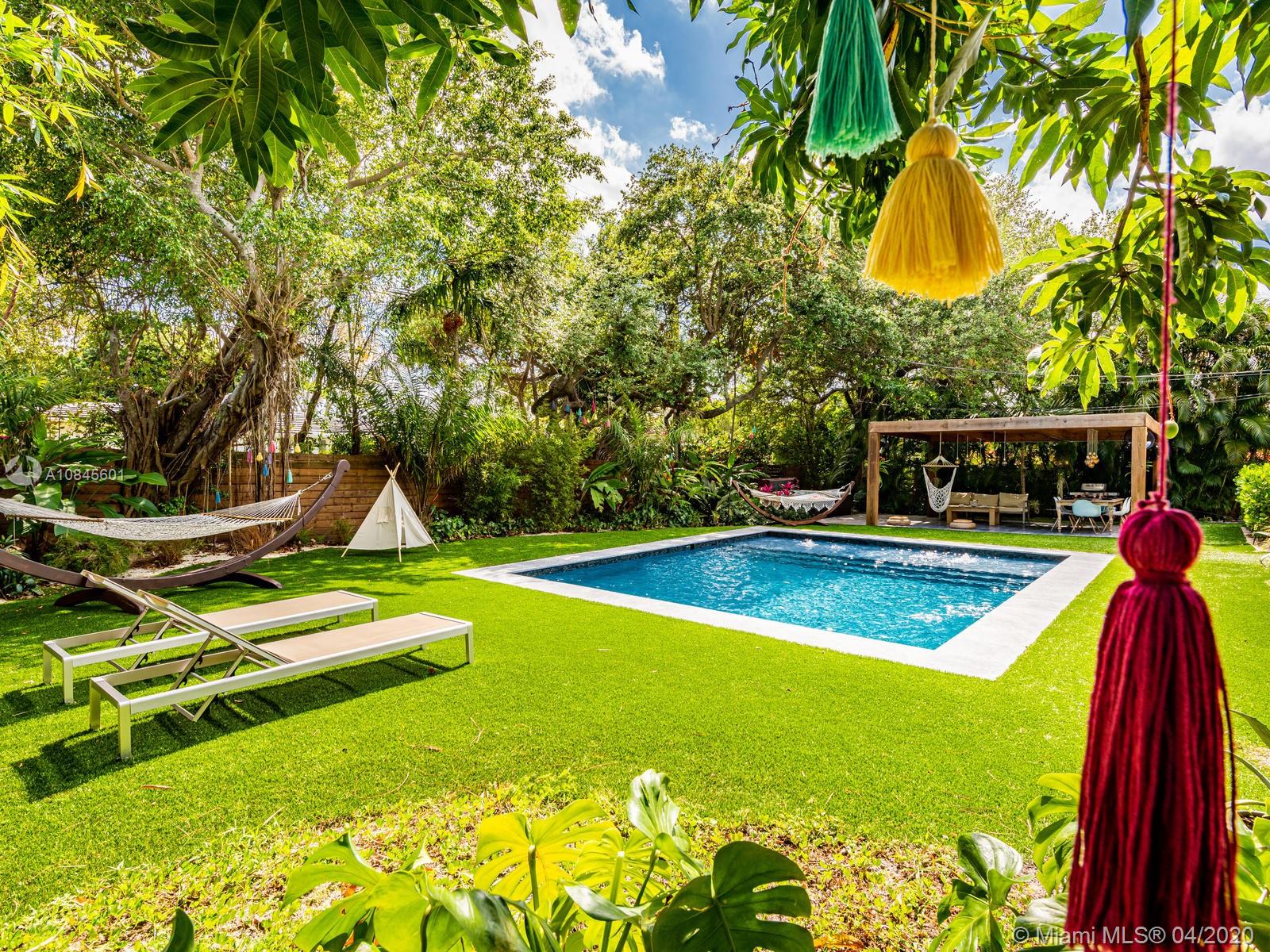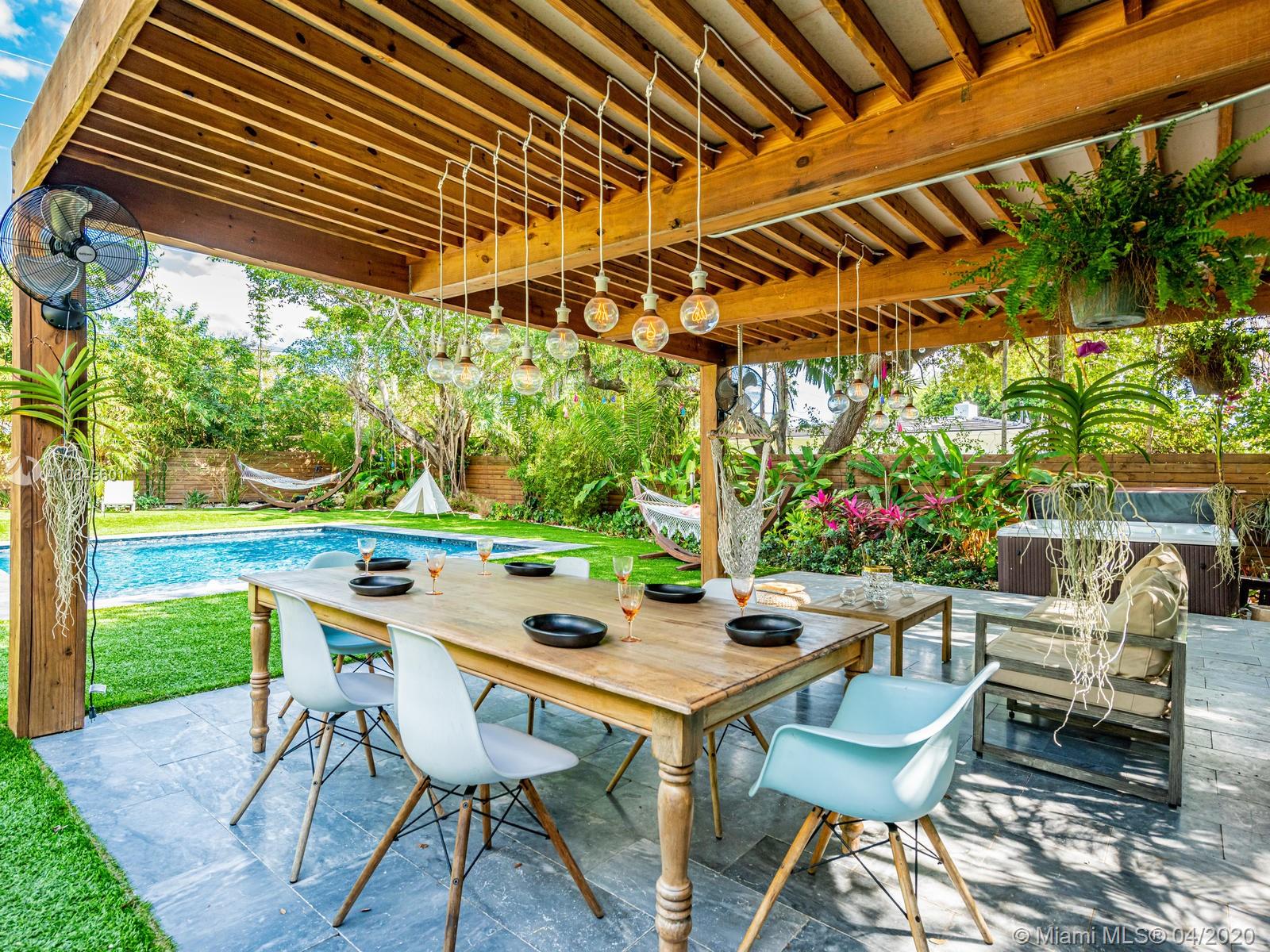 Welcome to Paradise Palms! Luxe updated mid-century corner lot open flow home with spectacular glistening salt water pool, perfect pergola, and sensuous spa, all under majestic 100-year-old mature oak trees. Discover paradise in this secluded lush private tropical retreat, with warm, sophisticated living, dining and custom colossal gourmet eat-in kitchen. Totally re-designed for the ultimate indoor-outdoor enjoyment, plus private split bedroom plan, including spa-like master suite retreat and many updates: roof, impact windows-doors, German ash planked floors, designer closets, AC, septic, sprinklers, 24 FT X 20 FT custom pool with leisure beach, joyous jacuzzi, lush landscaping, lighting and horizontal double-clad wood fence. Once you come discover paradise, you may never want to leave!