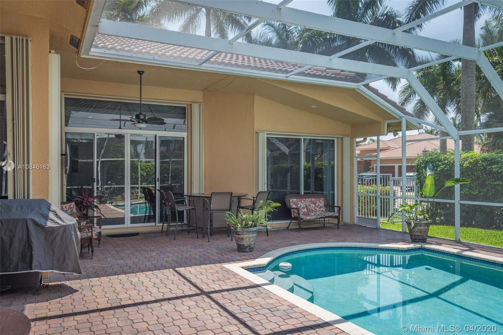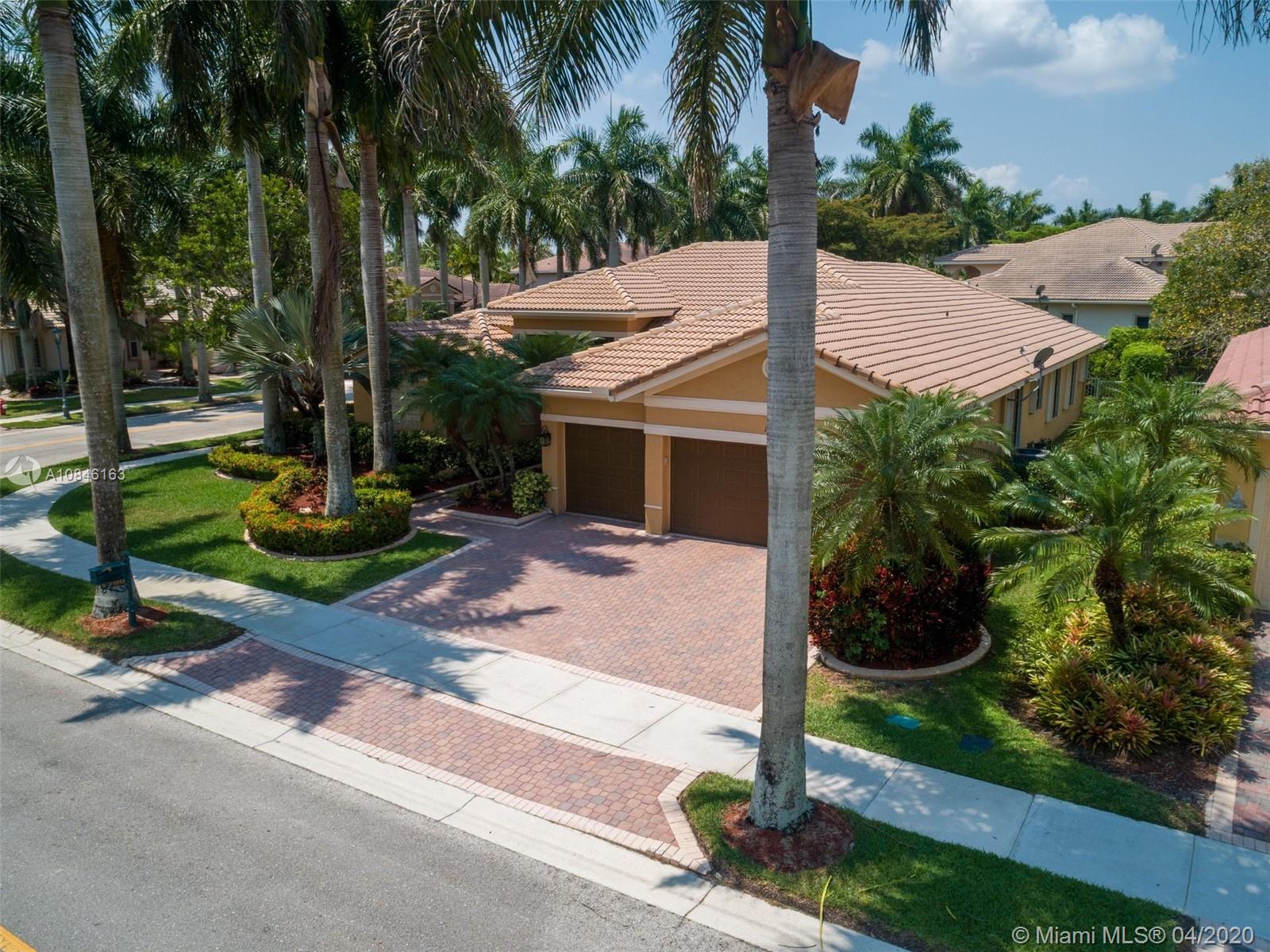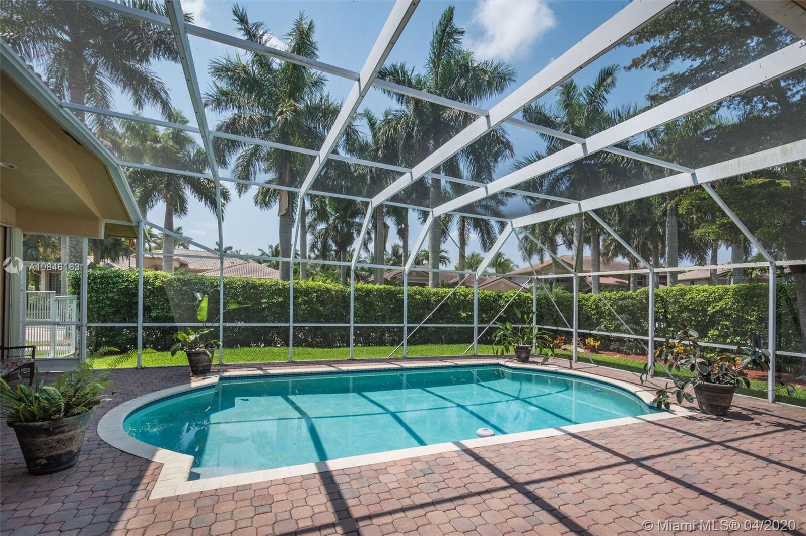 Beautiful Weston Hills Country Club - Harbor Pointe home with upgrades throughout. This spacious 4 bedroom / 3 bathroom home has a triple split floor plan. 12' ceilings with large windows provides an impressive backdrop for any gathering. Open kitchen with 42" cabinets and granite counter tops. Recently painted exterior. Enjoy this spectacular backyard including pool, large screened in patio and plenty of open space for the kids to play. Accordian shutters. Newer AC. 3-car garage. 11,000sf corner lot