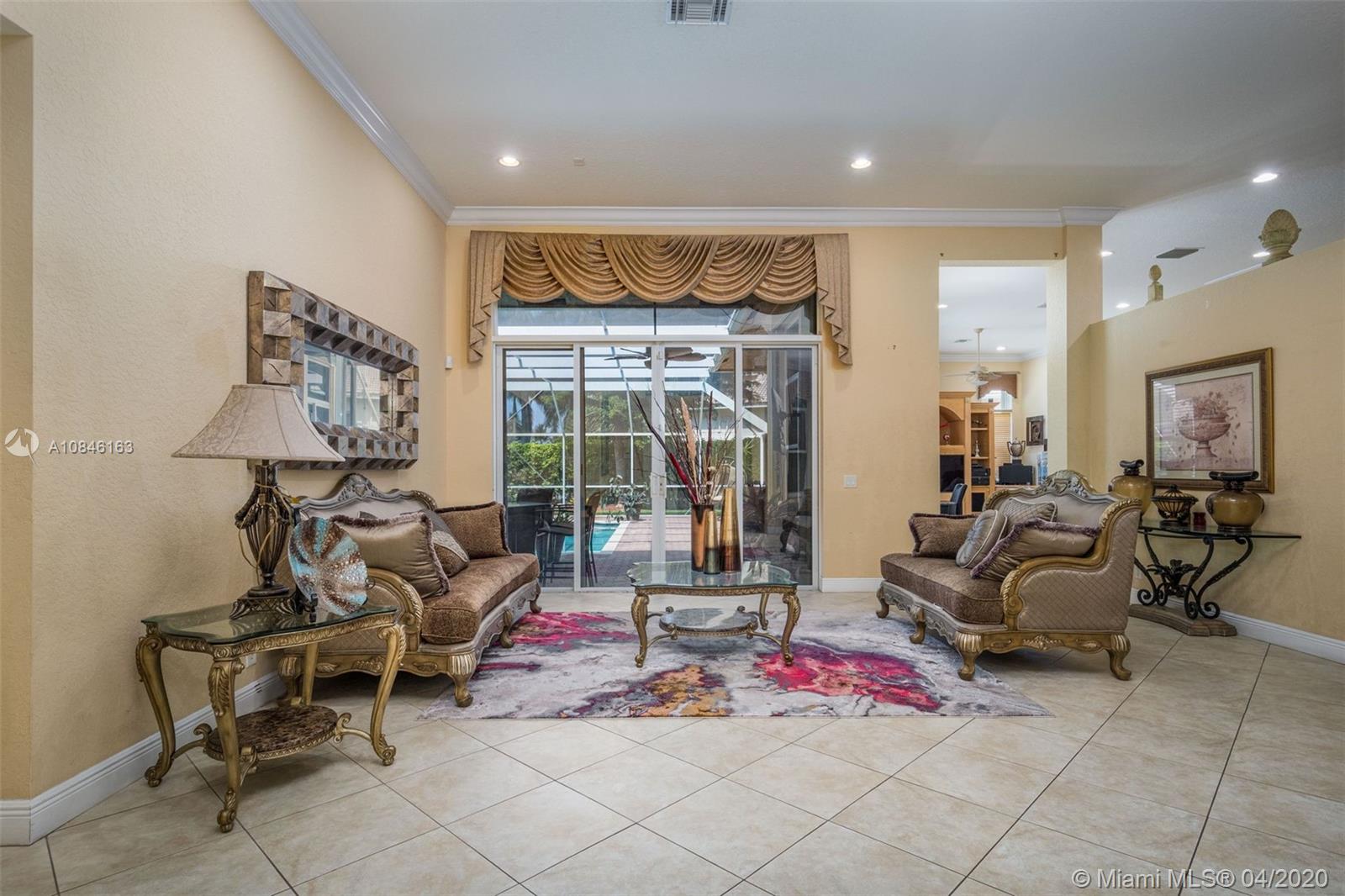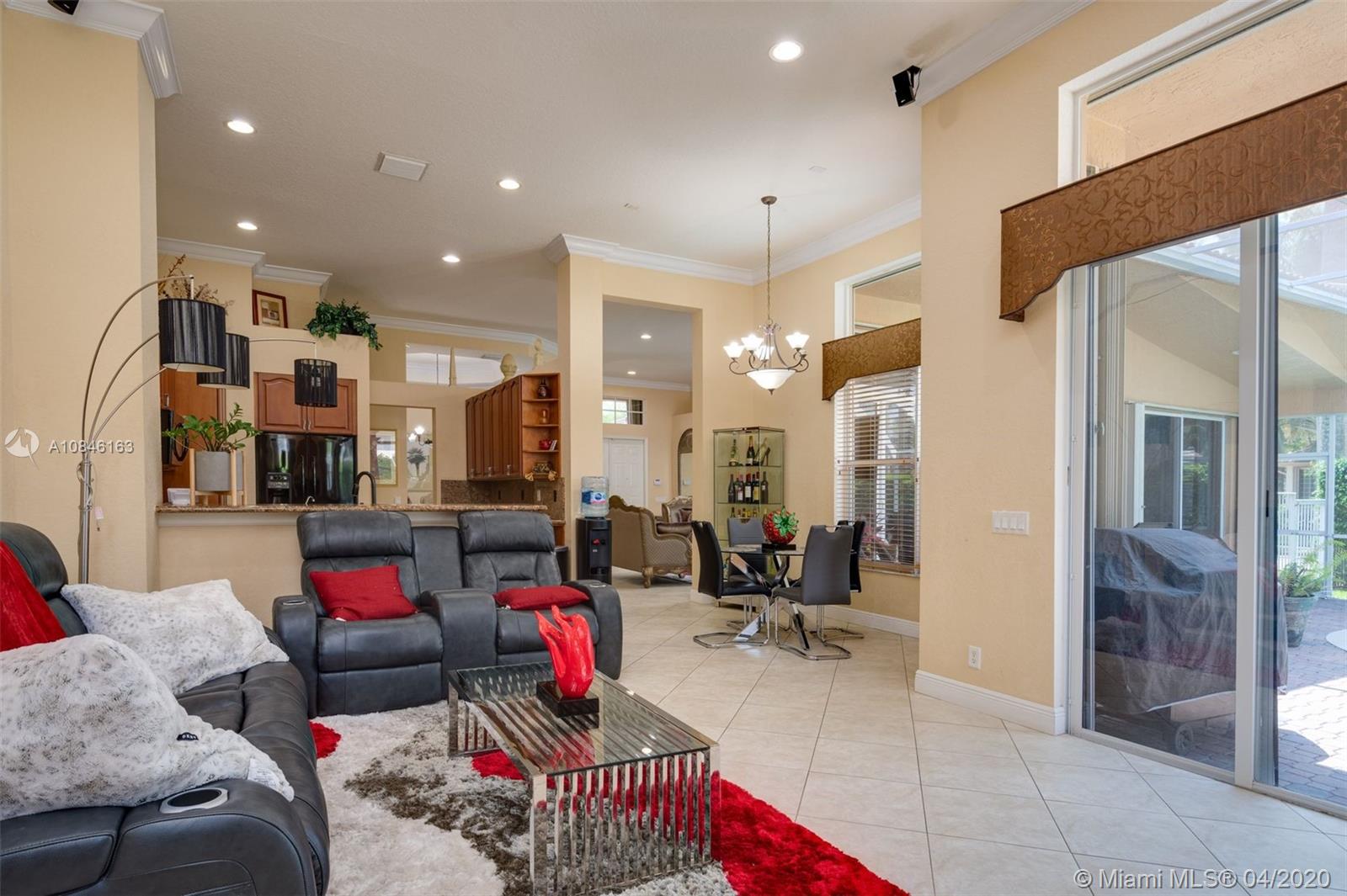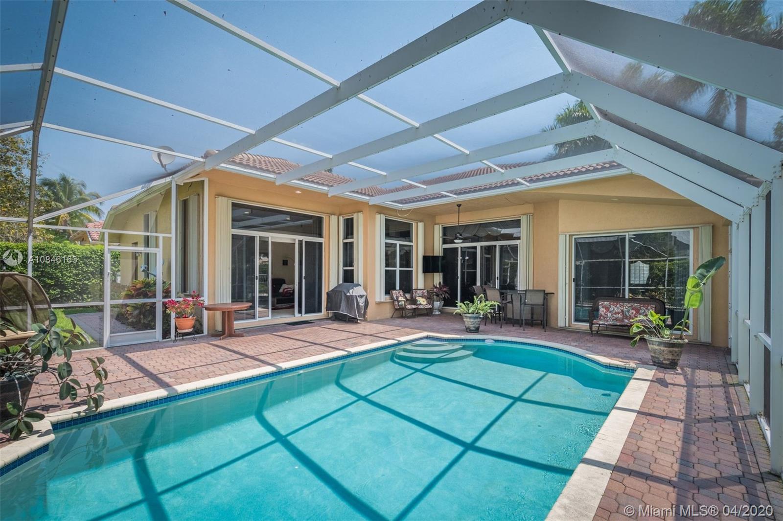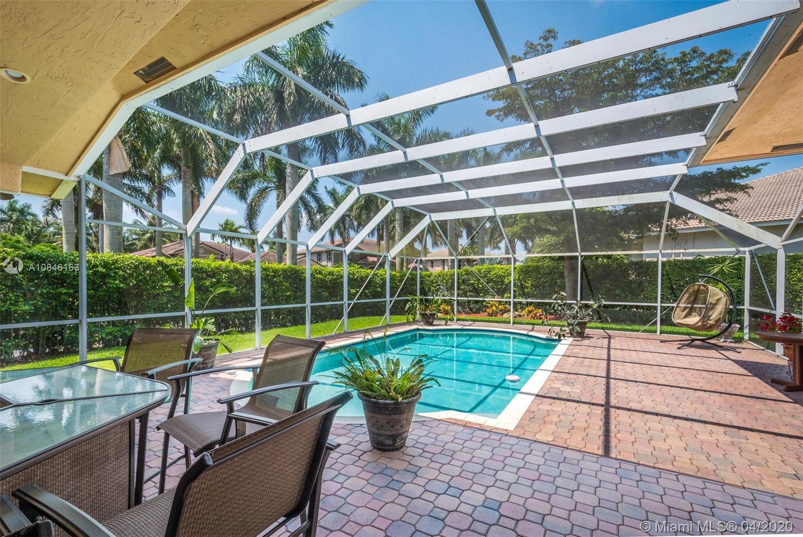 Beautiful Weston Hills Country Club - Harbor Pointe home with upgrades throughout. This spacious 4 bedroom / 3 bathroom home has a triple split floor plan. 12' ceilings with large windows provides an impressive backdrop for any gathering. Open kitchen with 42" cabinets and granite counter tops. Recently painted exterior. Enjoy this spectacular backyard including pool, large screened in patio and plenty of open space for the kids to play. Accordian shutters. Newer AC. 3-car garage. 11,000sf corner lot