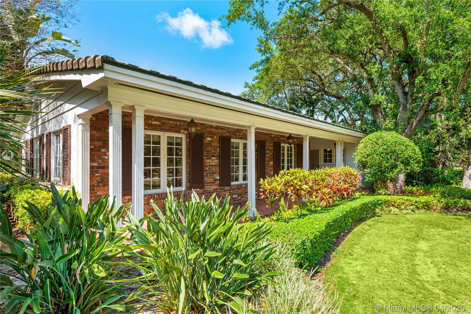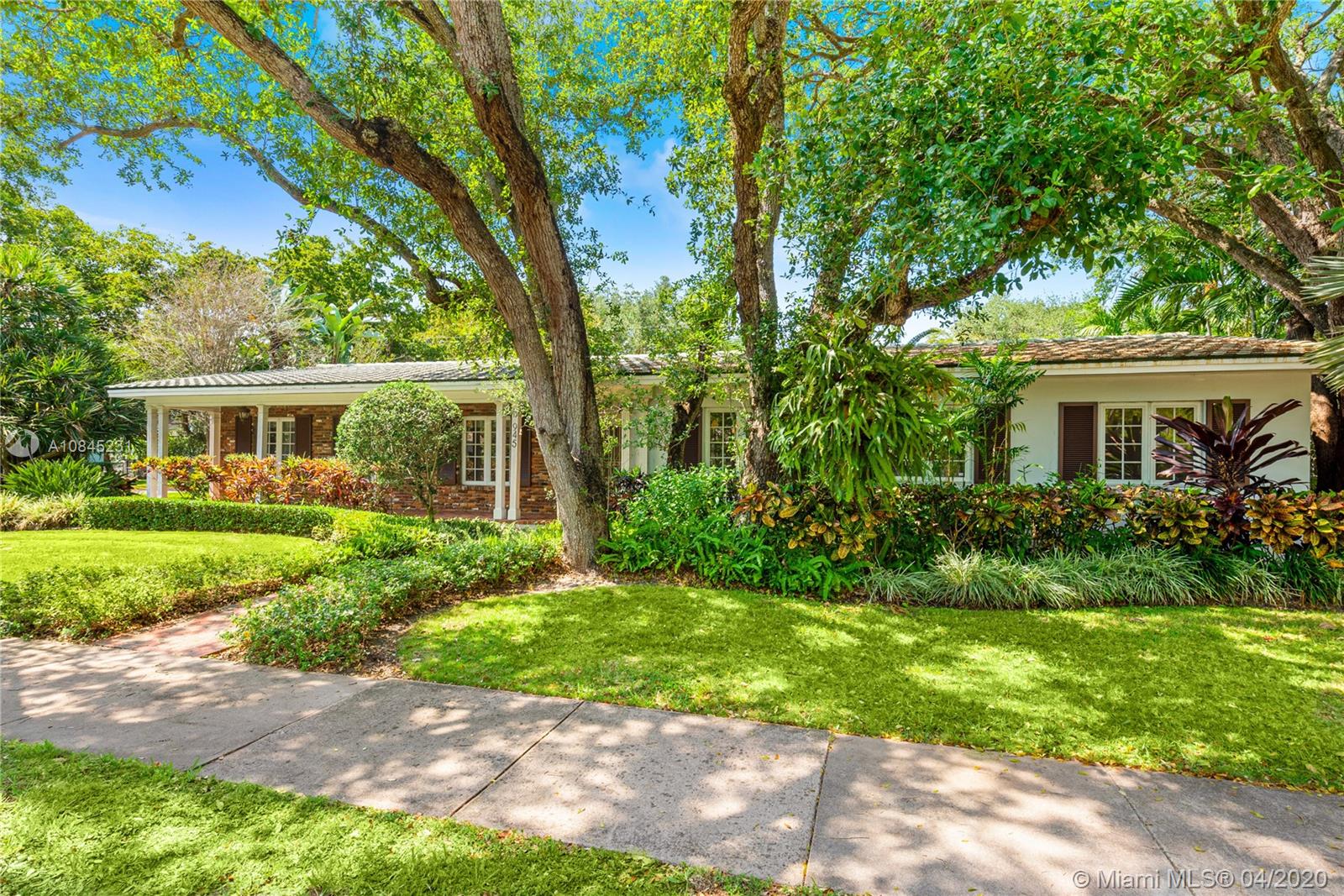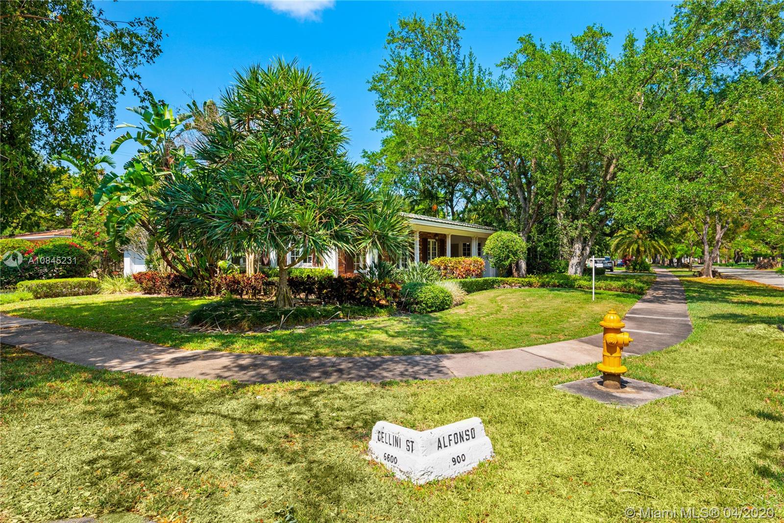 Elegant 1-story home situated on a prime corner lot on one of Coral Gables most picturesque streets. This charming residence exudes graceful elegance & offers a warm, inviting refuge for relaxation, entertaining & enjoying all the fine things Coral Gables has to offer. Impressively updated with impact windows & a standby generator, this prime offering eagerly awaits your personalized touches. With a greatroom-centric layout, there's a feeling of ample openness. Living areas boast sun-drenched vistas of the glorious gardens surrounding all sides. The 2 car garage, coupled with it's corner position, provides ample parking for guests. Just a short walk or bicycle ride to great brunch, lunch & dinner spots, flower shops, boutiques & live music venues. An envy-worthy address in every sense.