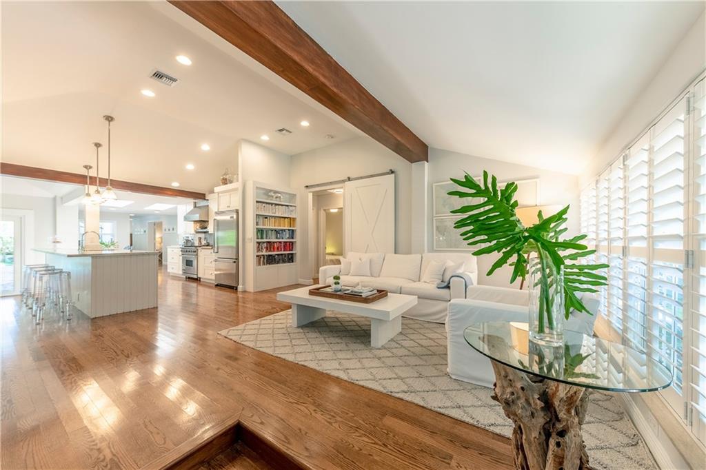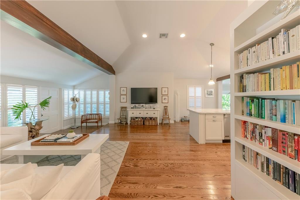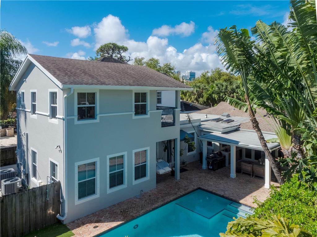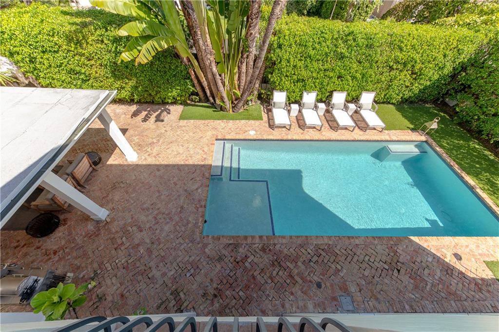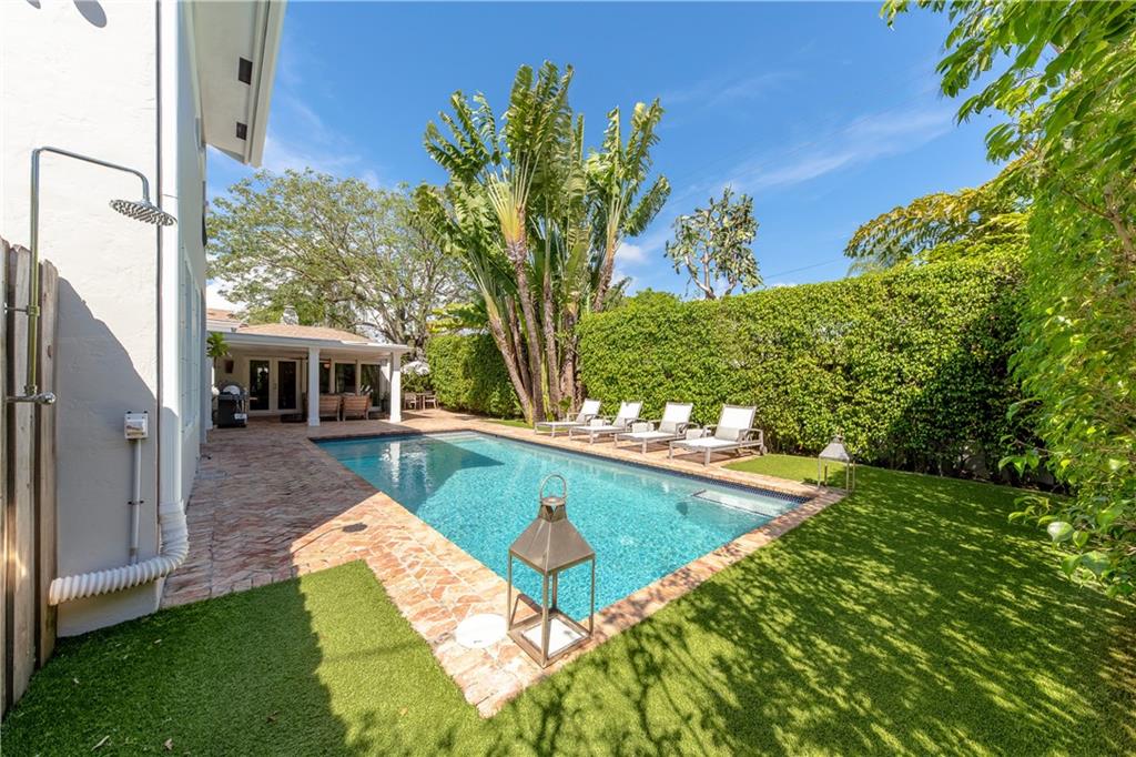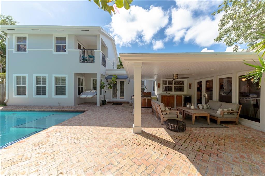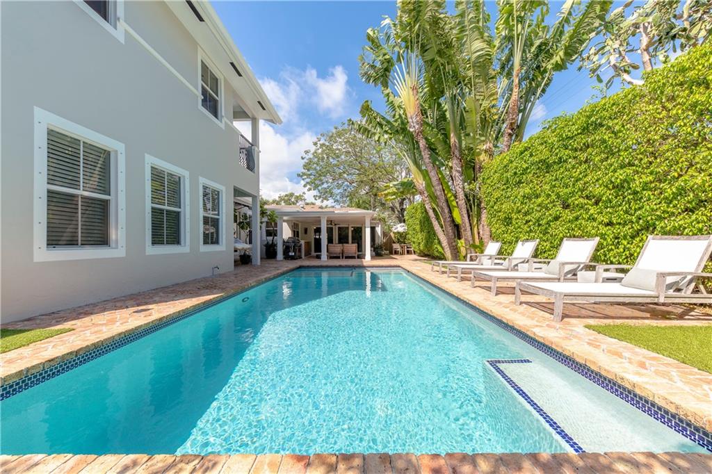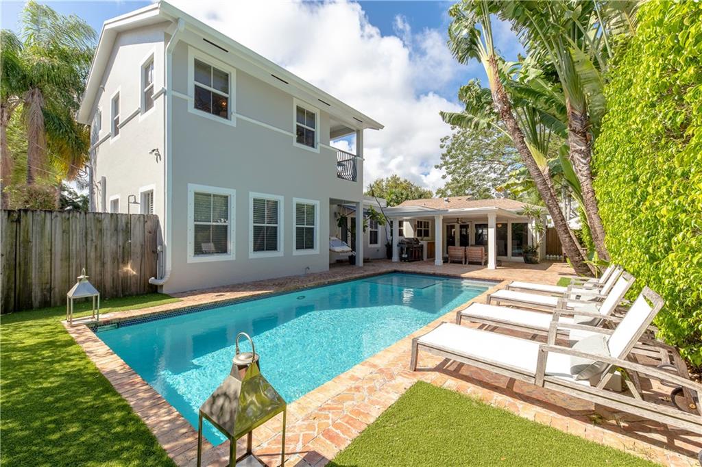 This remarkable 4 bedroom, 3.5 bath is perfectly situated in the heart of Victoria Park On a pristine tree shaded lot concealed behind mature landscaping, recently updated home has an open design around a heated salt water pool and terrace with a covered patio and summer kitchen. Improvements include new hardwood flooring, a spectacular cook and baker's kitchen with natural gas cooking, Island seating between the dining and family rooms. Entry level and second floor master suites each with walk-in closets. Upstairs, the master opens to a wide roofed balcony. Two guest rooms share a hall bath. Patio lounge and summer kitchen are protected under a roofed canopy. Wide spaces around the pool offer plenty of sunning opportunity. There is ample parking for up to six cars.