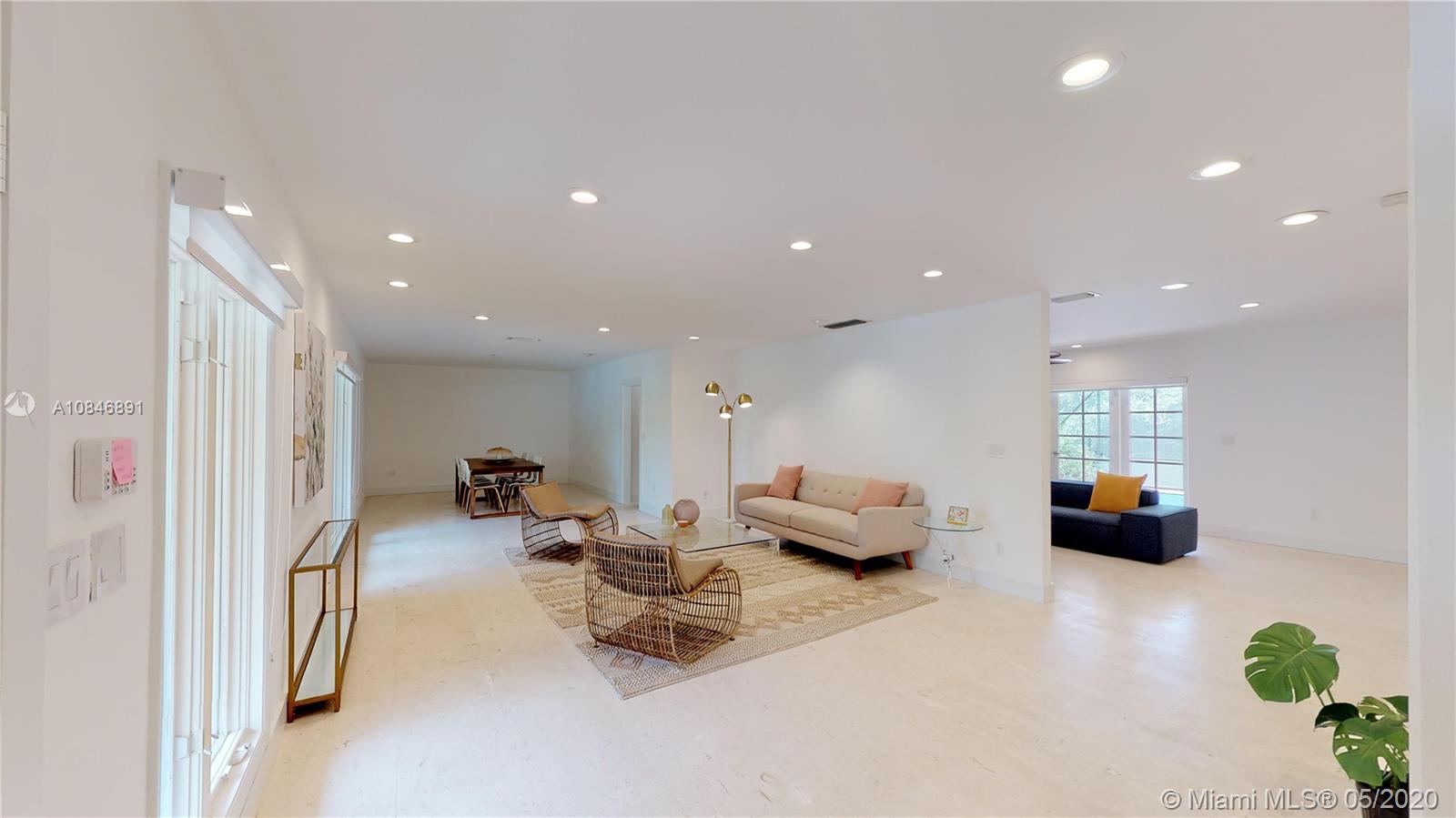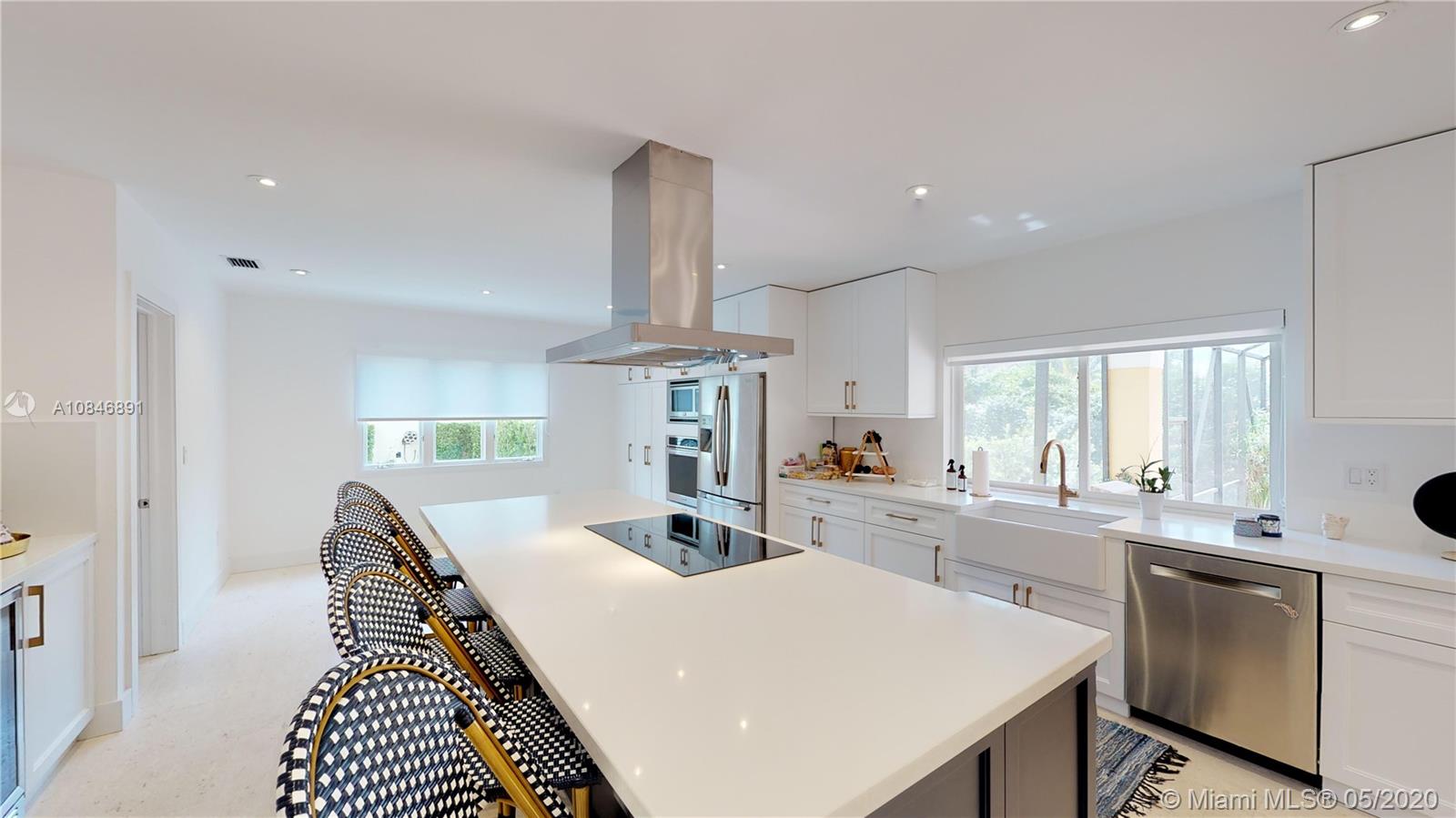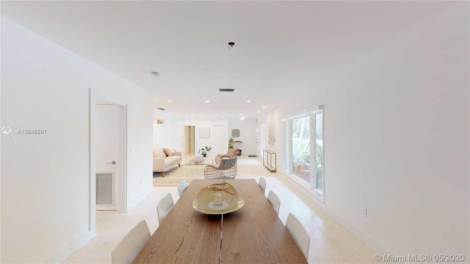 Tucked away in a small, exclusive gated community in the Village of Pinecrest, this 4-bedroom, 3-bath home was tastefully updated. The spacious living area boasts a large formal living room, formal dining room, and wonderful family room that leads out to the screened-in pool and outdoor entertaining area with BBQ. ShellStone floors are found throughout the living space, and durable wood-look vinyl flooring in the bedrooms. The modernized kitchen features a porcelain farmhouse sink, stainless steel appliances, white quartz countertops, and adjacent breakfast room. The sumptuous, oversized master suite was updated with modern finishes. Other notable features of the home include full-size laundry room, 2-car garage, and the best Pinecrest schools. Competitively priced.