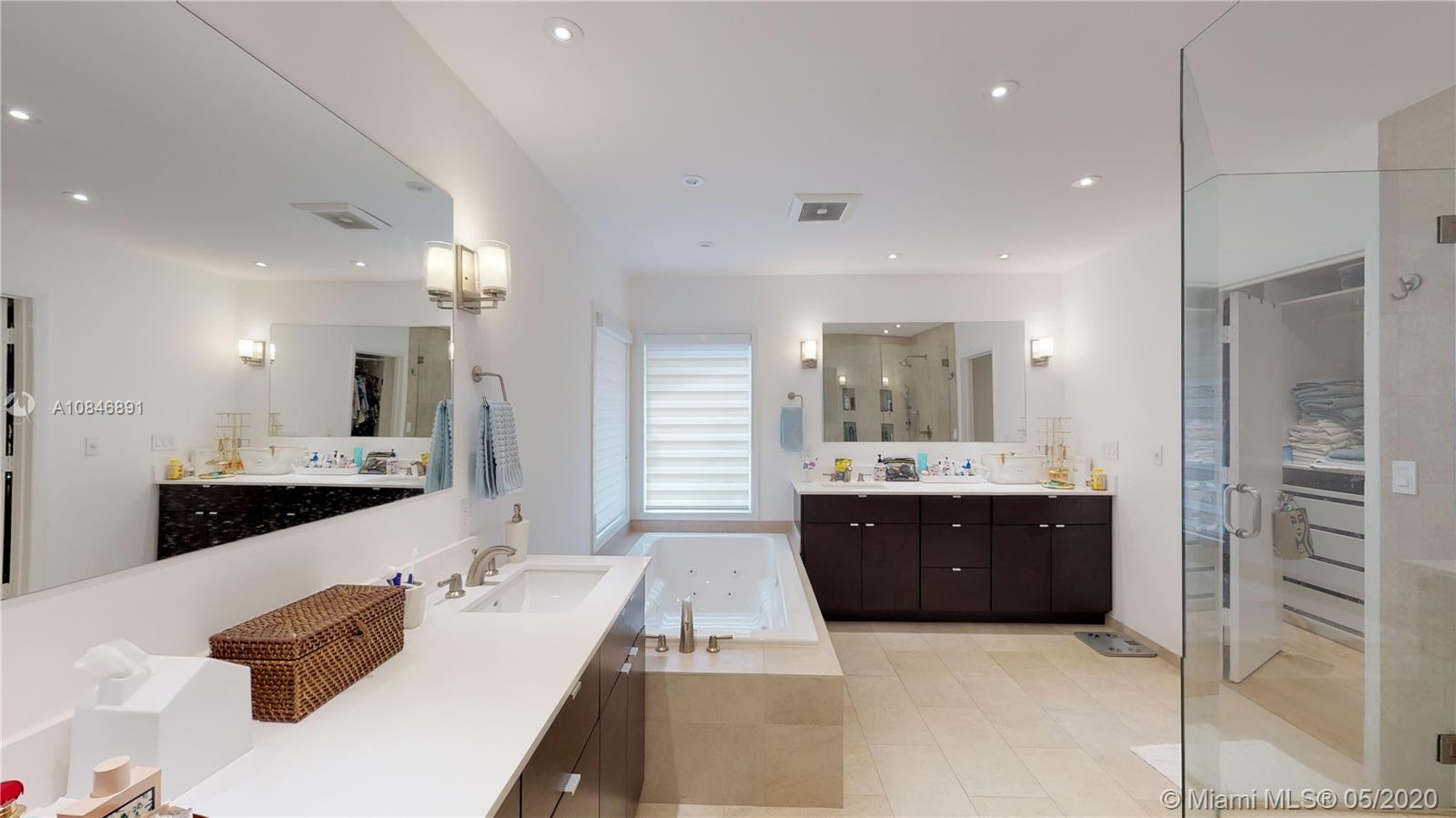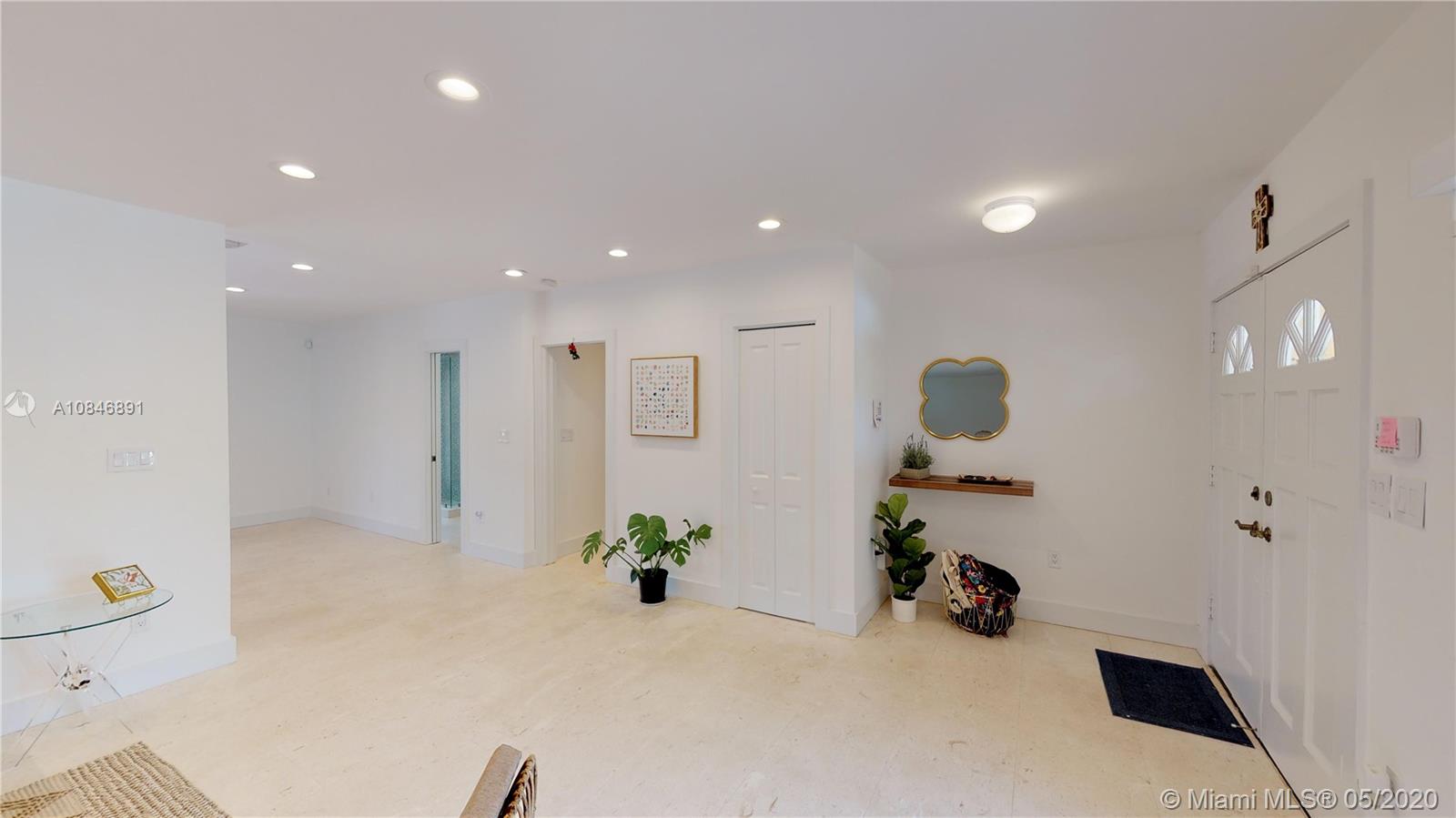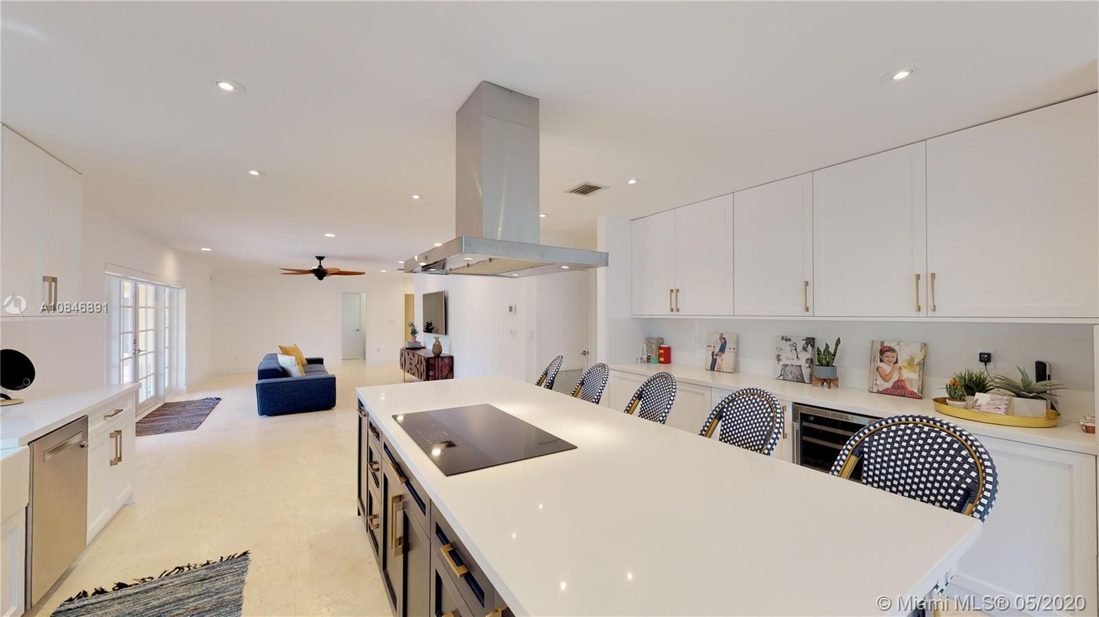 Tucked away in a small, exclusive gated community in the Village of Pinecrest, this 4-bedroom, 3-bath home was tastefully updated. The spacious living area boasts a large formal living room, formal dining room, and wonderful family room that leads out to the screened-in pool and outdoor entertaining area with BBQ. ShellStone floors are found throughout the living space, and durable wood-look vinyl flooring in the bedrooms. The modernized kitchen features a porcelain farmhouse sink, stainless steel appliances, white quartz countertops, and adjacent breakfast room. The sumptuous, oversized master suite was updated with modern finishes. Other notable features of the home include full-size laundry room, 2-car garage, and the best Pinecrest schools. Competitively priced.