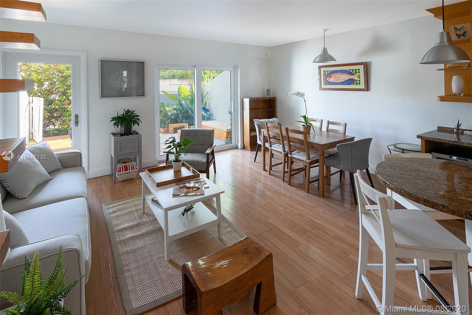 Cozy townhouse ready for move in or ideal as investment property. Remodeled & perfectly maintained with washer/dryer, wine cooler, water filter system, highest quality impact glass & more. Large private patio opens to huge gardens & heated pool area w/ gazebo for entertaining. Lease minimum of 30 days, with high rental income and low maintenance fee. Two large dogs allowed for owners/tenants. Walk to the beach, park, restaurants, stores, etc.