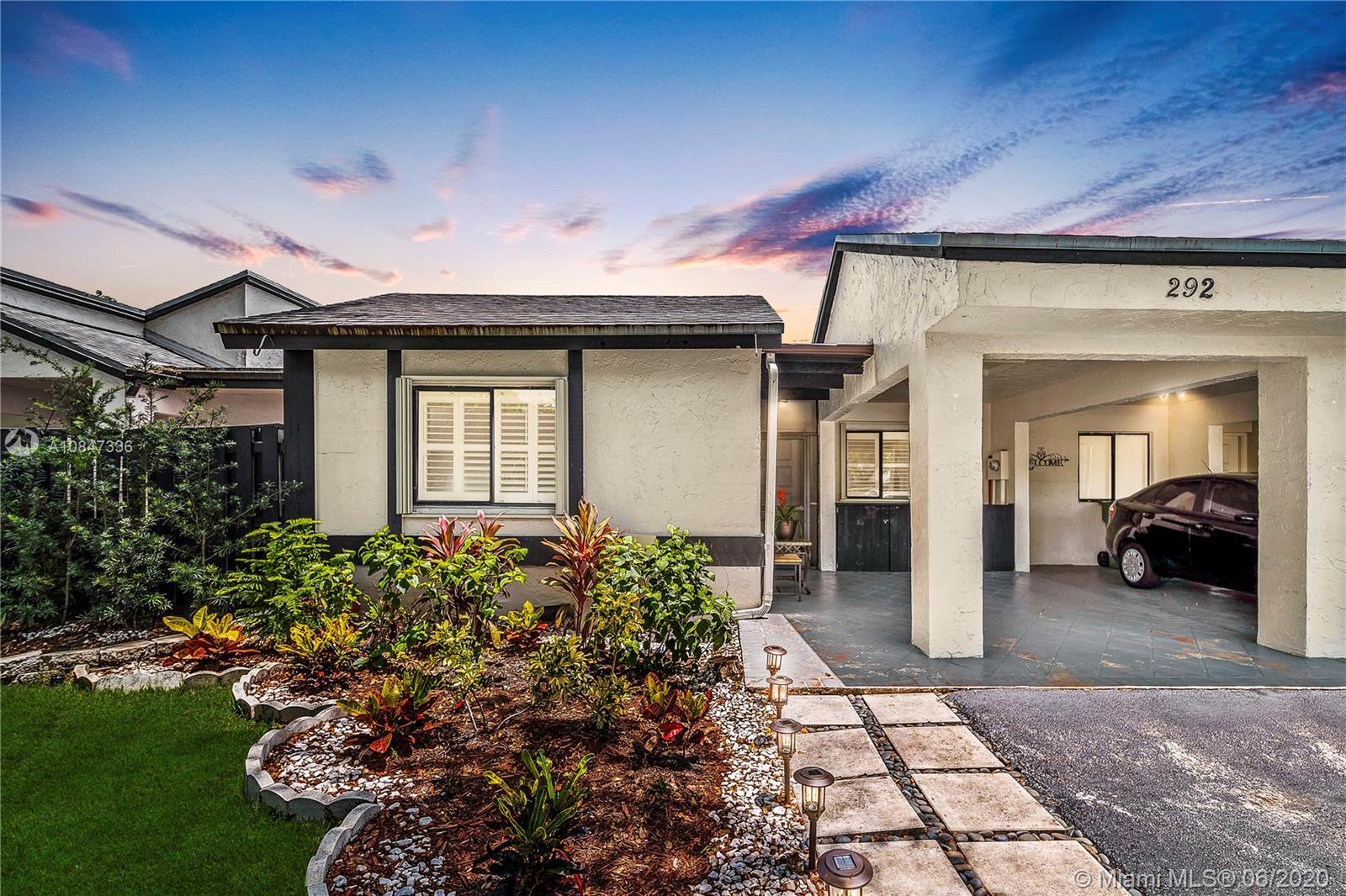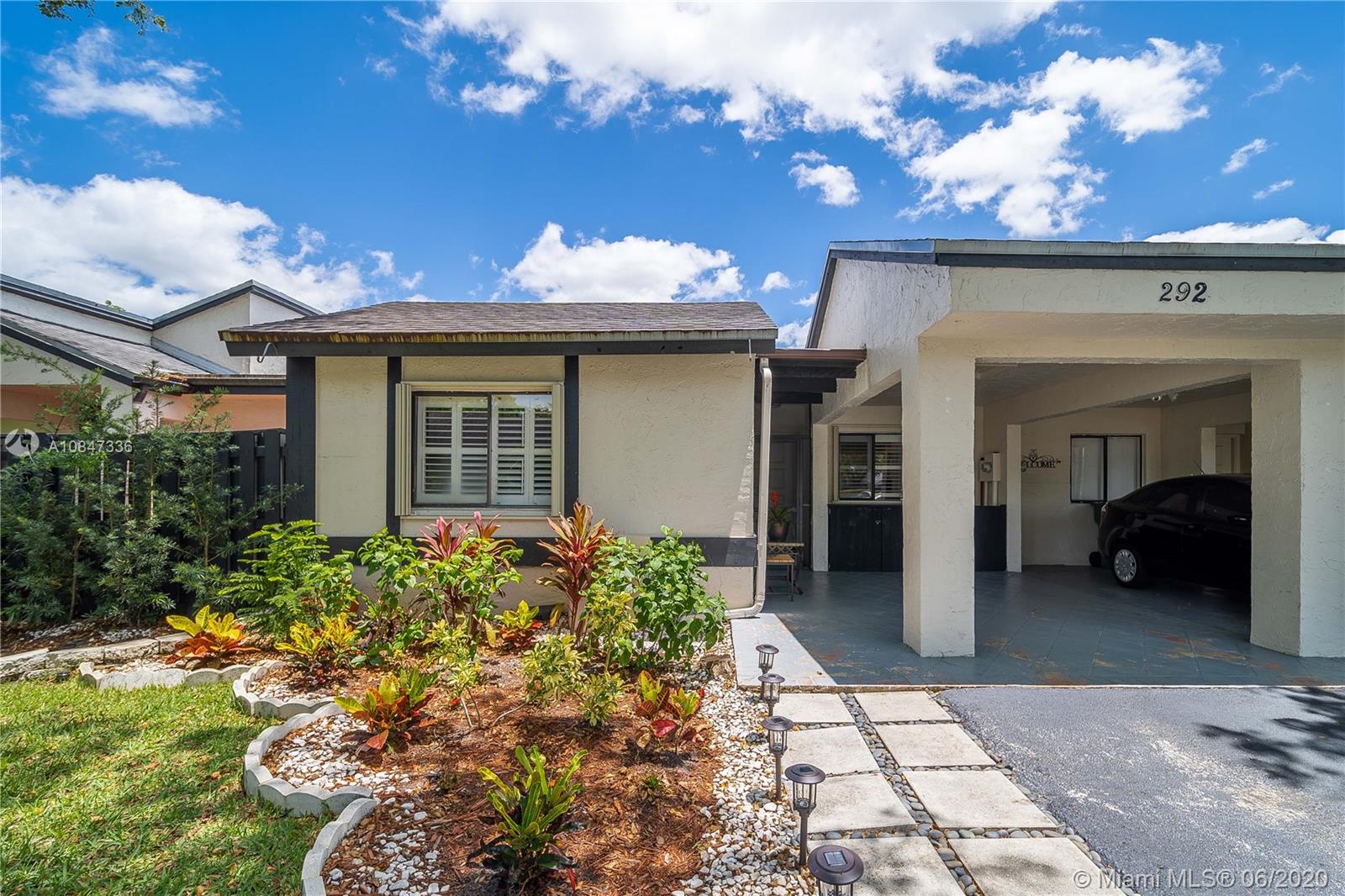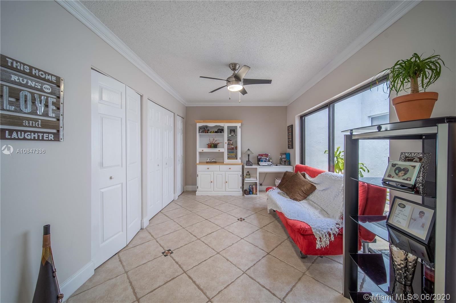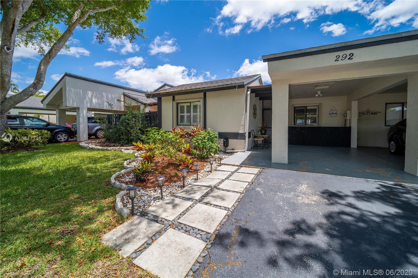 Move-in ready villa in highly desired 'Villas of Bonaventure' in WESTON, FL. 1500 sq ft, lots of natural lighting compliments of a lovely atrium. High vaulted ceilings, screened in back terrace, front door parking in covered carport and accordion shutters. Features 3 bedrooms, 2 updated bathrooms (1 bedroom is open being used as additional living area but easily converted to a bedroom by simply putting up a partition). Large rooms with walk in closet in master bedroom. Tiled through out with updated eat in kitchen and baths. Pet friendly community with pool, activity room, bowling, tennis, basketball, bbq area & much more. Condo association has reserves! 10% dep req by assoc. Building insurance covered with monthly assoc dues. VIRTUAL TOUR COPY & PASTE LINK https://youtu.be/jKP1_gsKU-8
