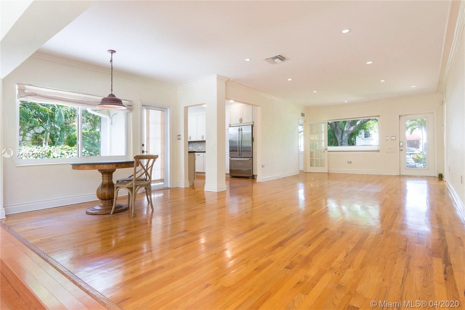 3 Bed 3 Bath home with detached renovated garage. Green view all around the house. Quiet area. Oversized lote. HUGE yard with room for pool and expand your house. Custom kitchen with 40" all wood cabinetry. Quartz countertop. Italian sink. Bosch dishwasher, Viking gas range and microwave. Hurricane impact windows/doors. Quiet dead-end street. All the benefits of living in Miami Shores: family oriented neighborhood with an spectacular Community Center which includes Golf, best after school care, aquatic center, new restaurants. Walking distance to Publix, CVS, gyms, the new and fancy Citadel. Dinning set and breakfast area furniture not included