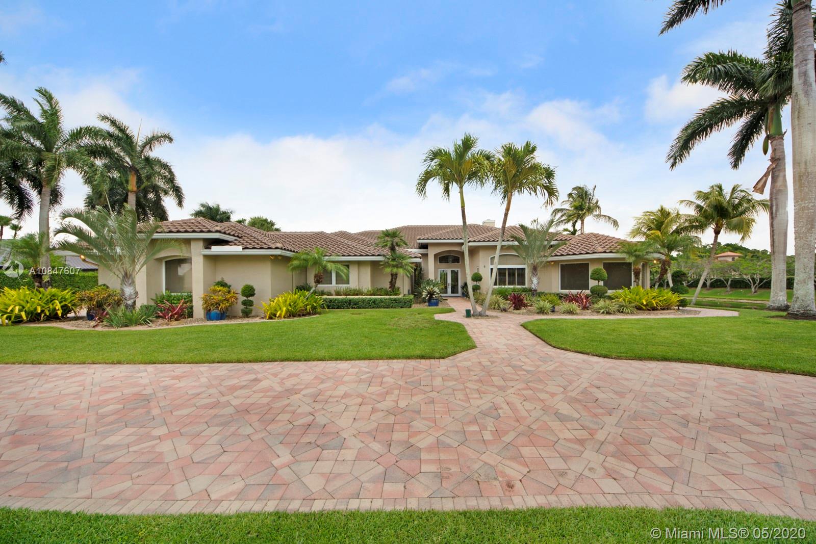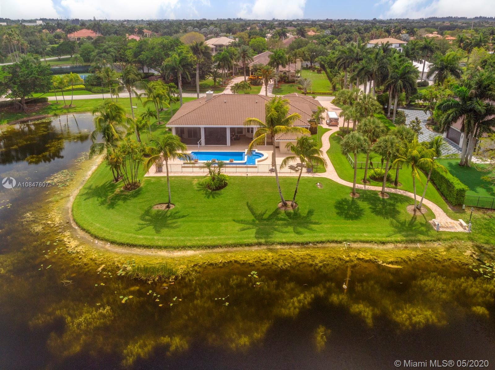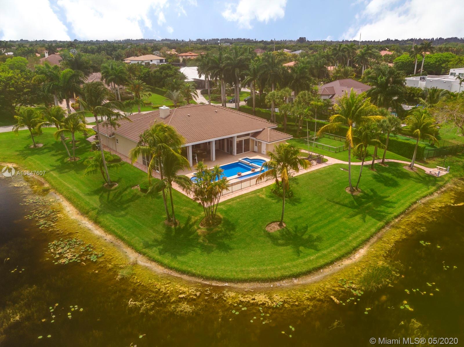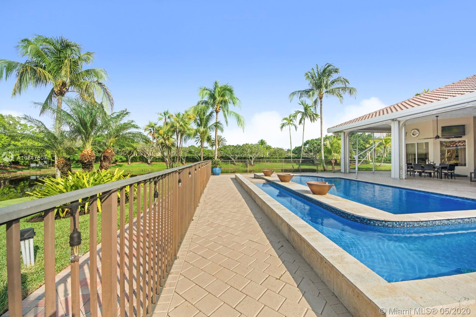 Bright and spacious newly remodeled four bedroom plus office home in the exclusive neighborhood of Windmill Lakes Estates, on a private corner lot with lake views. Entrance with circular driveway and lush landscape. Newly renovated kitchen with wood cabinets, new appliances and quartz counter tops, two sinks, beverage cooler, and walk-in pantry. Swimming pool and spa connected with Aqualink system. Master bedroom with large walk-in closet. Bathroom has separate sinks, tub and walk in shower. Large laundry room. Three A/C units, impact windows, new roof and over sized gutters, 13 foot ceilings and was recently painted on the outside. Wired for sound, with speakers throughout. House and landscape were designed with extra features to minimize regular maintenance.