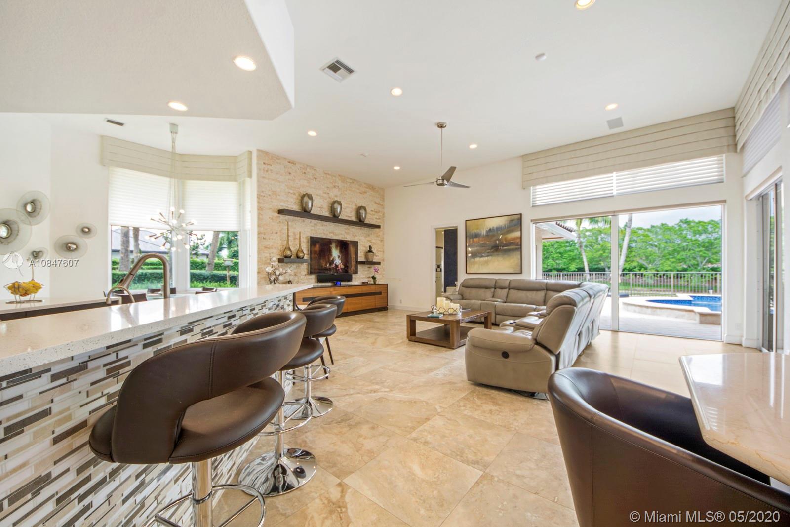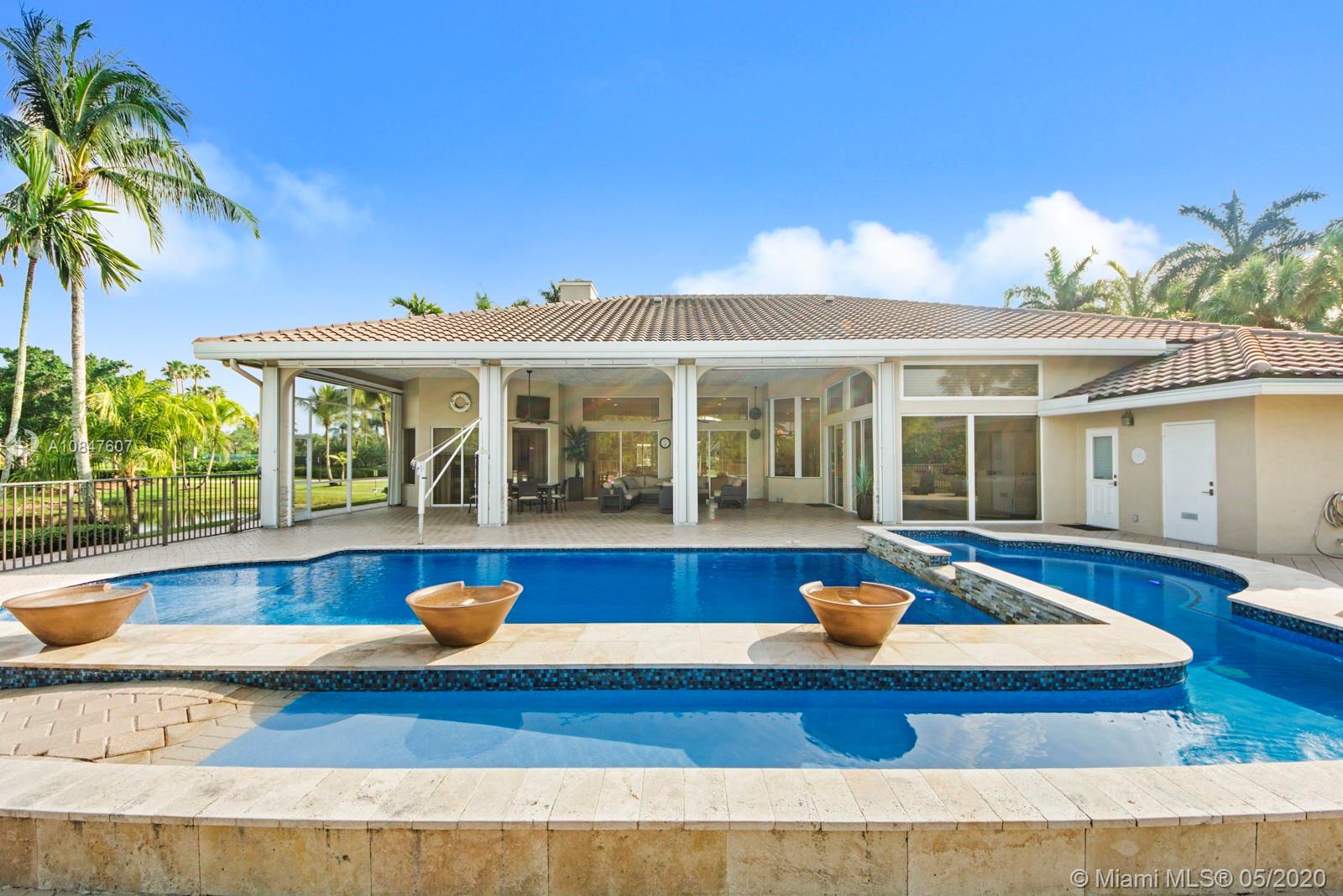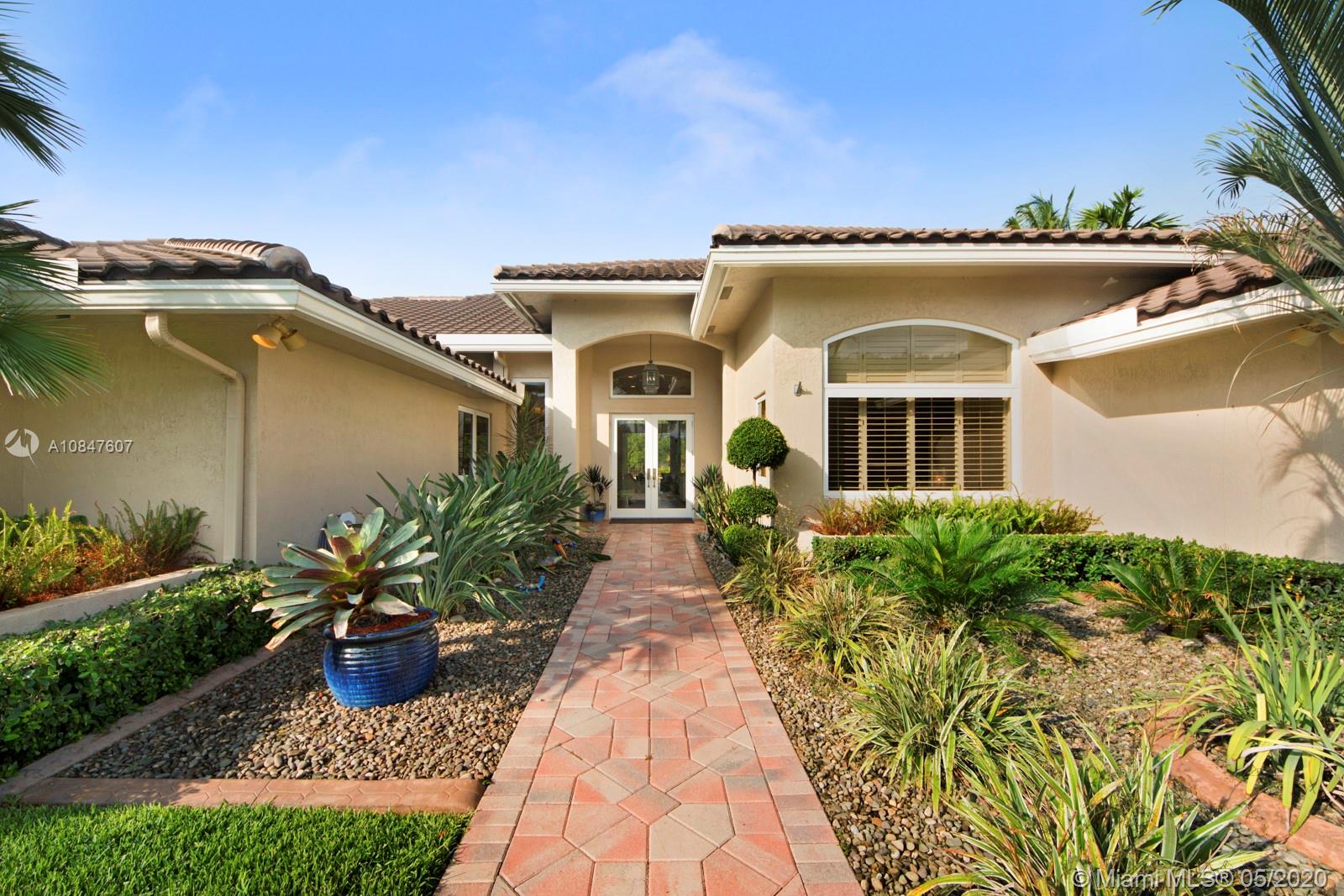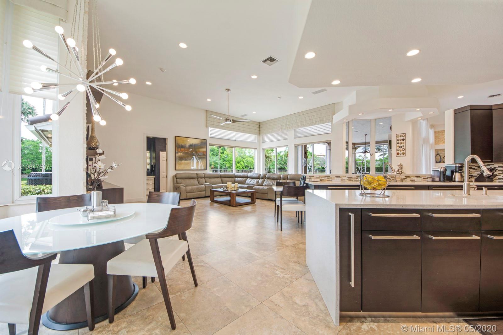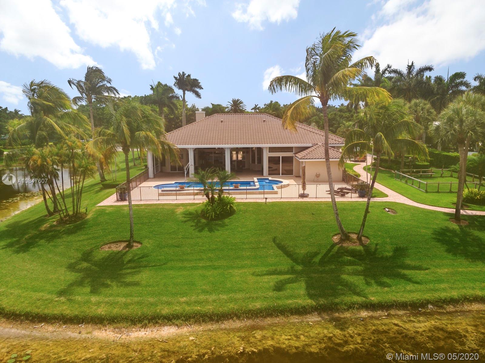 Bright and spacious newly remodeled four bedroom plus office home in the exclusive neighborhood of Windmill Lakes Estates, on a private corner lot with lake views. Entrance with circular driveway and lush landscape. Newly renovated kitchen with wood cabinets, new appliances and quartz counter tops, two sinks, beverage cooler, and walk-in pantry. Swimming pool and spa connected with Aqualink system. Master bedroom with large walk-in closet. Bathroom has separate sinks, tub and walk in shower. Large laundry room. Three A/C units, impact windows, new roof and over sized gutters, 13 foot ceilings and was recently painted on the outside. Wired for sound, with speakers throughout. House and landscape were designed with extra features to minimize regular maintenance.