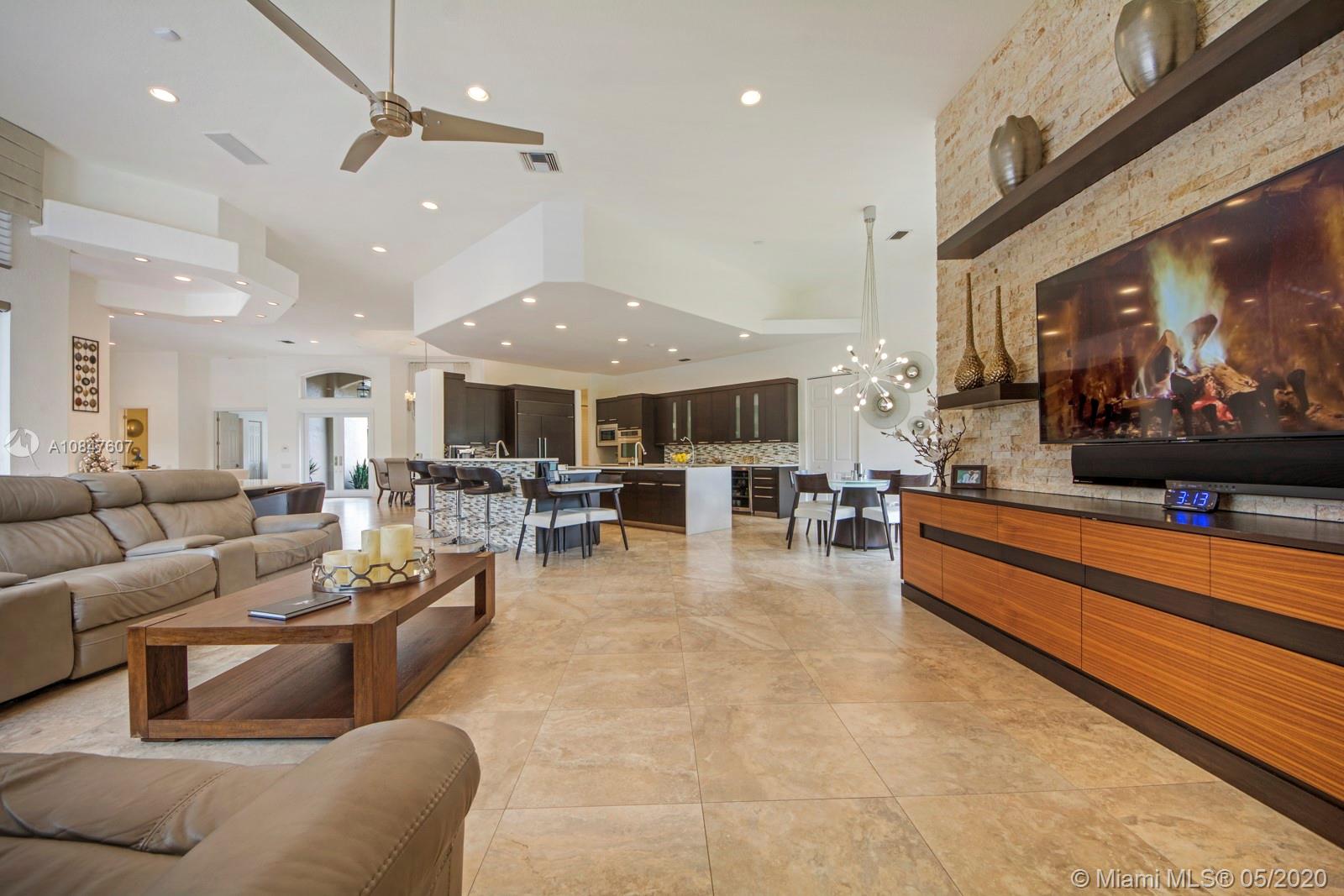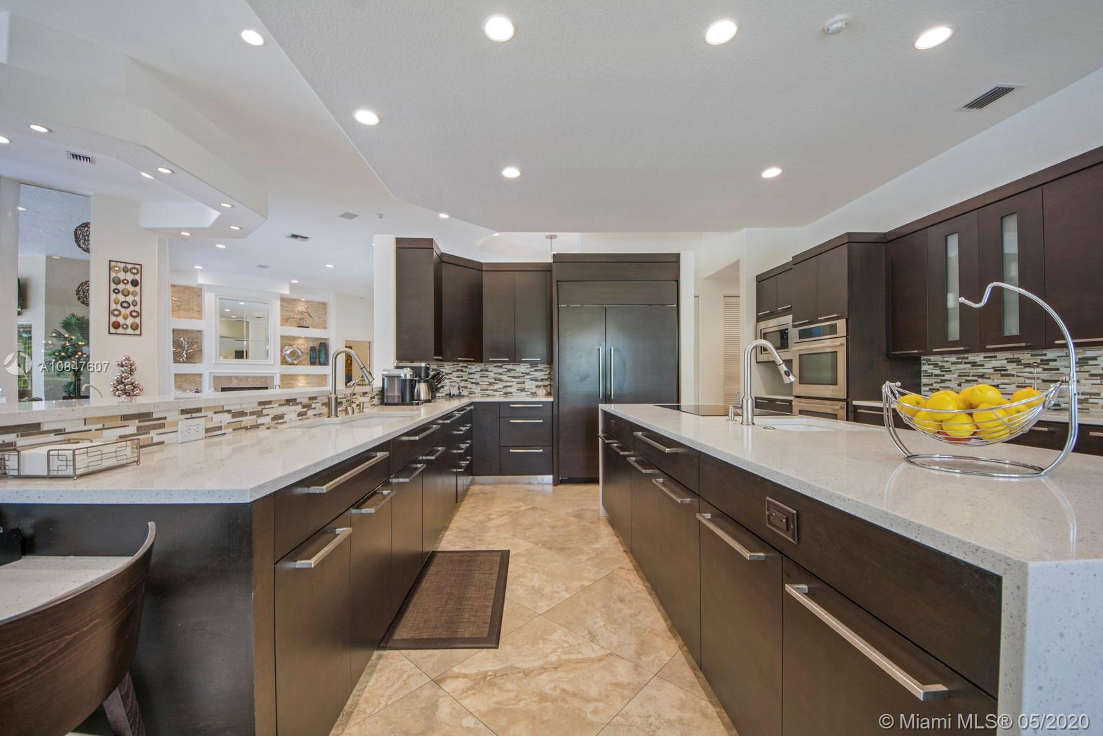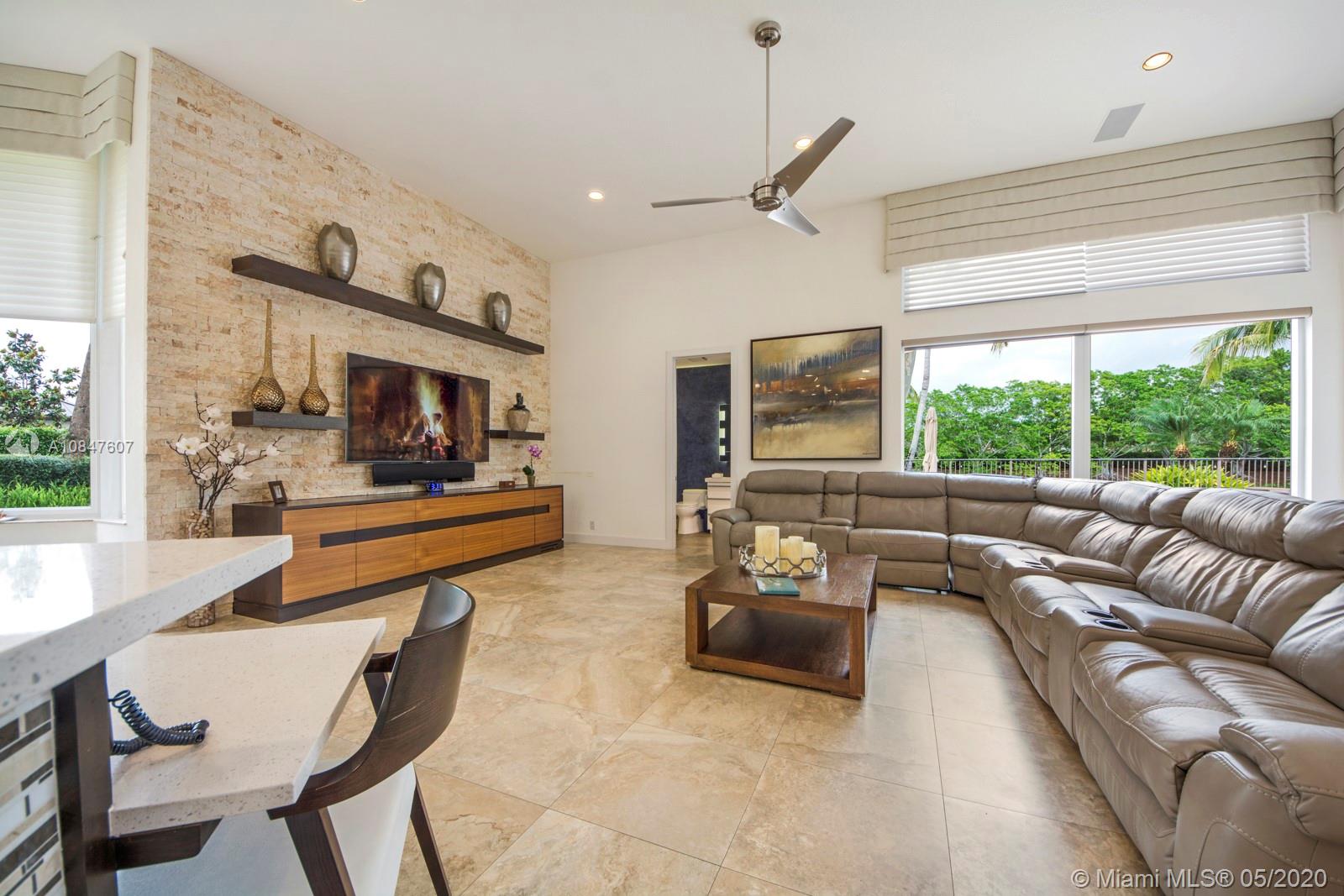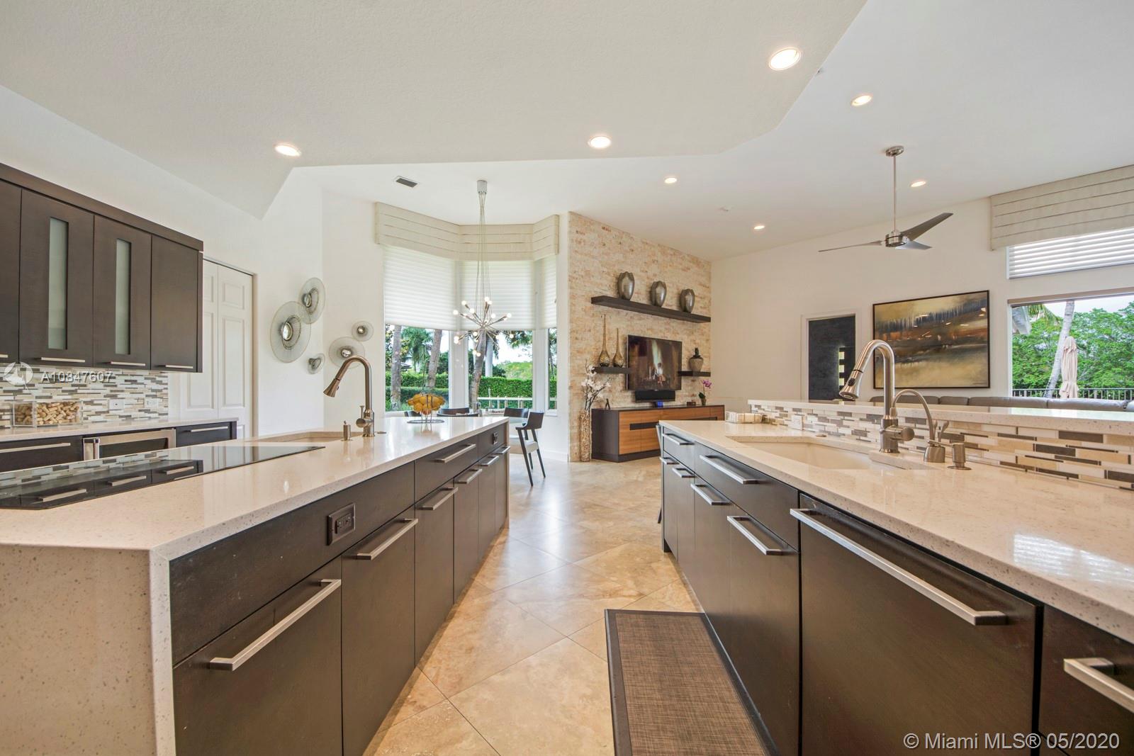 Bright and spacious newly remodeled four bedroom plus office home in the exclusive neighborhood of Windmill Lakes Estates, on a private corner lot with lake views. Entrance with circular driveway and lush landscape. Newly renovated kitchen with wood cabinets, new appliances and quartz counter tops, two sinks, beverage cooler, and walk-in pantry. Swimming pool and spa connected with Aqualink system. Master bedroom with large walk-in closet. Bathroom has separate sinks, tub and walk in shower. Large laundry room. Three A/C units, impact windows, new roof and over sized gutters, 13 foot ceilings and was recently painted on the outside. Wired for sound, with speakers throughout. House and landscape were designed with extra features to minimize regular maintenance.