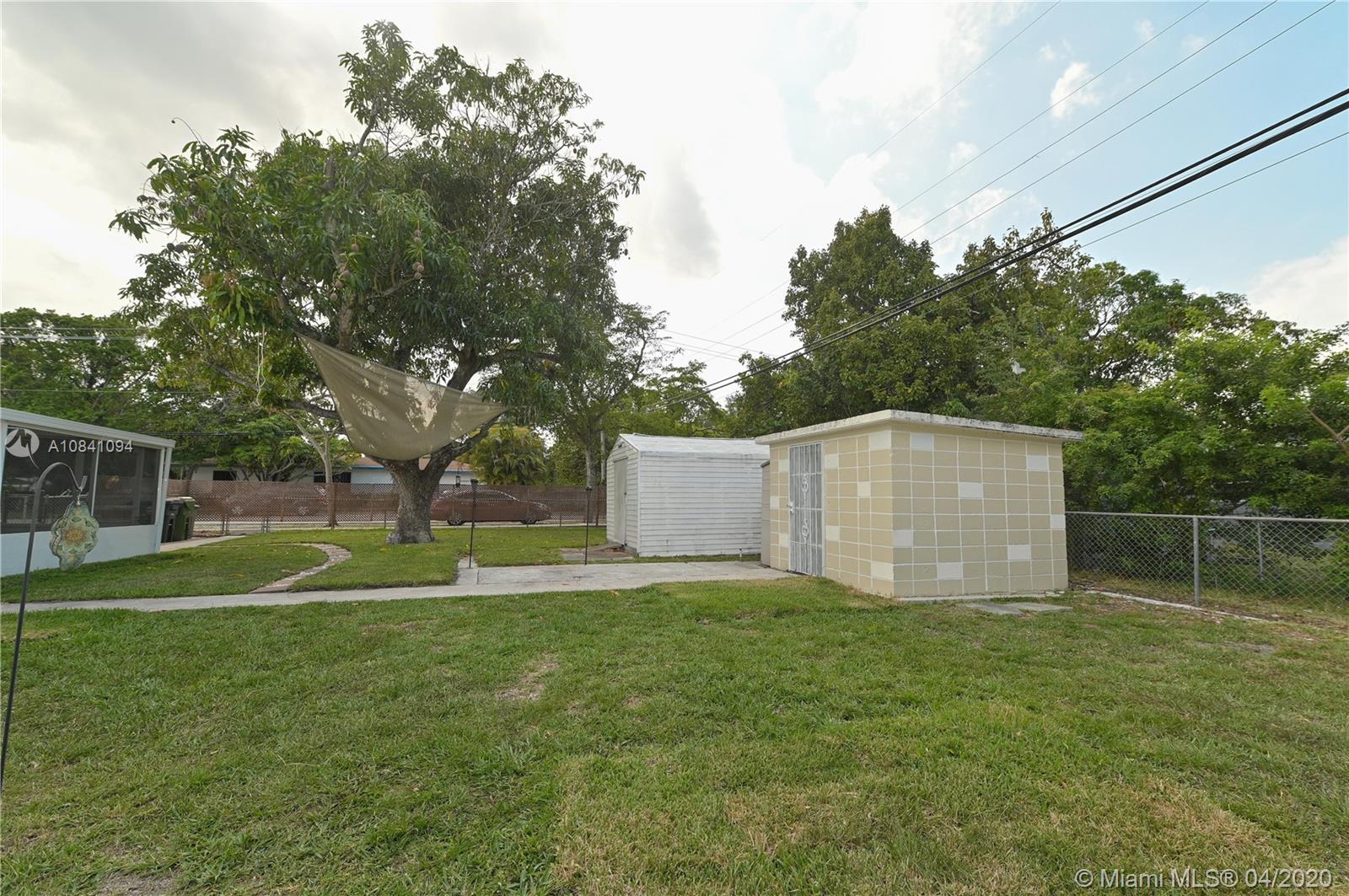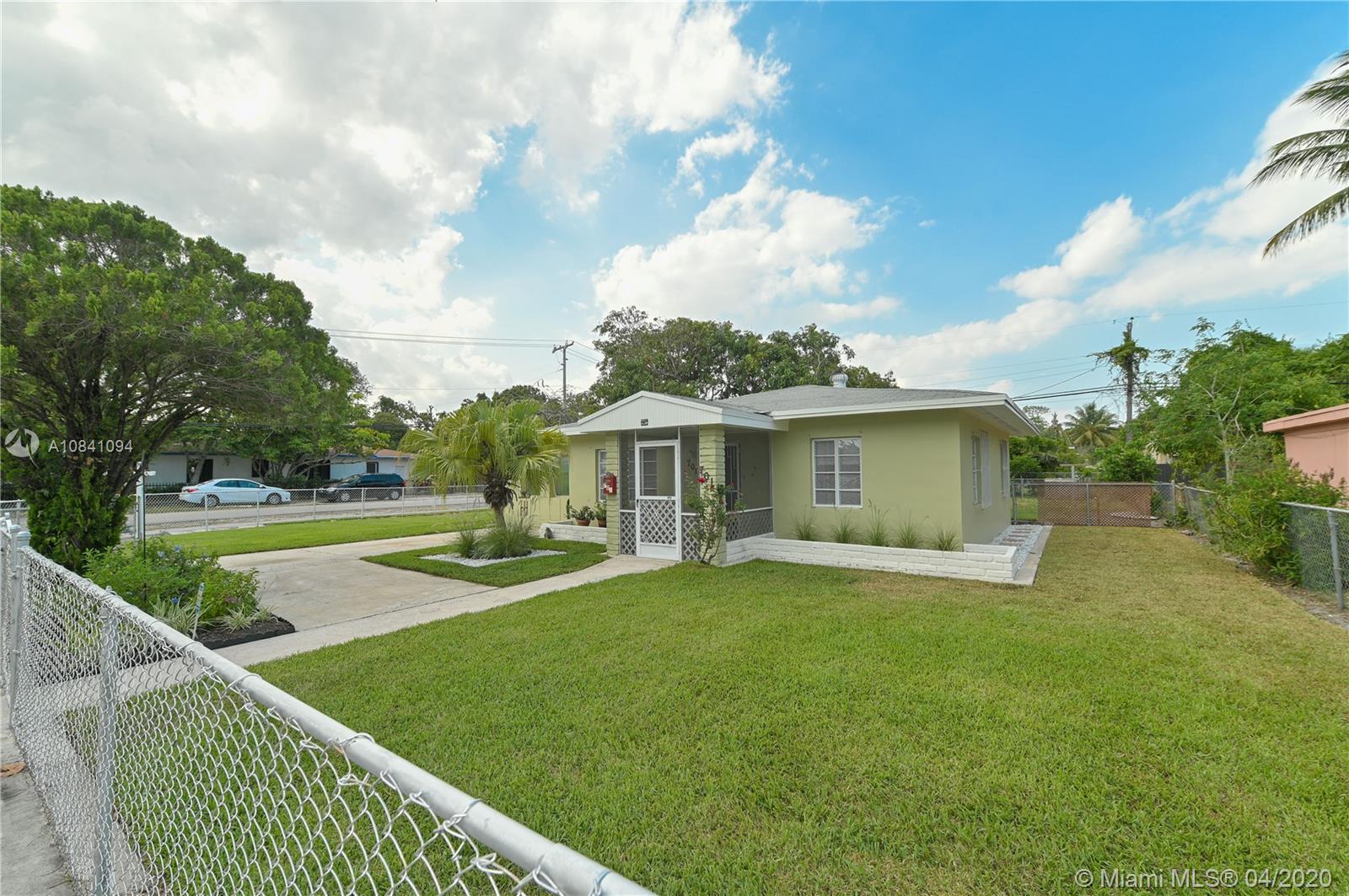 Charming North Miami home on a corner lot with wraparound green landscape. Featuring 3 Bedrooms & 1 Bathroom with 1135 sqft. Walking through a foyer with lots of natural light in living room/family room. Enjoy cooking and entertaining guest in a custom kitchen featuring a rolling island, and lots of storage/cabinets with dining area adjacent. Spend time and relax in your own screened patio that oversees all of the back patio and large mango tree. Home includes 2 sheds for tools or equipment. Minutes from Schools, Parks, Shopping & I95.