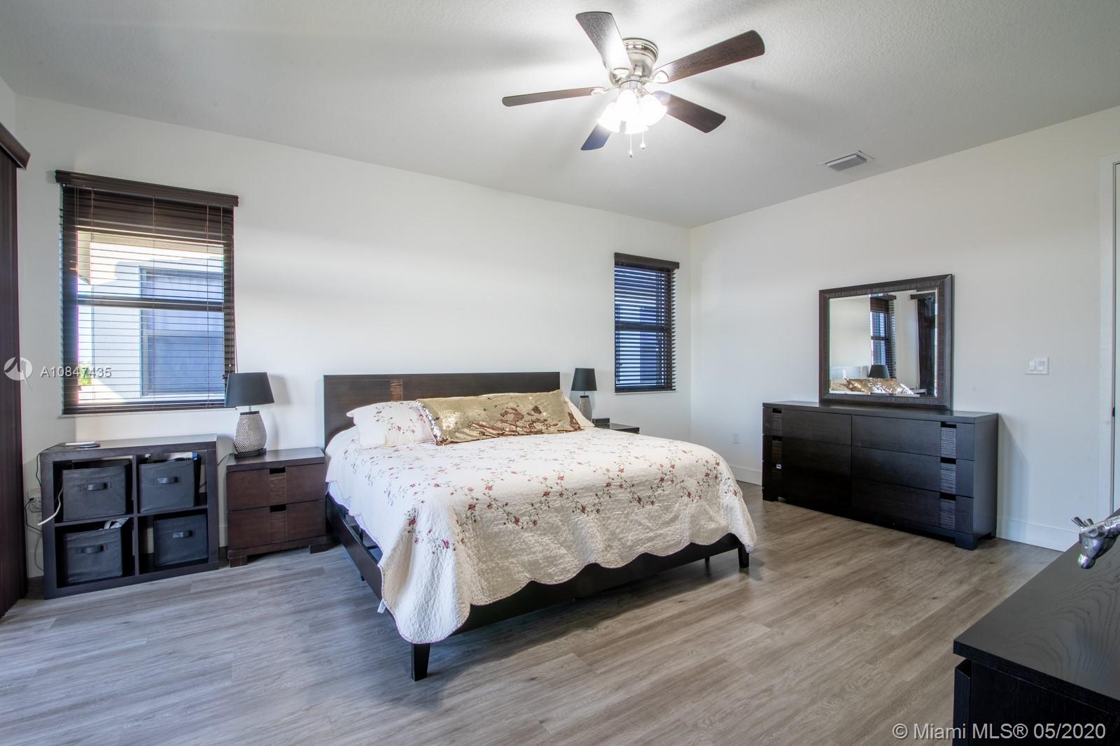 New Construction Mediterranean style home built by CC Homes. Beautiful 3 bedrooms and 2 1/2 bathrooms with a loft that can be easily converted into the 4th bedroom. Seller choose to keep it as a loft. Home is meticulously kept and feels like brand new. This home features thousands of dollars worth of upgrades, elegant high ceiling on both first and second floor, 42” wood cabinets, huge pantry, ceramic tiles and high end laminated floors, high graded impact shutters, stainless appliances, high efficency A/C, tankless water heater and so much more. House is fenced w/no back-door neighbors. Community has 24 hour security, gated entrance, clubhouse, pool & gym. LOW maintenance fee.